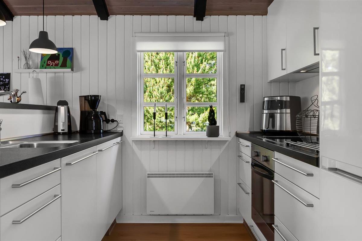 De keuken is uitgerust met koelkast Er is 4 elektrische kookplaten, bakoven, magnetron, Airfryer en vaatwasser.
