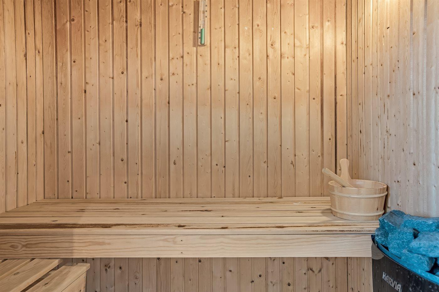Er is 2 badkamers met douchehok en 2 toiletten. Er is vloerverwarming in 1 badkamer. De sauna biedt de gelegenheid tot ontspanning.