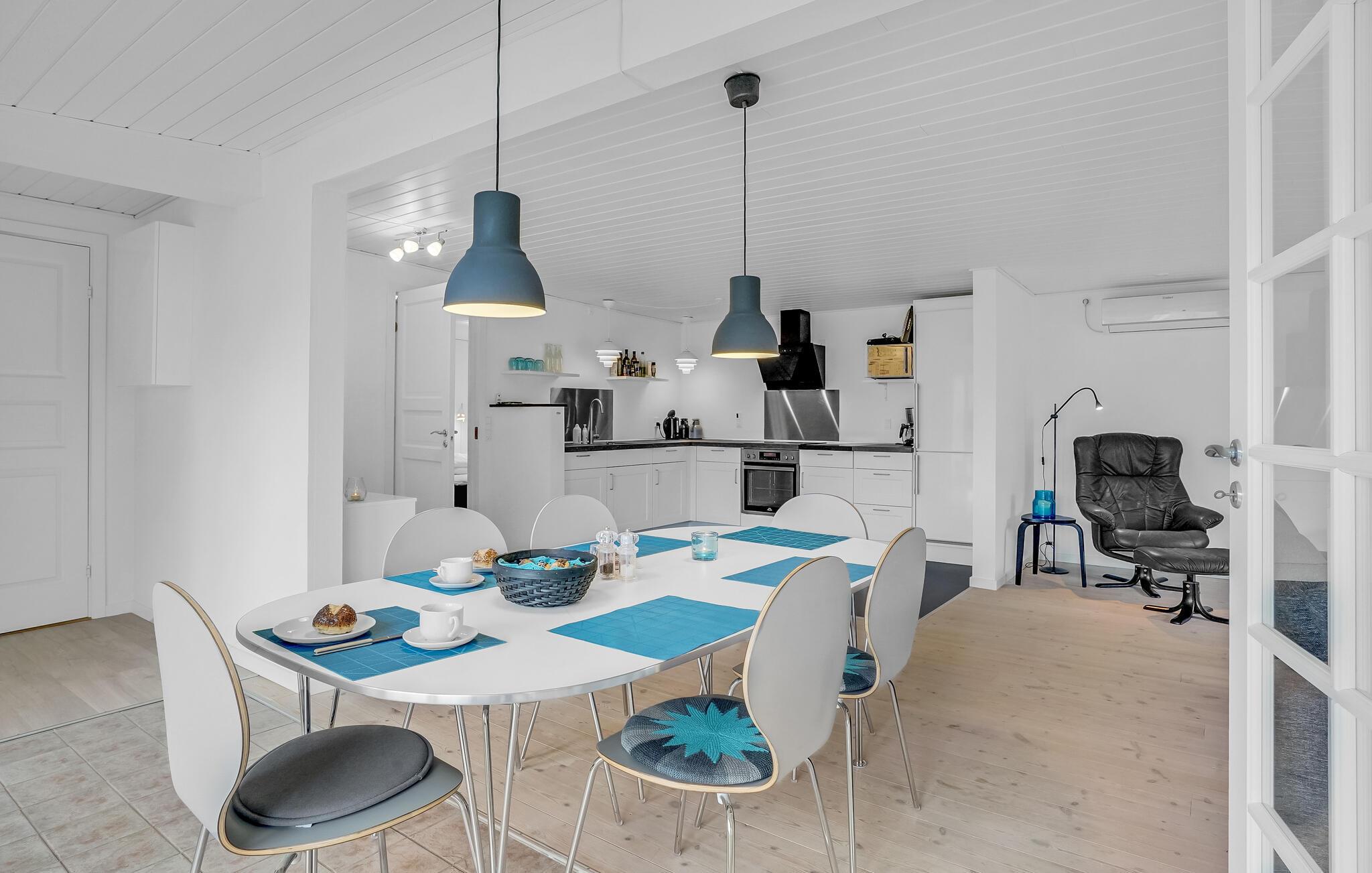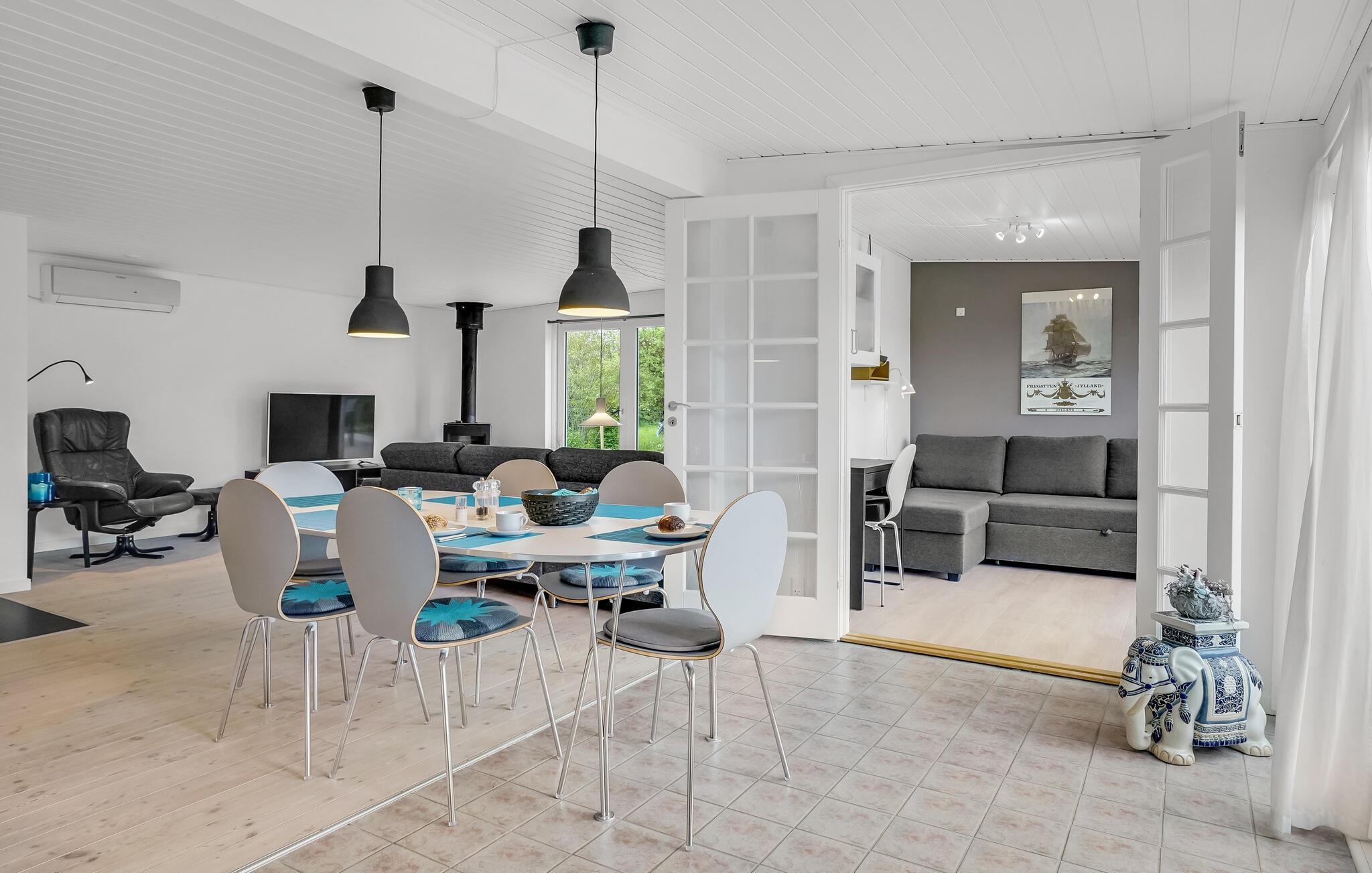 Met 4 slaapkamers biedt het huis comfortabel plaats aan 6 personen. Het is uitgerust met Smart TV en Chromecast en heeft ruime gemeenschappelijke ruimtes, zodat u hier gezellig samen kunt genieten. 's Avonds verspreidt de houtkachel bijzondere gezelligheid als u samen op de bank zit en luistert naar het geknetter van de vlammen.