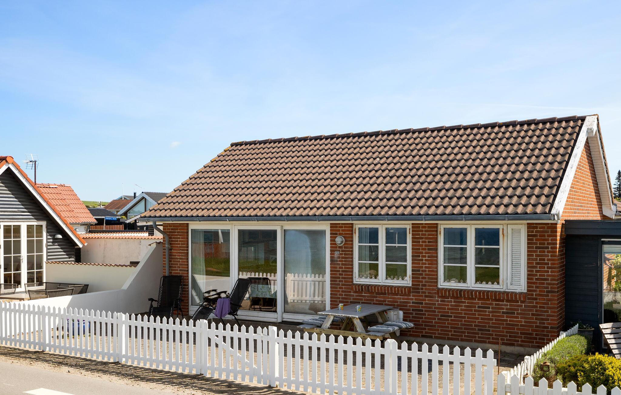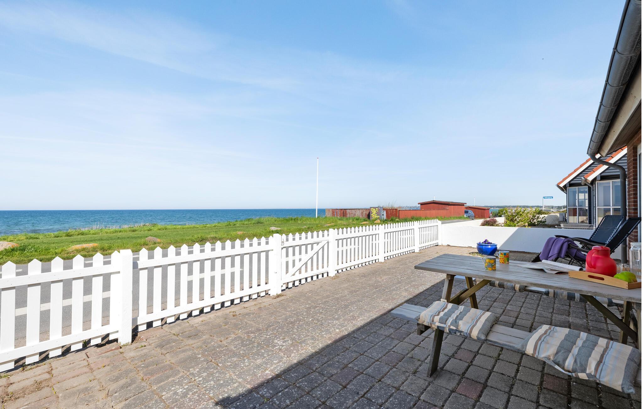 Gezellig vakantiehuis met panoramisch zeezicht en terras aan Kongsmark strand in Denemarken.