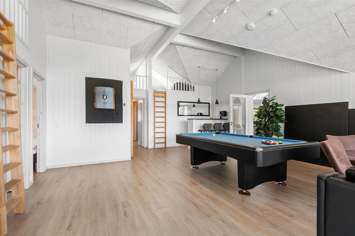 Breng een heerlijke vakantie door in dit uitnodigende vakantiehuis aan de oostkant van het Zuid-Deense eiland Rømø. Je ruime vakantiehuis is ideaal voor een vakantie met meerdere gezinnen of een grotere groep vrienden. Begin je dag met een gezamenlijk ontbijt, gevolgd door een verfrissende duik in het zwembad. Ontspan in het bubbelbad op het terras en in de sauna. De ruime woonkamer van het smaakvol ingerichte huis nodigt je uit om te blijven hangen voor en na je vakantie-uitstapjes. Maak het jezelf gemakkelijk op de gezellige banken, speel leuke bordspellen aan de eettafel en geniet van de knusse warmte van de open haard. In de open keuken kunnen hobbykoks hun vaardigheden testen en heerlijke gerechten op tafel toveren. Vergeet niet de vakantiekampioen te kronen met biljart, tafeltennis en darts.