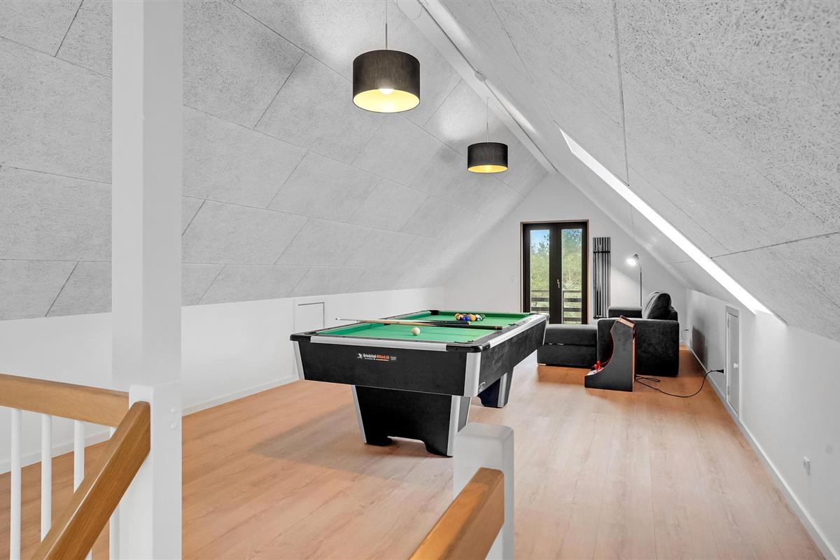 In dit in 2022 opgeleverde huis geniet u van een heerlijke vakantiebeleving. Alles is gloednieuw en van de hoogste kwaliteit, van het grote terras tot de energiezuinige inrichting en het rieten dak dat de traditie volgt. Alles barst van de gezelligheid, of het nu gaat om de whirlpool geïntegreerd in het terras, de prachtige activiteitenruimte met biljart onder het puntdak, of de vloerverwarming die op de hele begane grond is geïnstalleerd.
