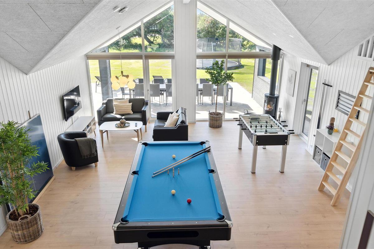 In het ruime huis maak je het jezelf gemakkelijk met meerdere gezinnen en zal het je aan niets ontbreken op vakantie. De lichte kamers met moderne inrichting en grote ramen die veel natuurlijk licht binnenlaten, zorgen voor een gezellige sfeer en bieden veel ruimte voor gezamenlijke activiteiten. Of je nu familieduels organiseert aan de pooltafel, urenlang spettert in het zwembad met jong en oud of ontspant in de zithoek met een prachtig uitzicht op de buitenlucht, hier is geen plaats voor verveling op vakantie. Geniet na een actieve dag van een rustgevende sessie in de eigen sauna van het hotel.