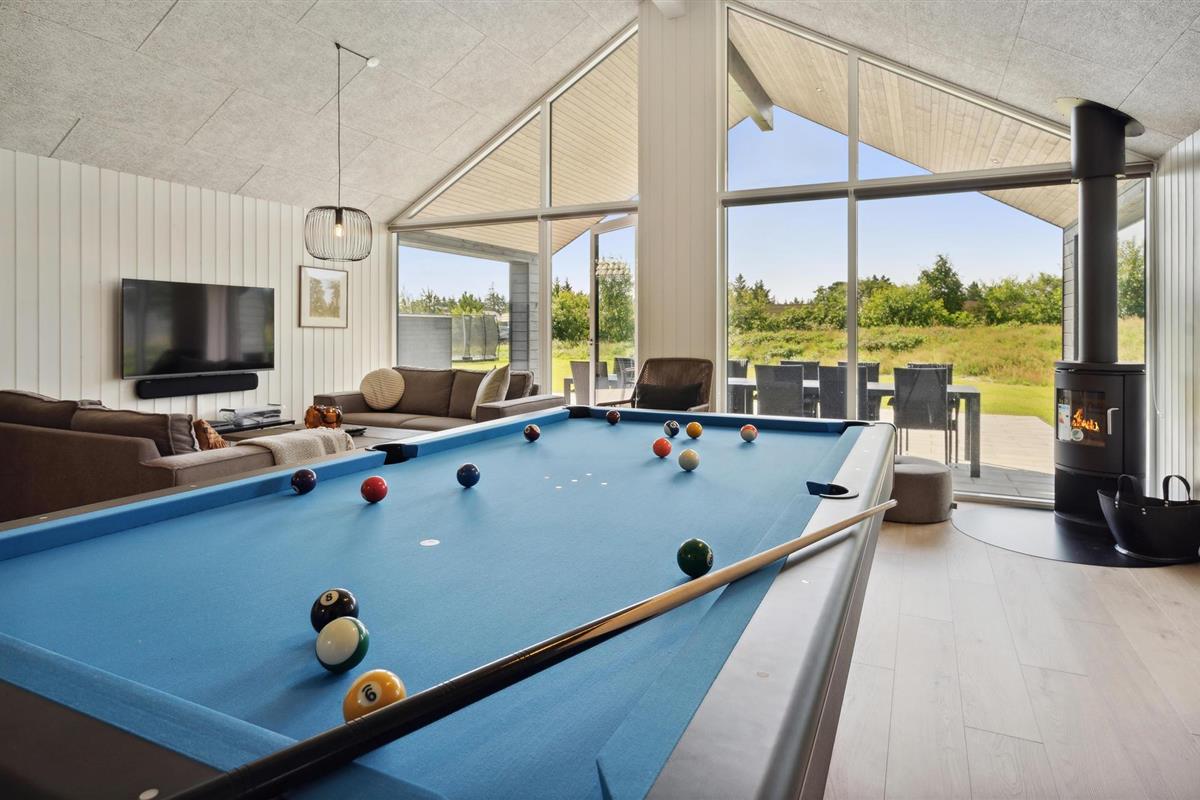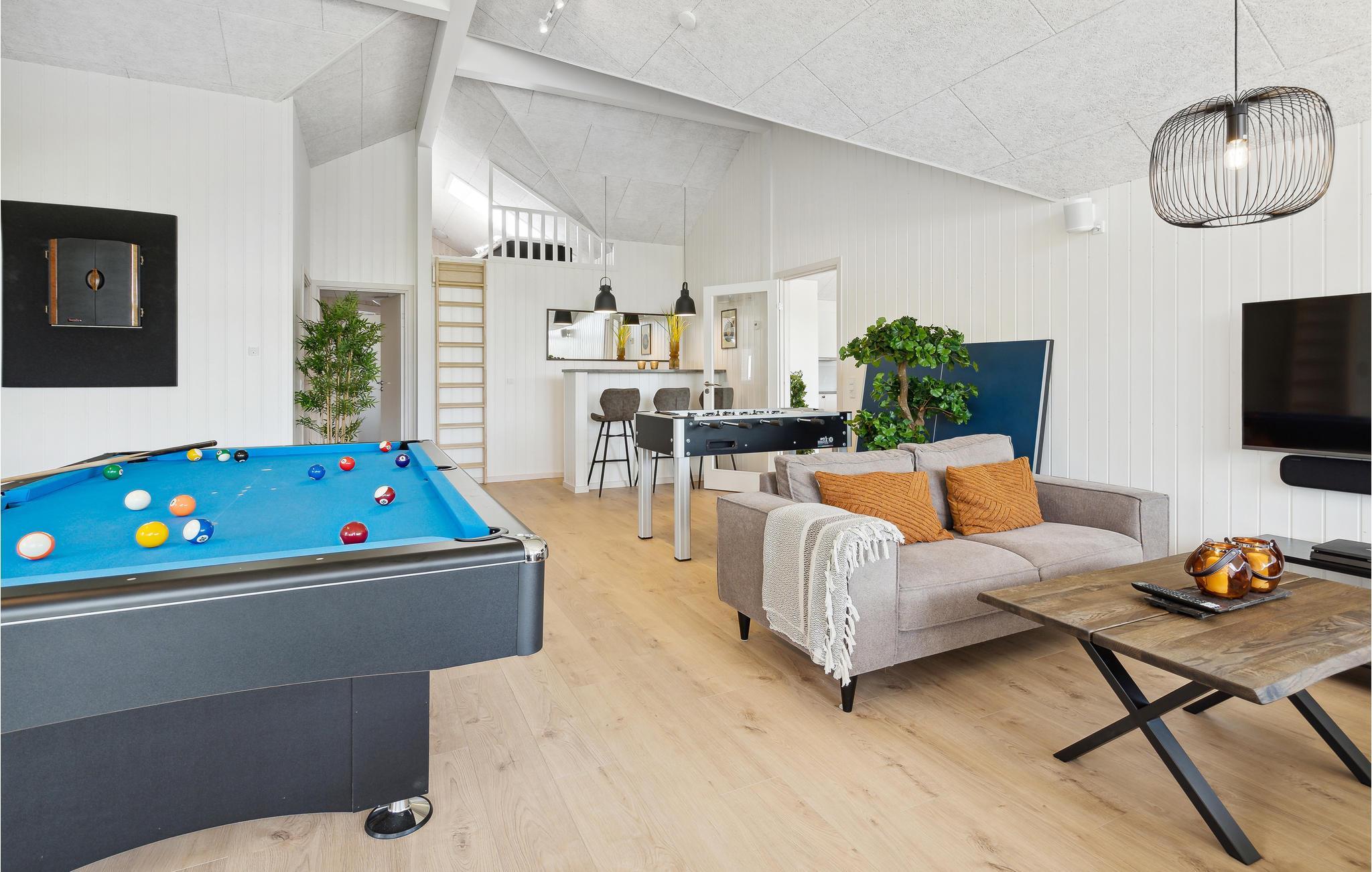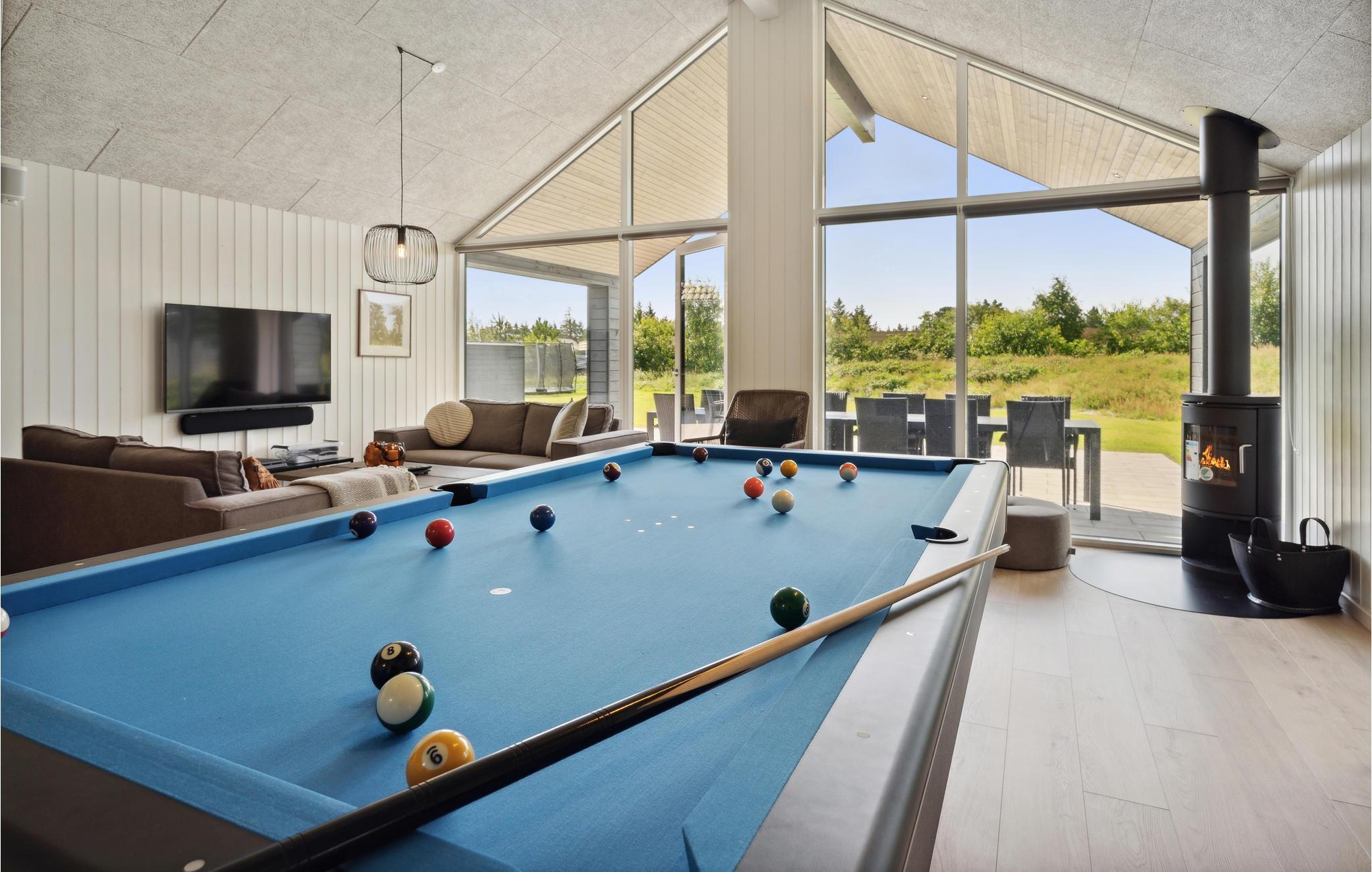 Op het eiland Rømø in Kongsmark vind je dit geweldige vakantiehuis met ruimte voor meerdere gezinnen. Hier kun je leuke dagen doorbrengen met zwemmen of genieten van de gezellige warmte van de sauna of buitenwhirlpool na een wandeling in de frisse lucht. Daag elkaar uit voor een potje pool of tafeltennis of speel tafelvoetbal in teamverband. Je kunt ook genieten op het mooie terras terwijl de jongste vakantiegasten zich buiten uitleven.