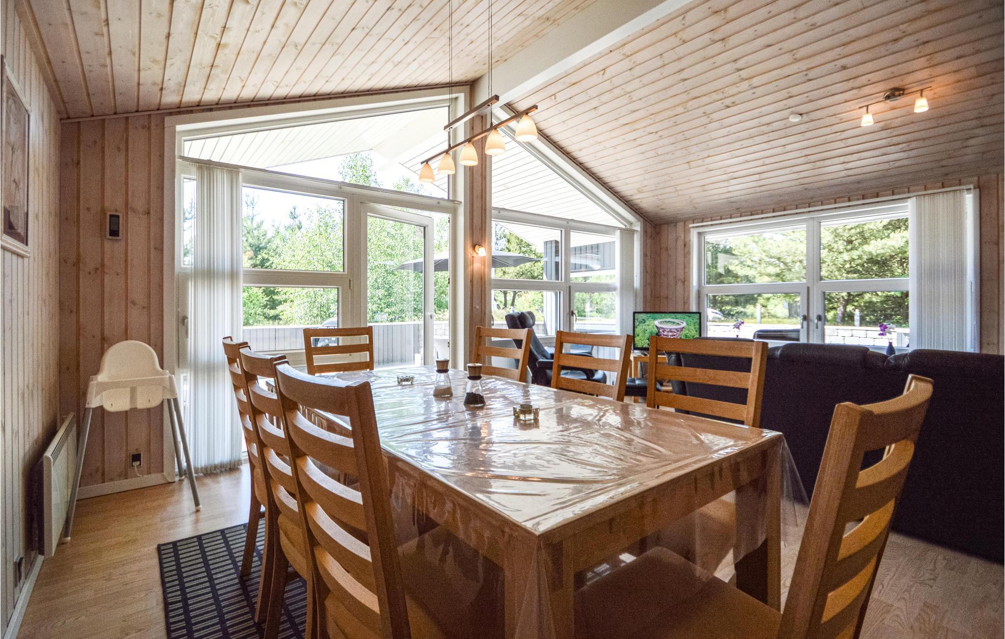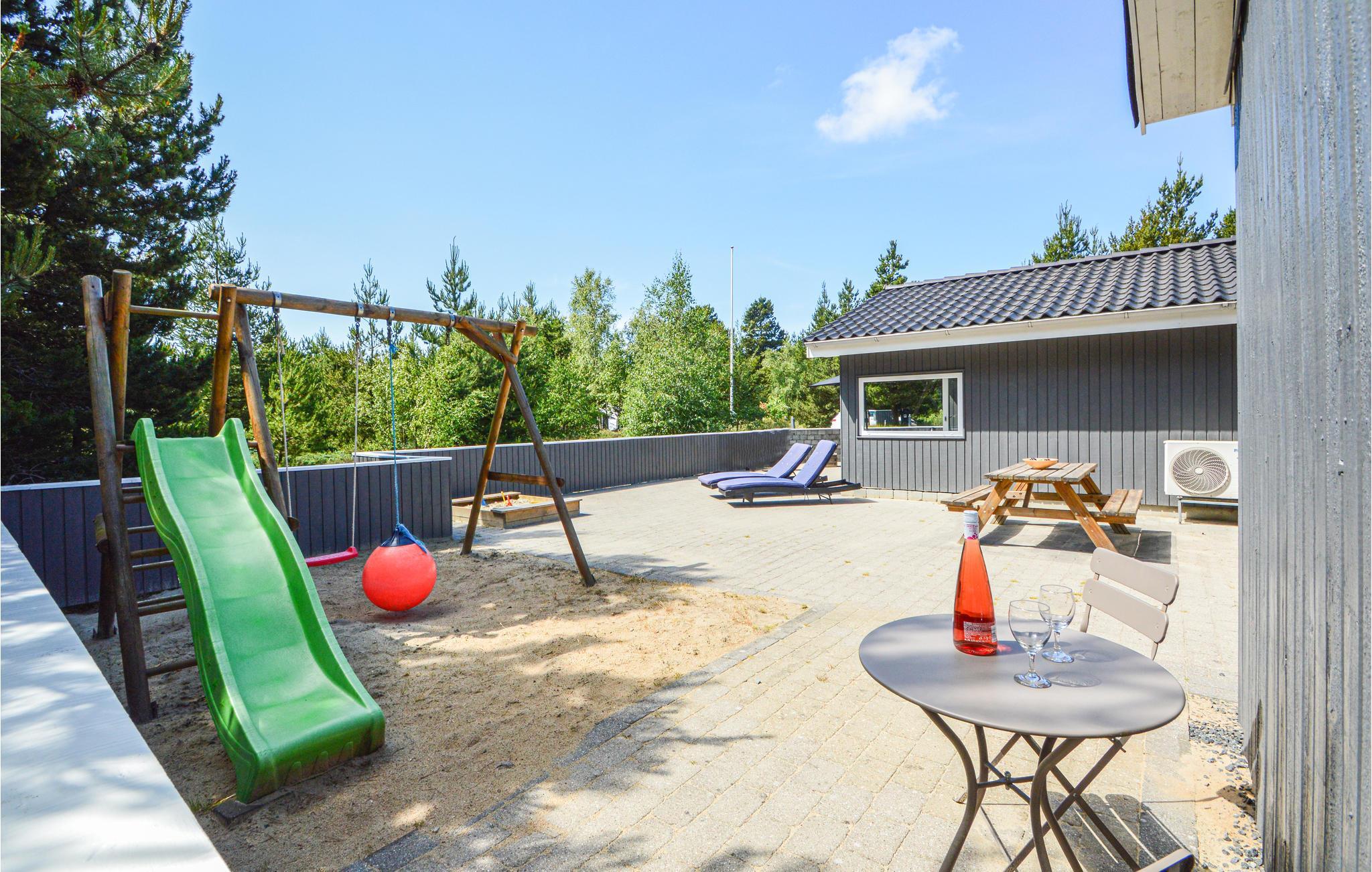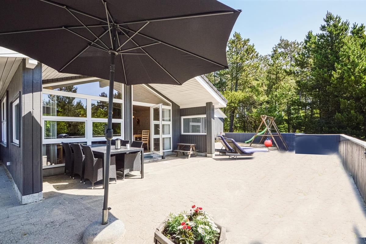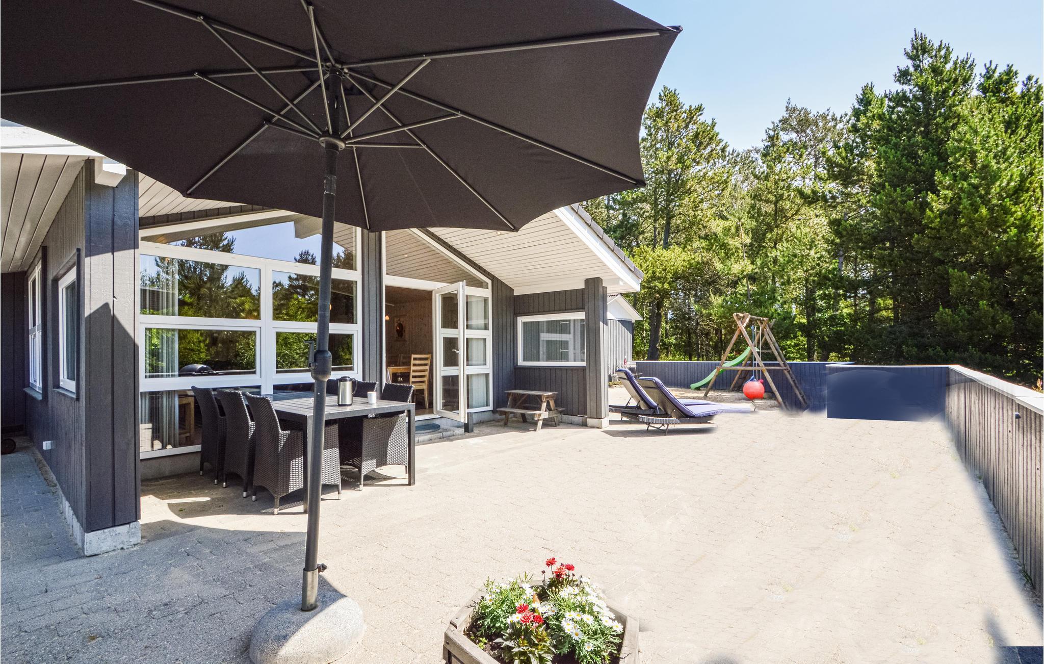 Afgelegen en aan het einde van een doodlopende weg ligt dit mooie houten huis op een met heide begroeid perceel en gedeeltelijk beschut tegen de wind. Op het grote terras kunt u het zich de hele dag gemakkelijk maken. De sauna, de whirlpool en de houtkachel maken het huis bijzonder aantrekkelijk, ook in koude tijden. Småfolksvej/Kongsmark ligt midden in de geweldige natuur van Rømø. De enorme zandstranden in Lakolk en en Rømø Golf Links zijn slechts een paar minuten rijden van het huis.
