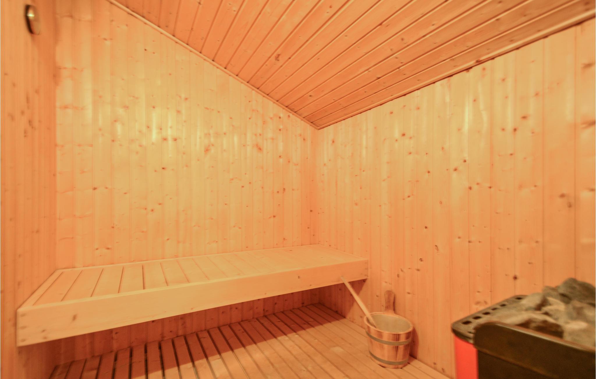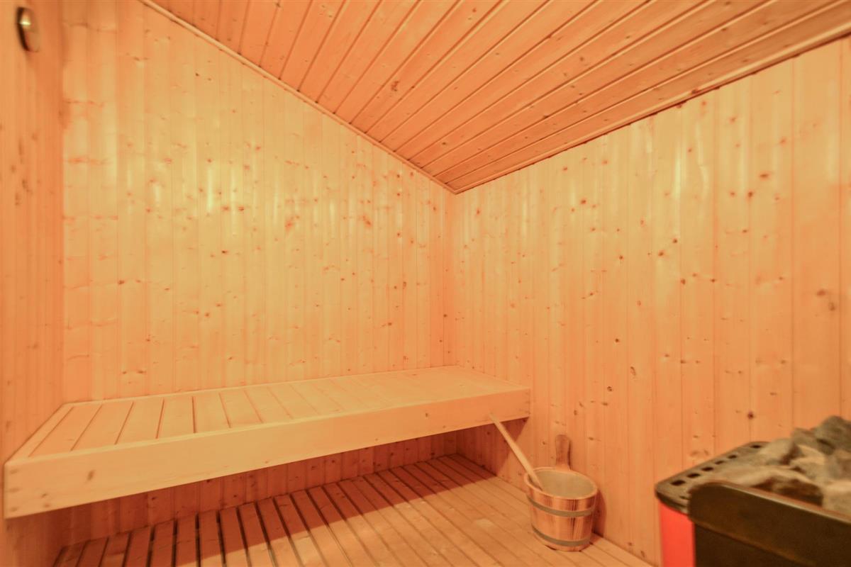 Er is veel ruimte om te spelen op het ruime terrein, met onder andere een trampoline, een volleybalnet en een schommel. Het huis is gezellig ingericht met een eethoek en een zithoek waar je kunt genieten van de warmte van de open haard. Dit vakantiehuis heeft ook een sauna en een whirlpool, die je uitnodigen om te ontspannen. Vanuit de woonkamer heb je toegang tot het overdekte terras, dit houten terras waar je kunt barbecueën, zonnebaden of 's avonds de open haard kunt aansteken.