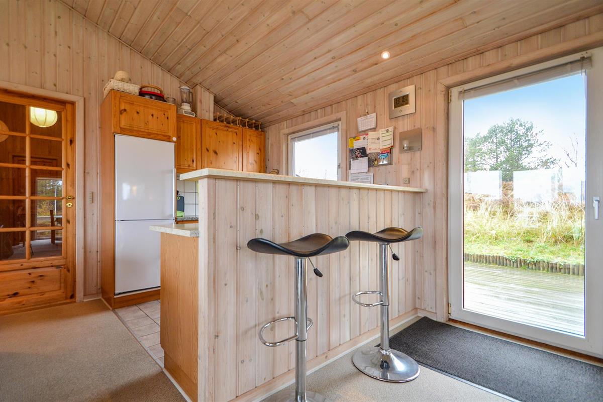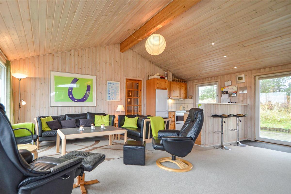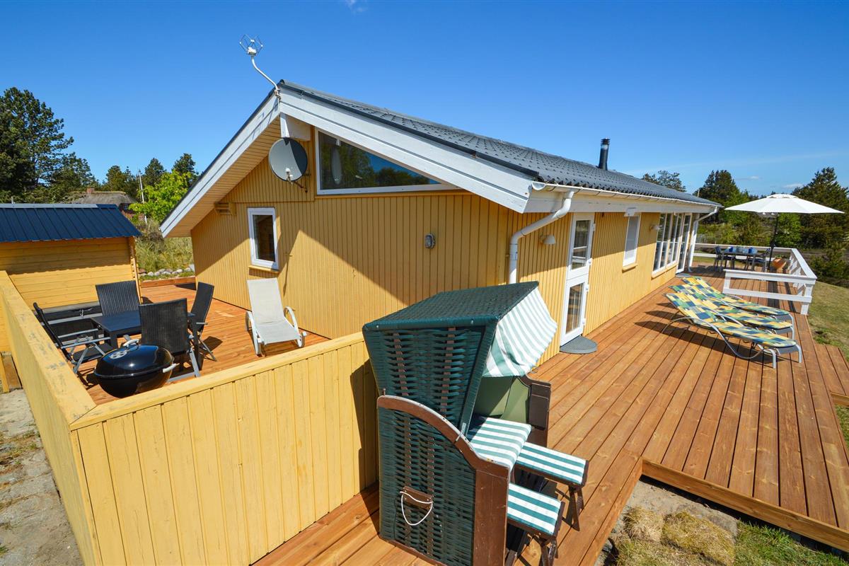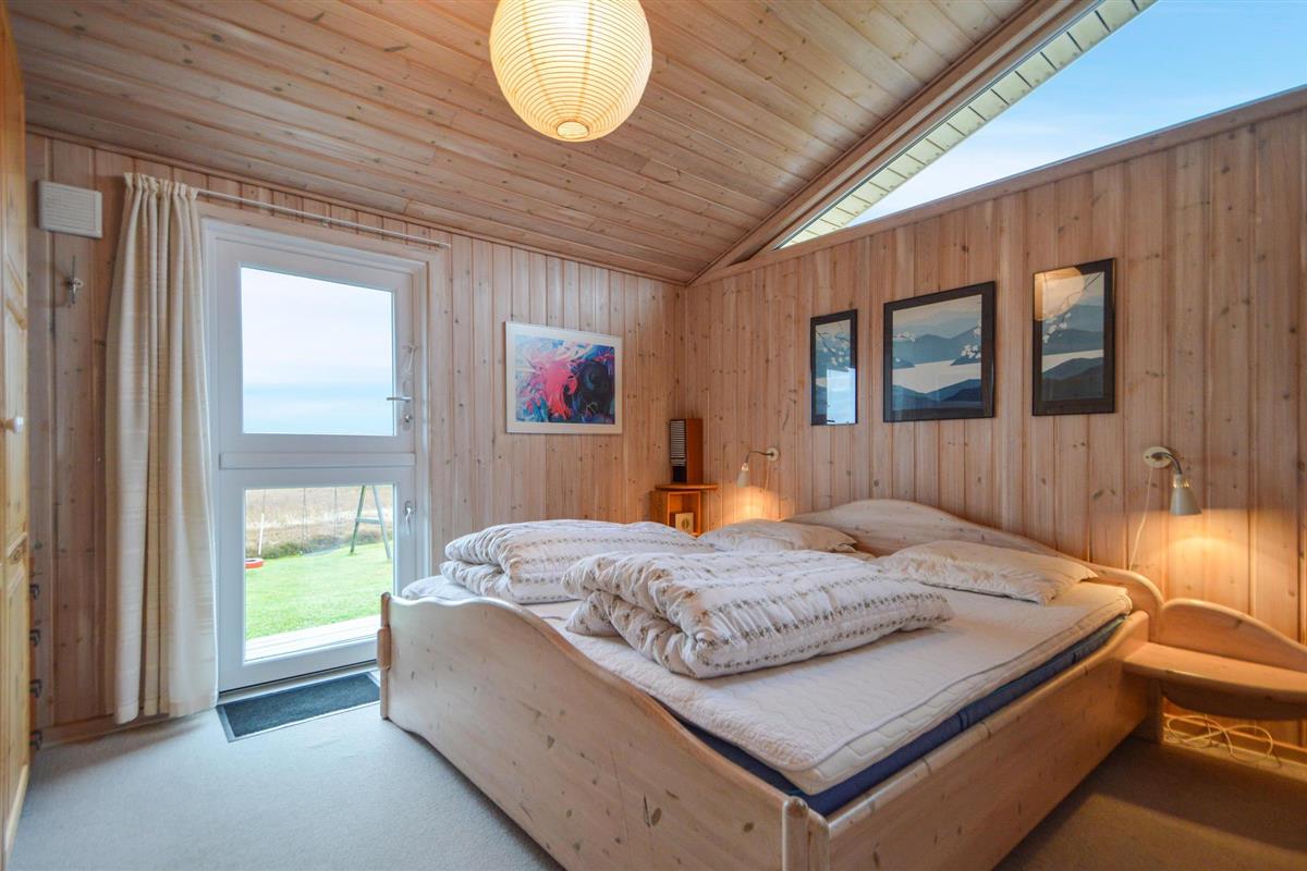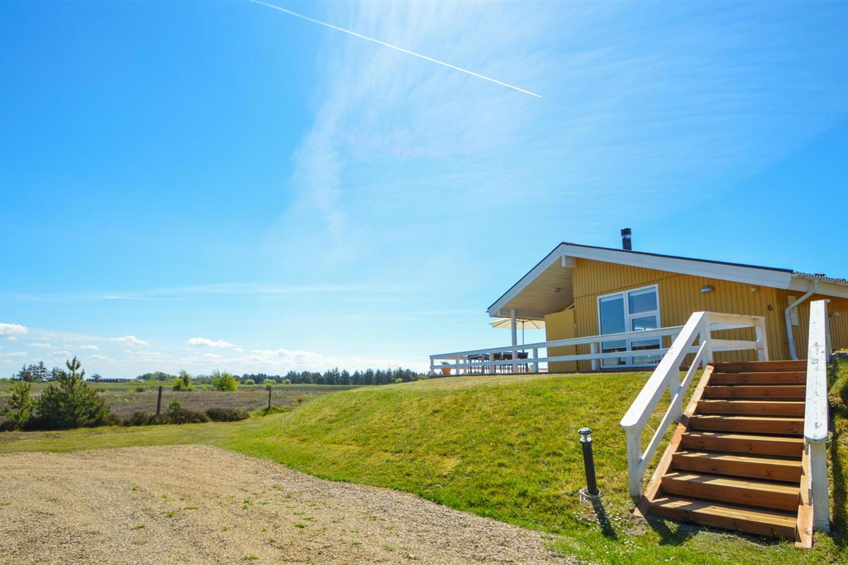 Dit grote houten vakantiehuis ligt hoog op een natuurgebied in het centrum van Rømø met een prachtig uitzicht over het open landschap van de Waddenzee.