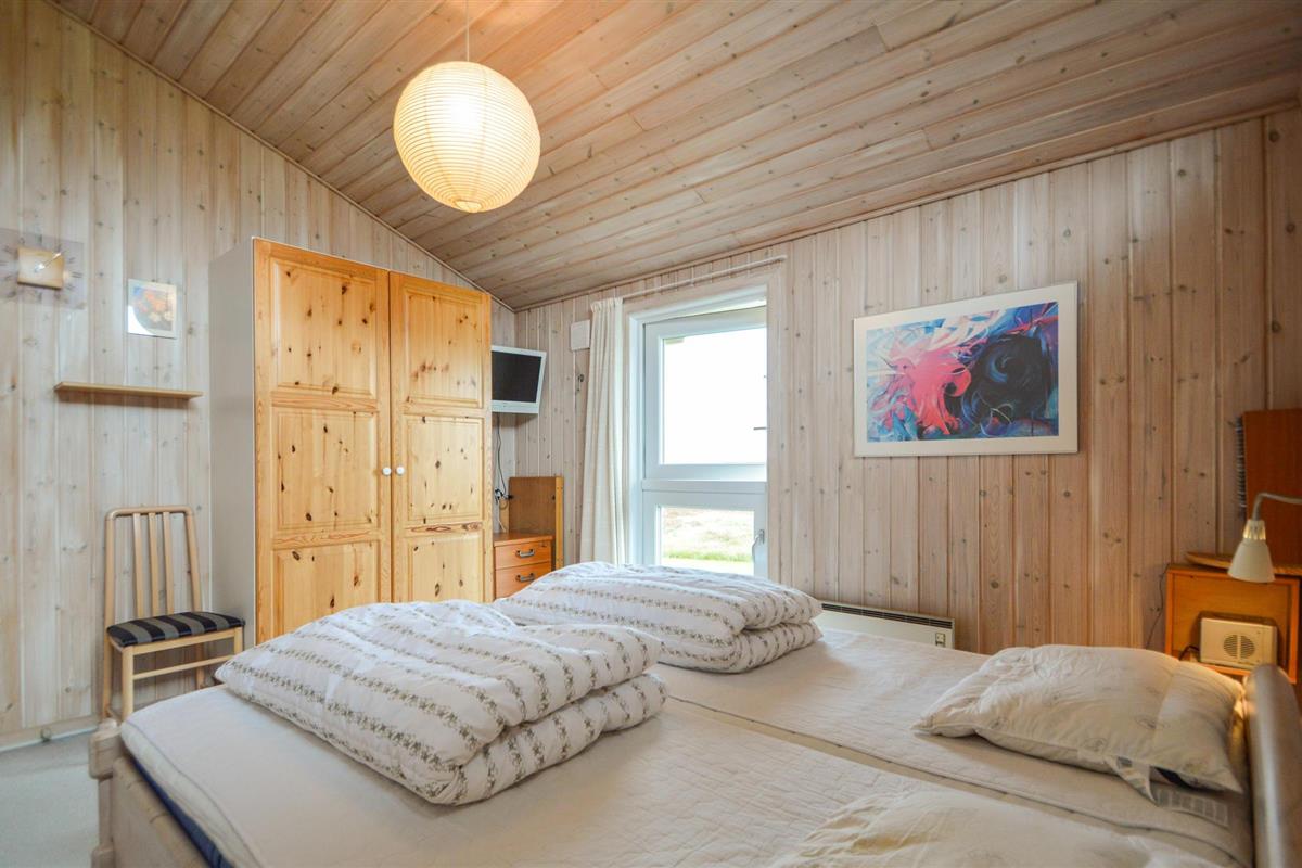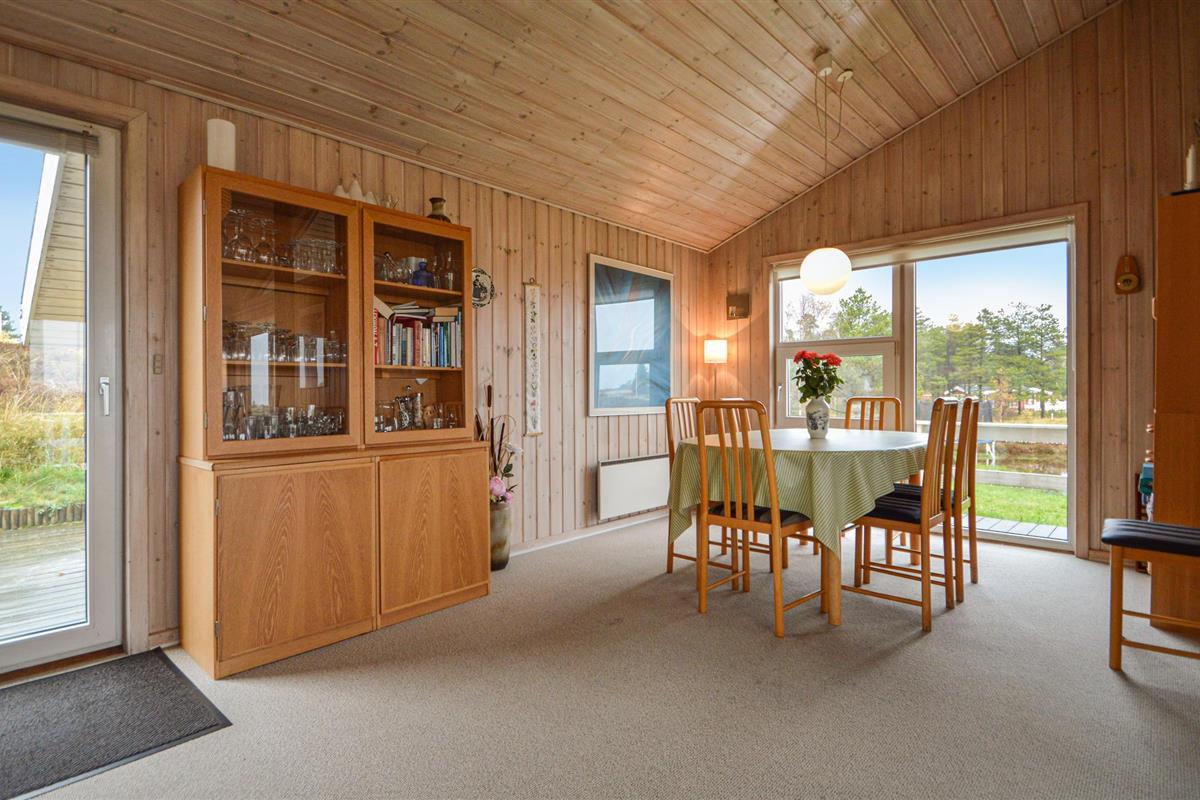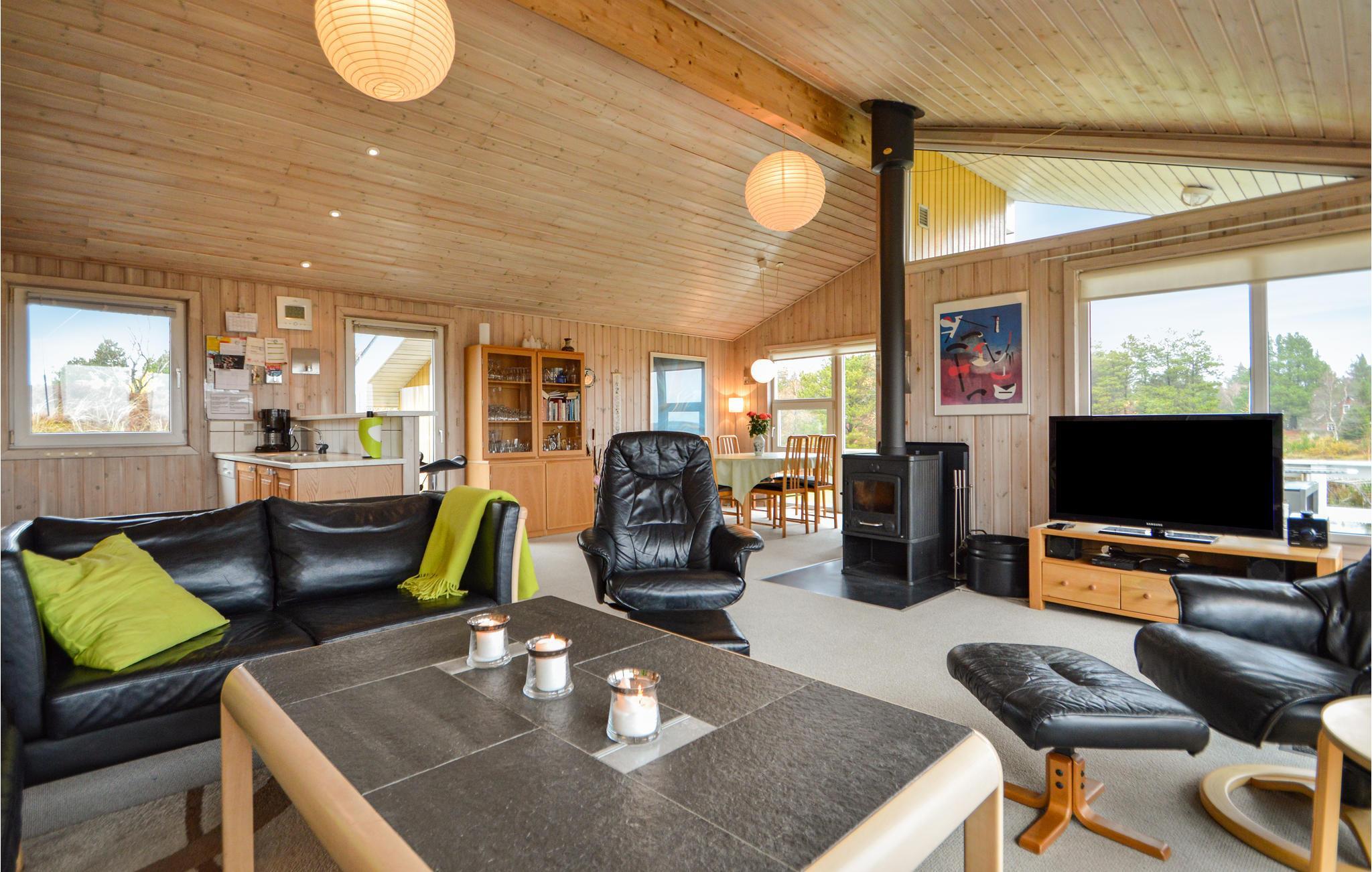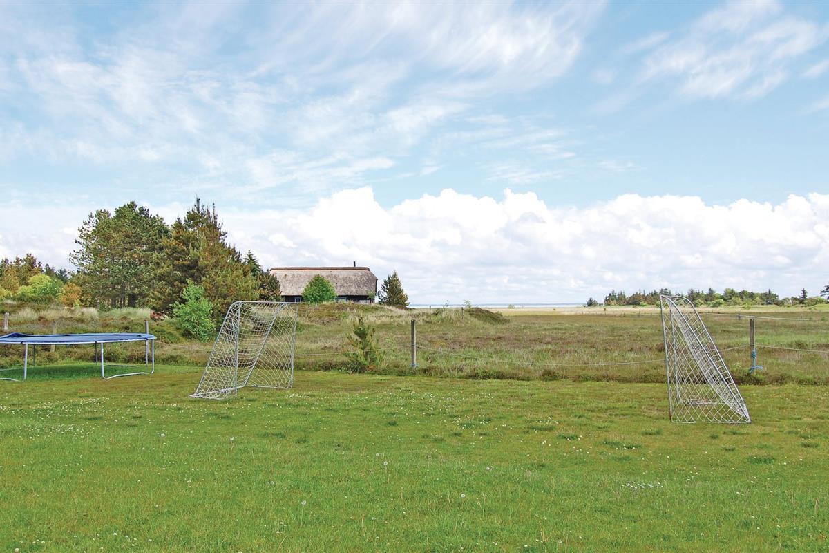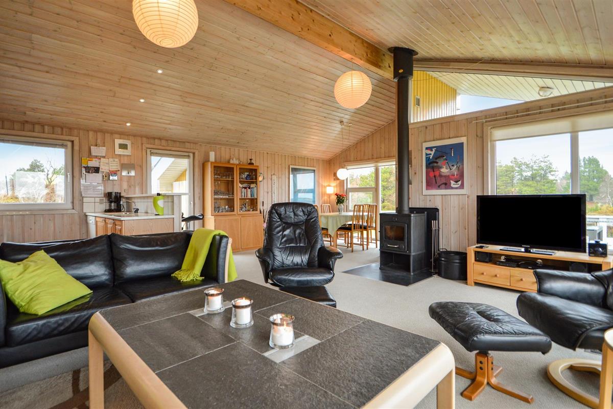 Dit grote houten vakantiehuis ligt hoog op een natuurgebied in het centrum van Rømø met een prachtig uitzicht over het open landschap van de Waddenzee.
