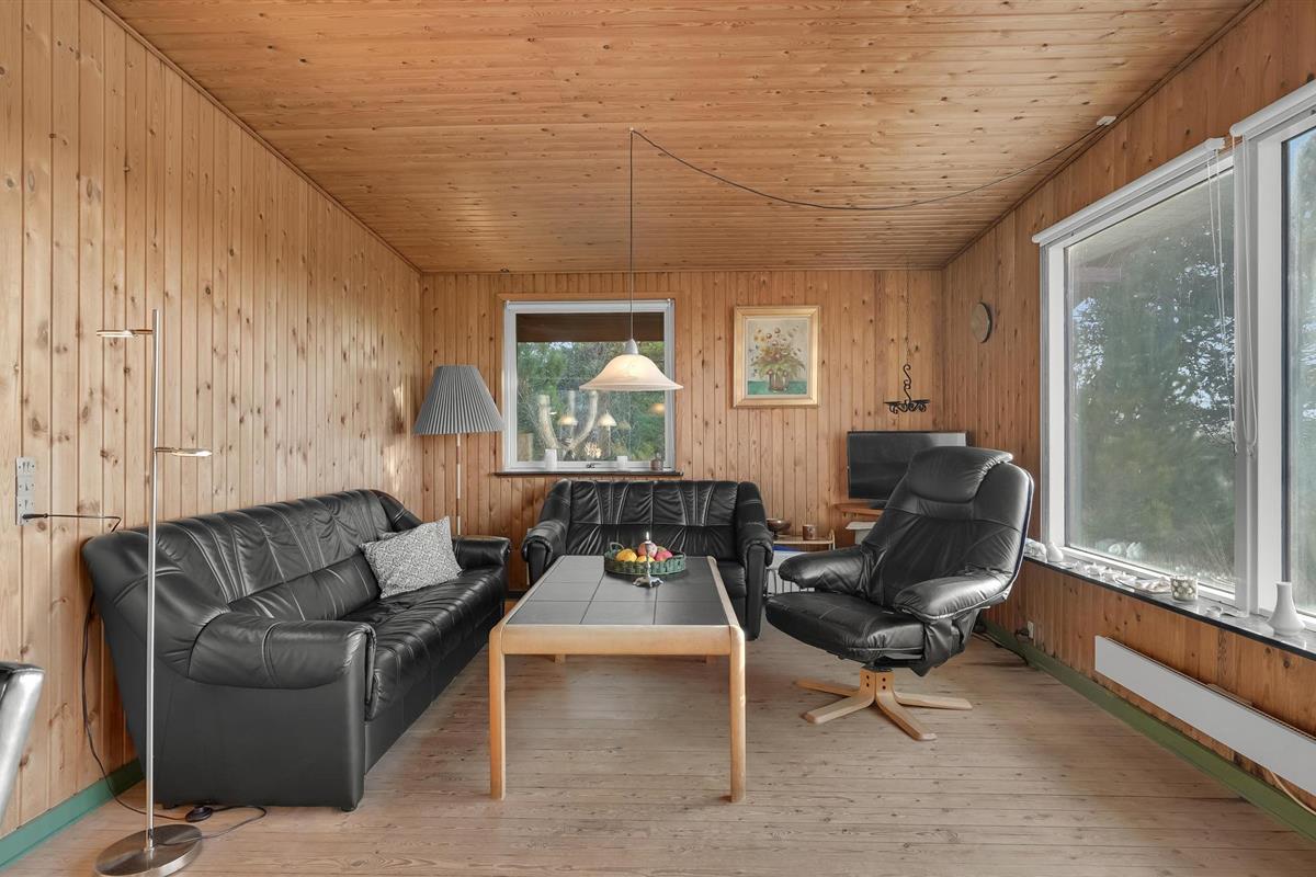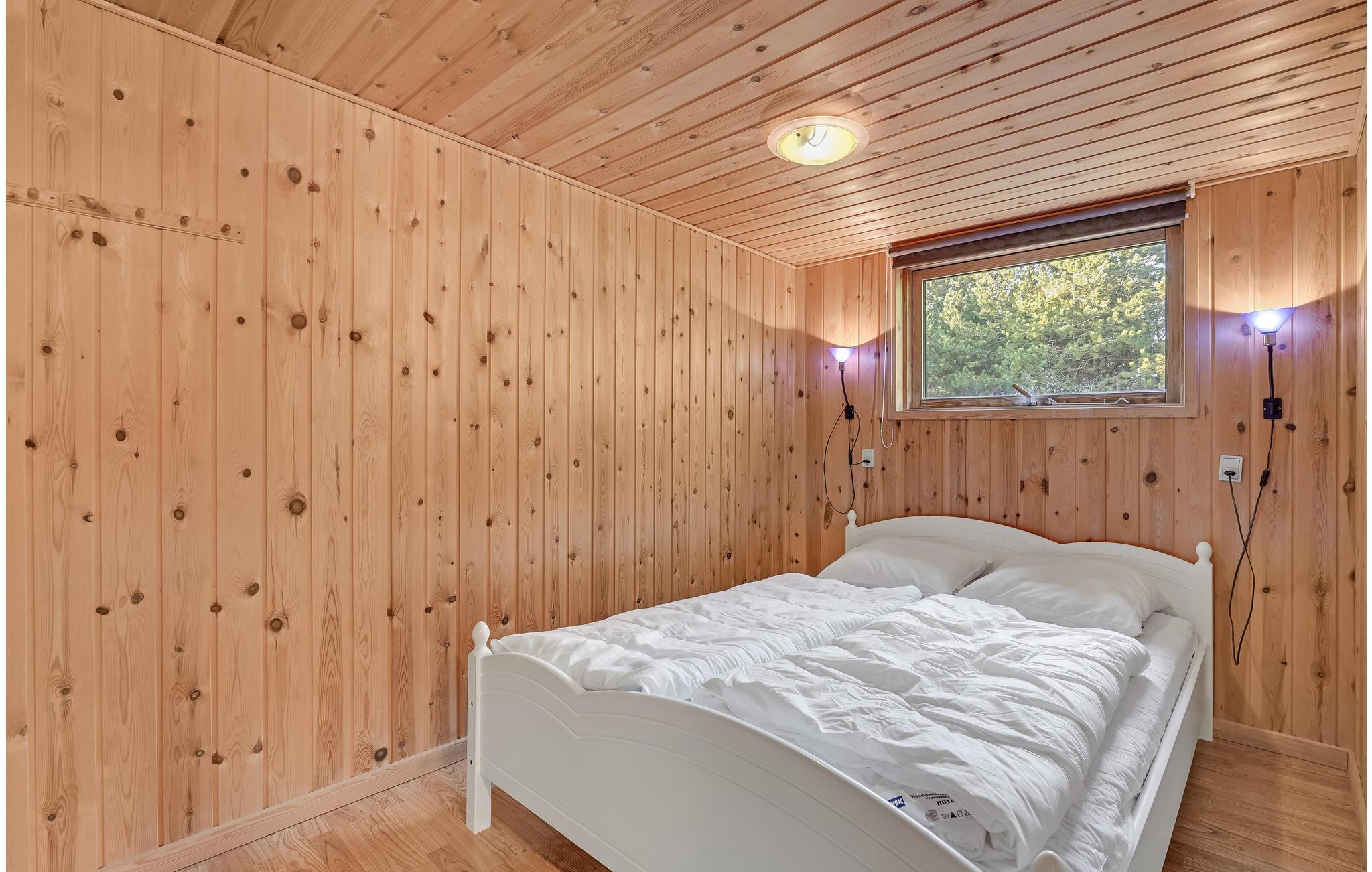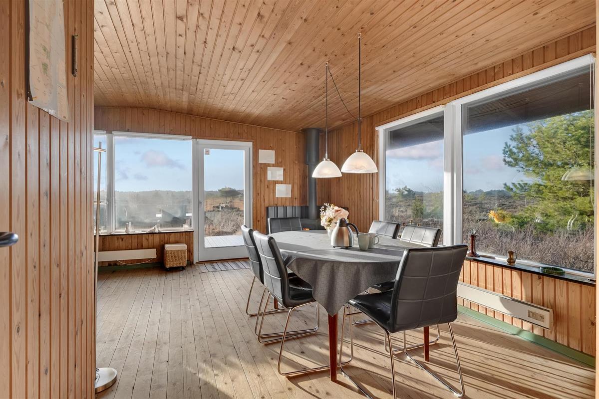 Uw vakantiehuis in Kongsmark is eenvoudig maar gezellig ingericht en is ideaal voor een ontspannen vakantie op het platteland. De woonkamer is ingericht met houten muren en biedt een gezellige sfeer. Hier kun je ontspannen op de comfortabele banken en fauteuils of genieten van het uitzicht door de grote ramen. De eethoek is direct geïntegreerd en uitgerust met een houtkachel. Er is ook een sauna in het bijgebouw, ideaal voor ontspannende uren.