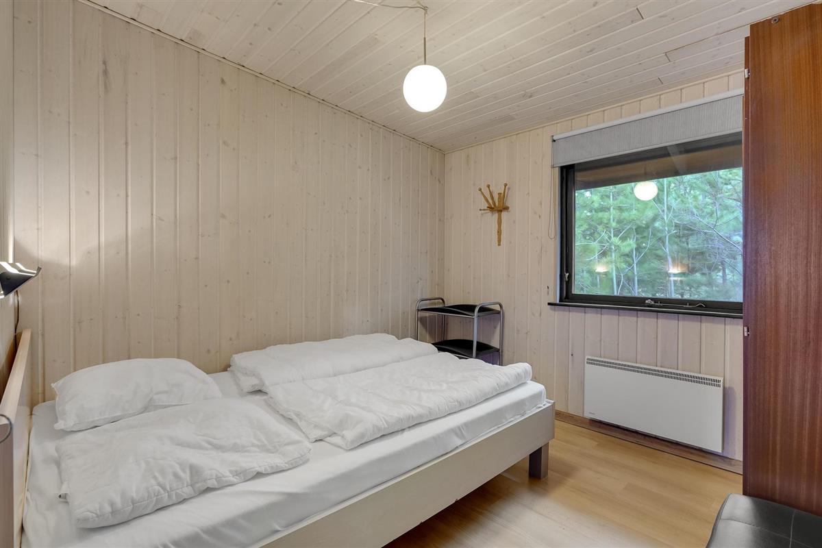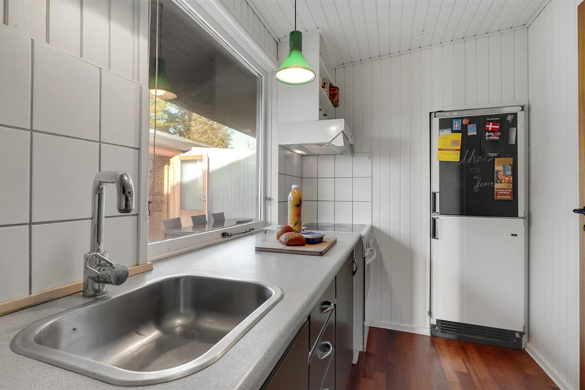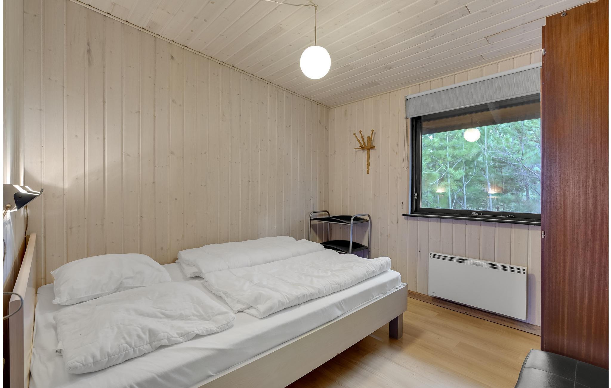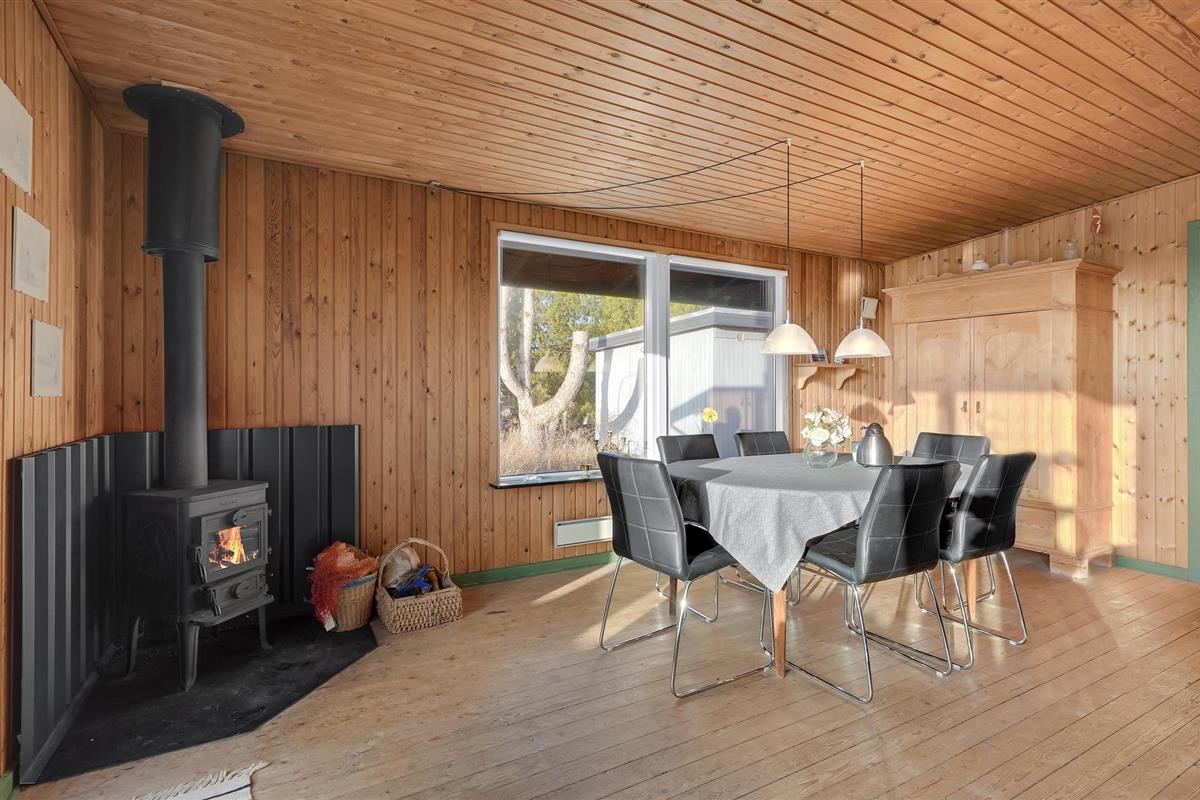 Uw vakantiehuis in Kongsmark is eenvoudig maar gezellig ingericht en is ideaal voor een ontspannen vakantie op het platteland. De woonkamer is ingericht met houten muren en biedt een gezellige sfeer. Hier kun je ontspannen op de comfortabele banken en fauteuils of genieten van het uitzicht door de grote ramen. De eethoek is direct geïntegreerd en uitgerust met een houtkachel. Er is ook een sauna in het bijgebouw, ideaal voor ontspannende uren.