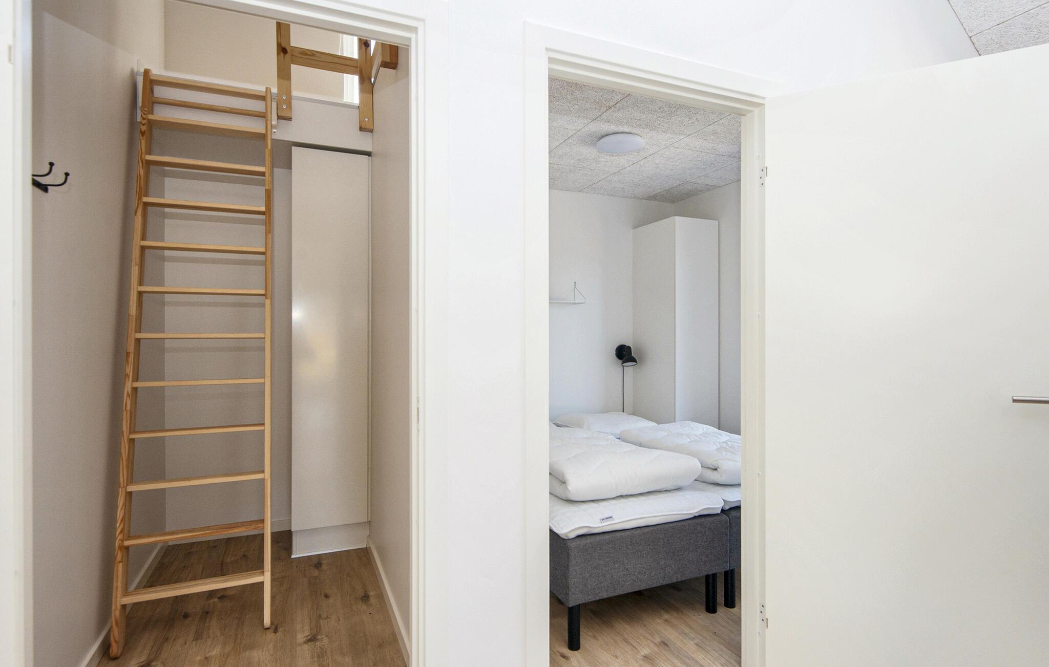 Het huis heeft twee slaapkamers en twee aparte kleedkamers op de begane grond, die beide directe toegang hebben tot een loft met extra slaapruimte, ideaal voor gezinnen of groepen die privacy en flexibele slaapindelingen willen.