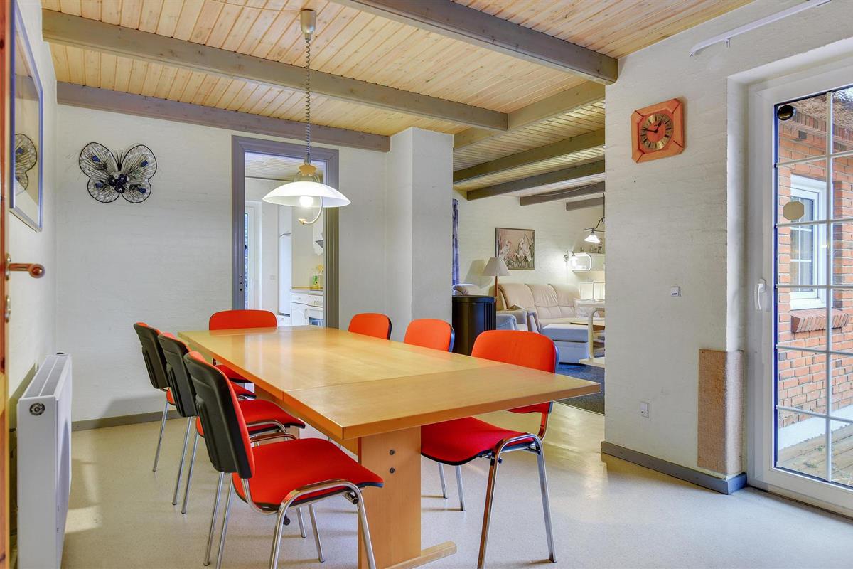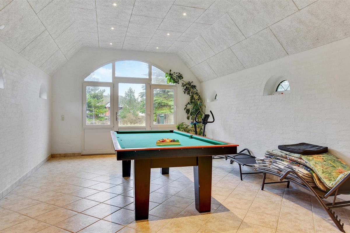 Ruim vakantiehuis in Kongsmark op Rømø. Het huis ligt op een perceel dat beschut is tegen inkijk en naar het zuiden heeft u uitzicht op een heidelandschap dat een natuurgebied is. Het huis is zeer geschikt voor één of twee gezinnen, die elk hun eigen ruimte kunnen bezetten. De terrassen nodigen uit om aangename uren buiten door te brengen. Het zuidterras is overdekt en is zeer geschikt voor zwoele zomeravonden. Het bijgebouw heeft een speelkamer met biljart en gastentoilet. Het beste strand van Lakolk ligt op slechts 2400 m afstand. Er zijn goede fietspaden op het eiland die u langs kronkelende wegen door een prachtig landschap voeren. Breng een heerlijke vakantie door met het hele gezin in de unieke omgeving van Rømø!