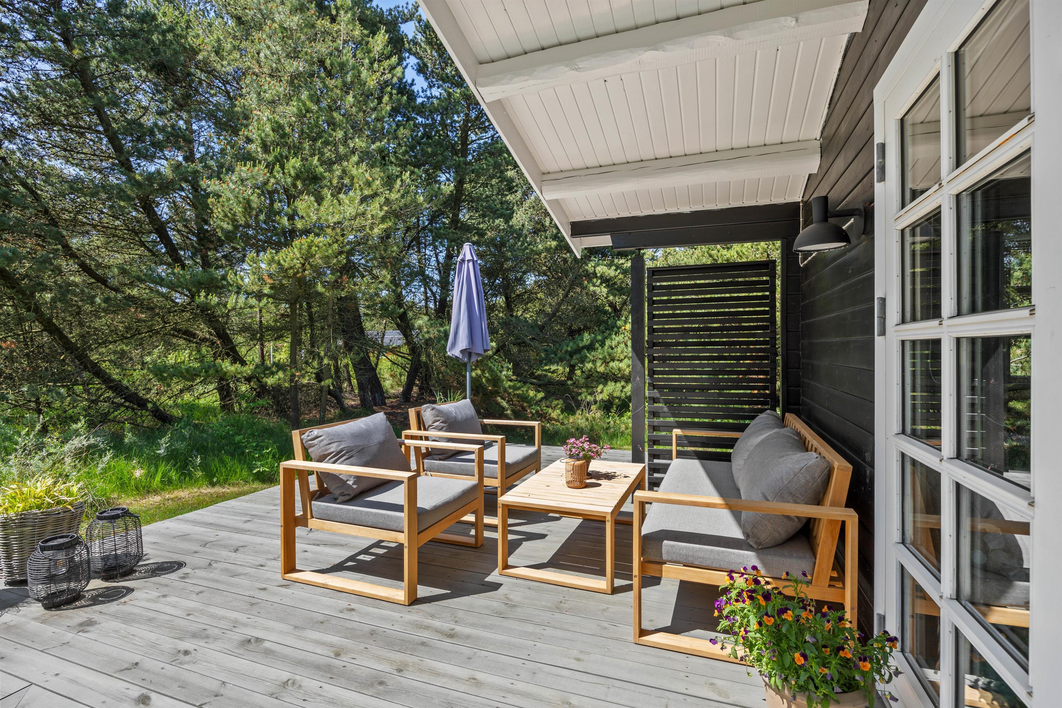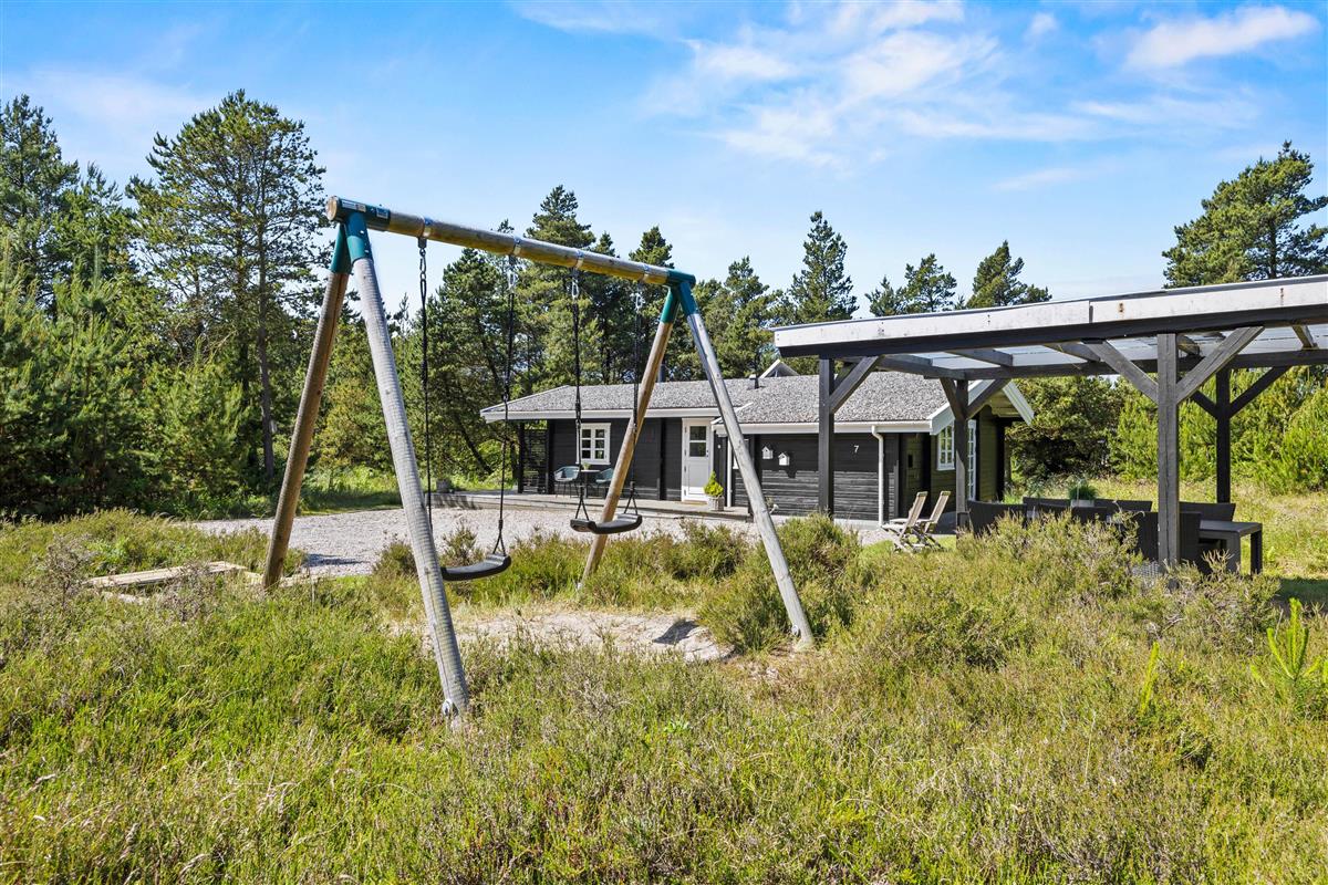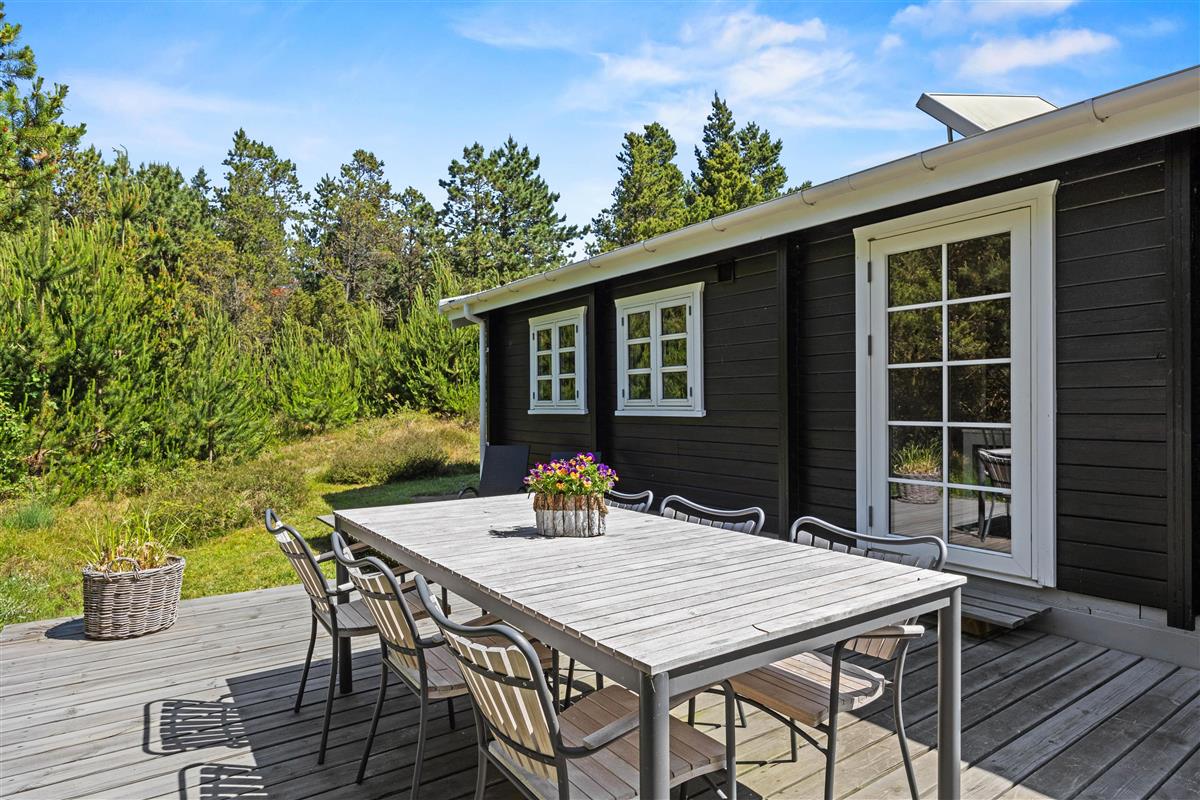 Draußen erwartet euch ein großzügiges Naturgrundstück von 2500 m² mit offener und überdachter Terrasse, bequemen Gartenmöbeln, Sonnenschirm und Gasgrill. Ideal für sonnige Tage und laue Abende in absoluter Ruhe. Kinder können sich im Sandkasten oder auf der Schaukel austoben, während die Erwachsenen mit einer Tasse Kaffee den Blick über die Dünenlandschaft und den weiten Himmel genießen. Ein Geräteraum bietet Platz für Fahrräder oder Strandutensilien. Das Haus liegt idyllisch – nur etwa 3,3 km von Kongsmarks breitem Sandstrand an der Nordsee und den nächsten Einkaufsmöglichkeiten entfernt. Die friedliche Umgebung lädt zu entspannten Strandtagen ebenso ein wie zu Spaziergängen in der Natur.