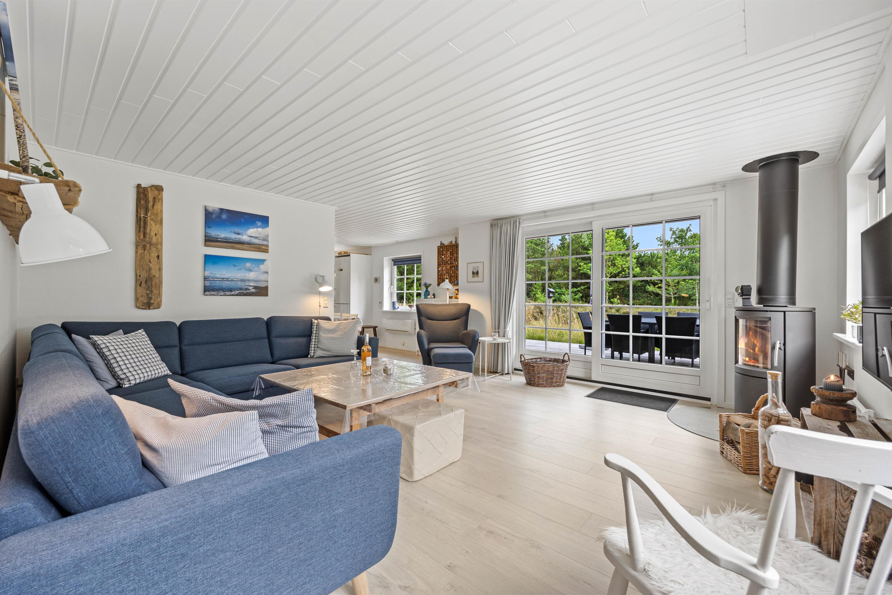 The holiday home offers a generous living space of 108 square metres. The amenities leave nothing to be desired: three bedrooms with two double beds and an IKEA sofa bed ensure restful nights and plenty of space for everyone. A wood-burning stove is available for cosy evenings. The kitchen includes a dishwasher, giving you more time to enjoy your holiday rather than washing up.