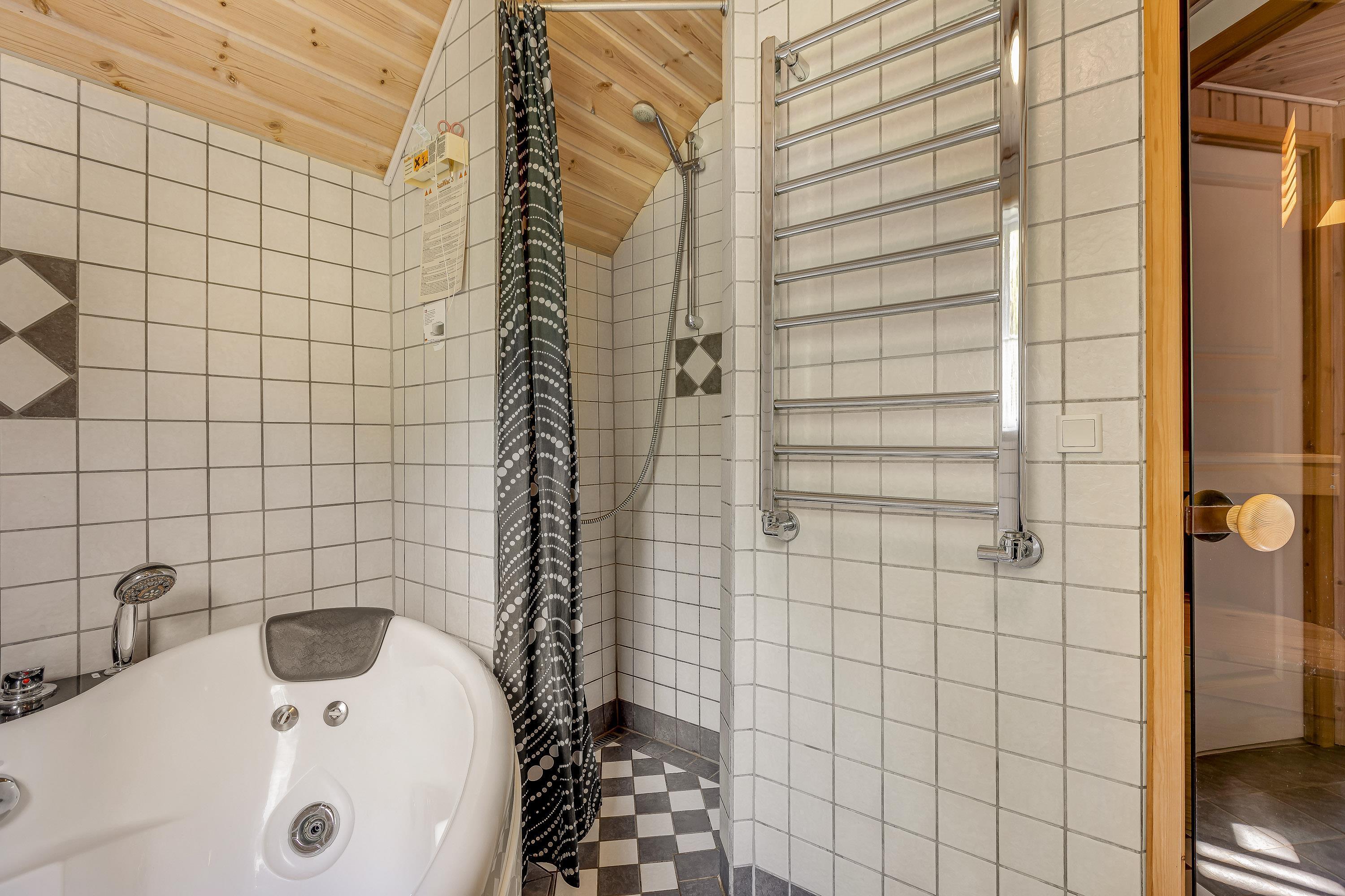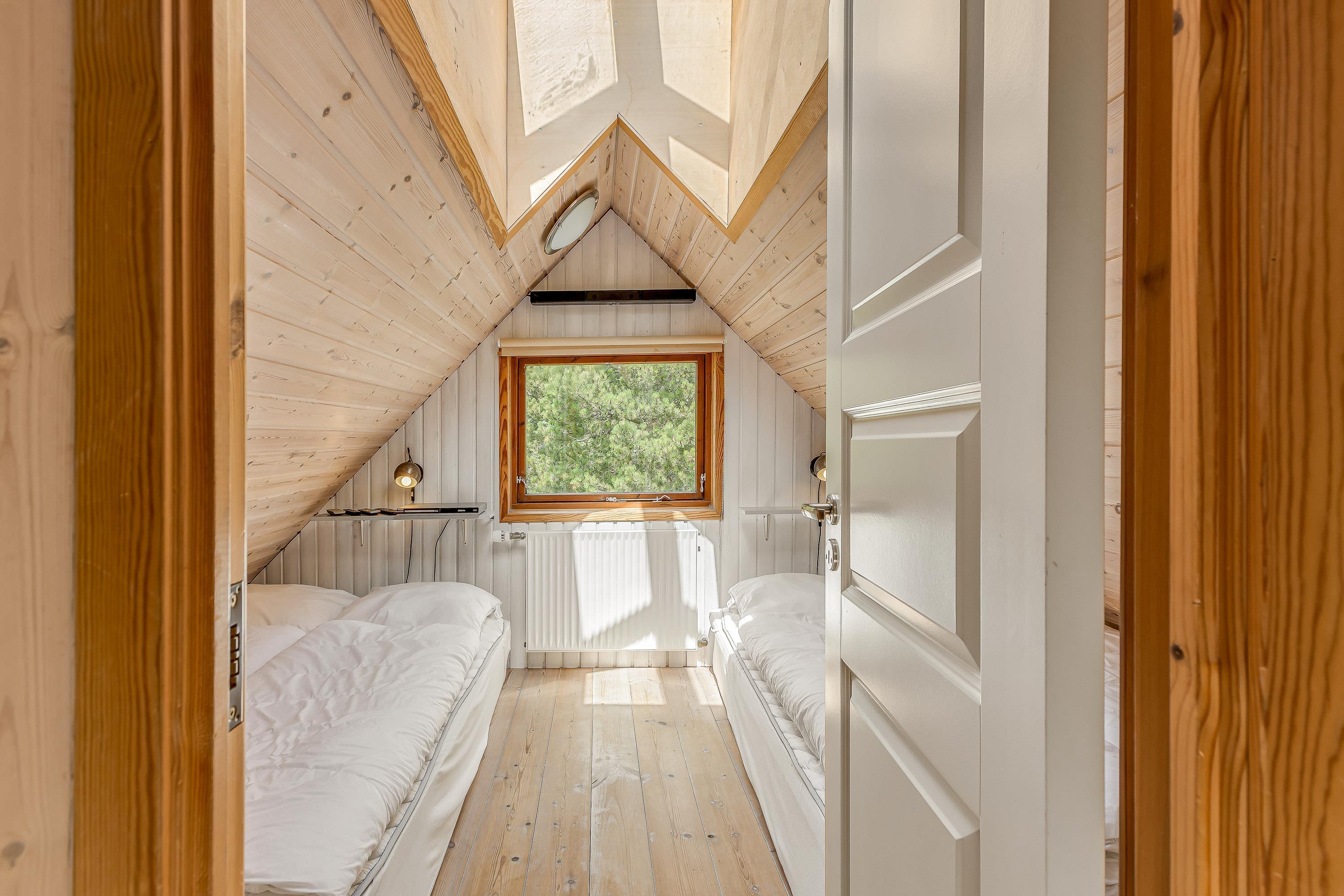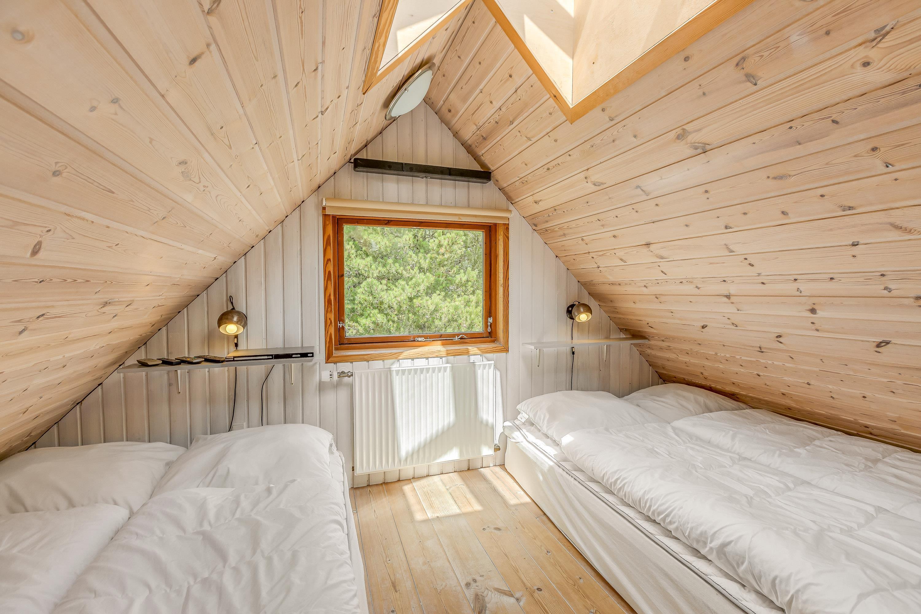 This thoroughly insulated holiday home features two heat pumps. The air-to-air heat pump provides energy-efficient heating in winter and acts as air conditioning in summer. To further reduce energy consumption, an air-to-water heat pump was installed in 2016, serving the underfloor heating, radiators and hot water supply.