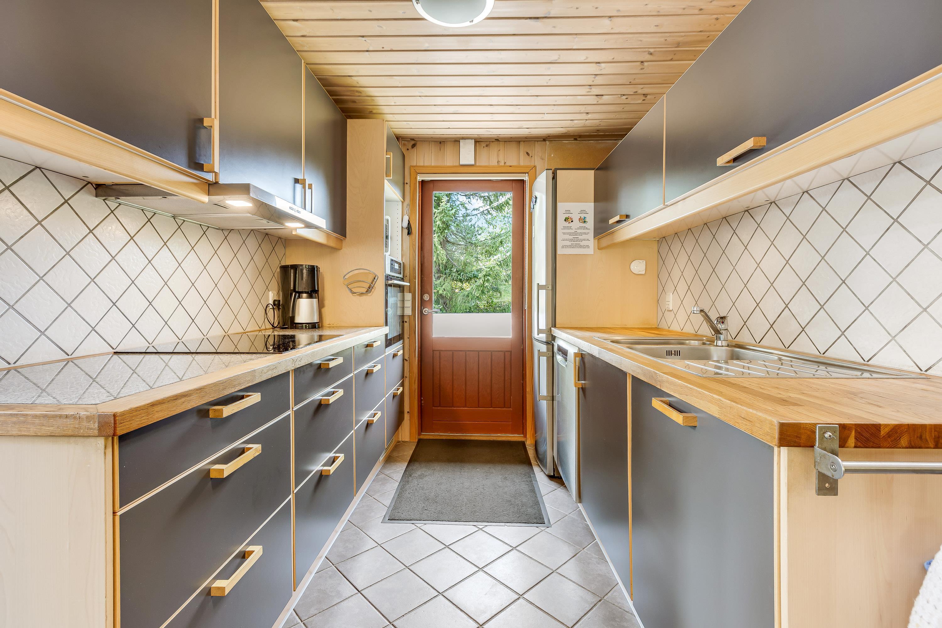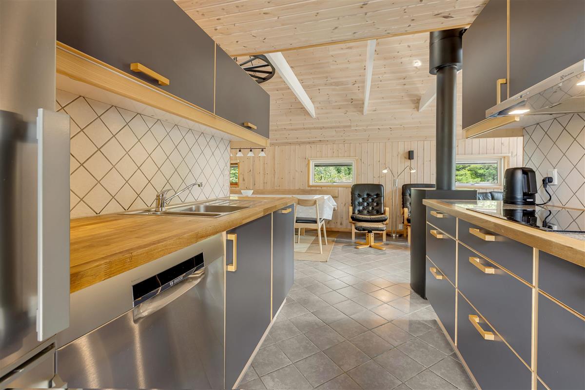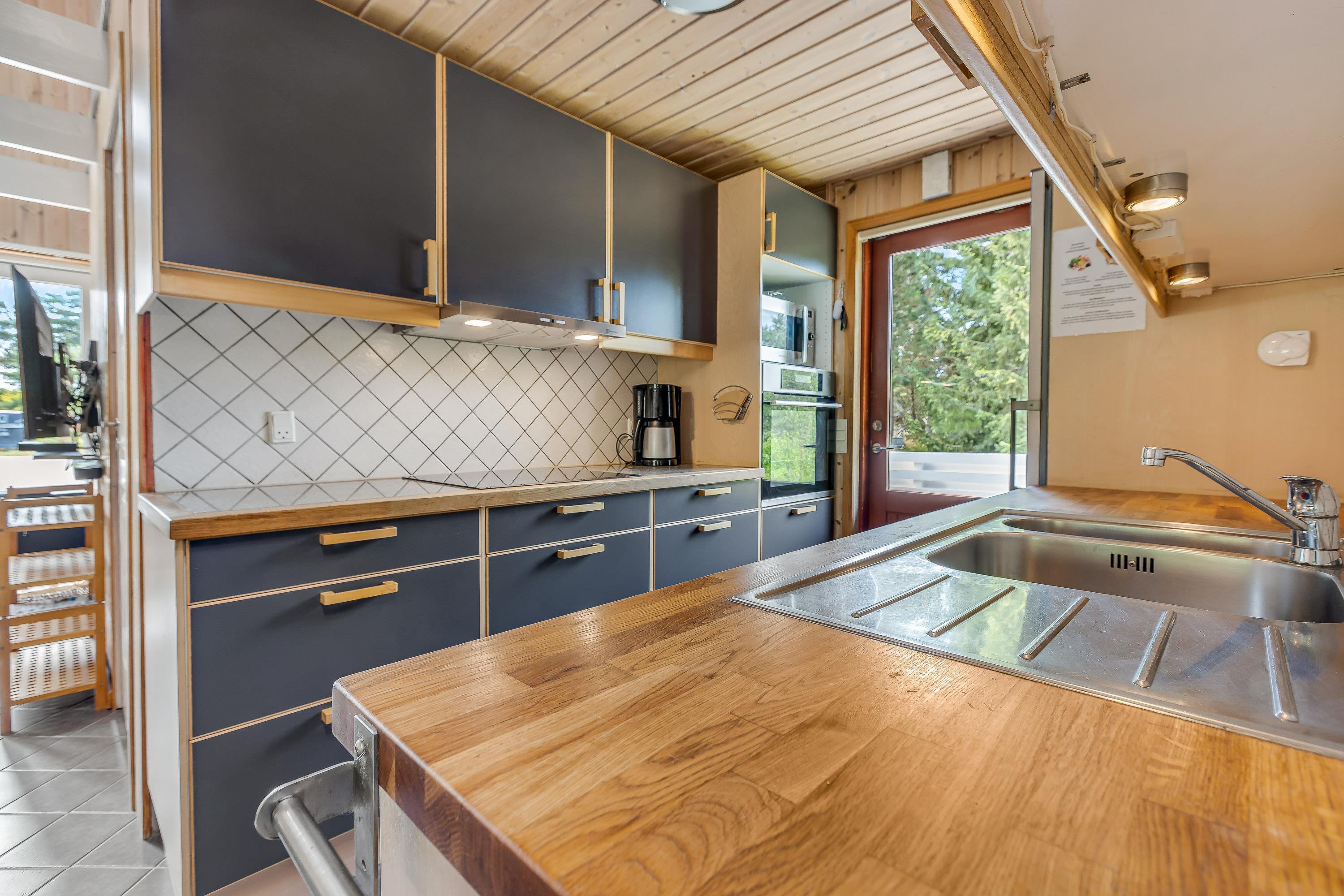 This thoroughly insulated holiday home features two heat pumps. The air-to-air heat pump provides energy-efficient heating in winter and acts as air conditioning in summer. To further reduce energy consumption, an air-to-water heat pump was installed in 2016, serving the underfloor heating, radiators and hot water supply.