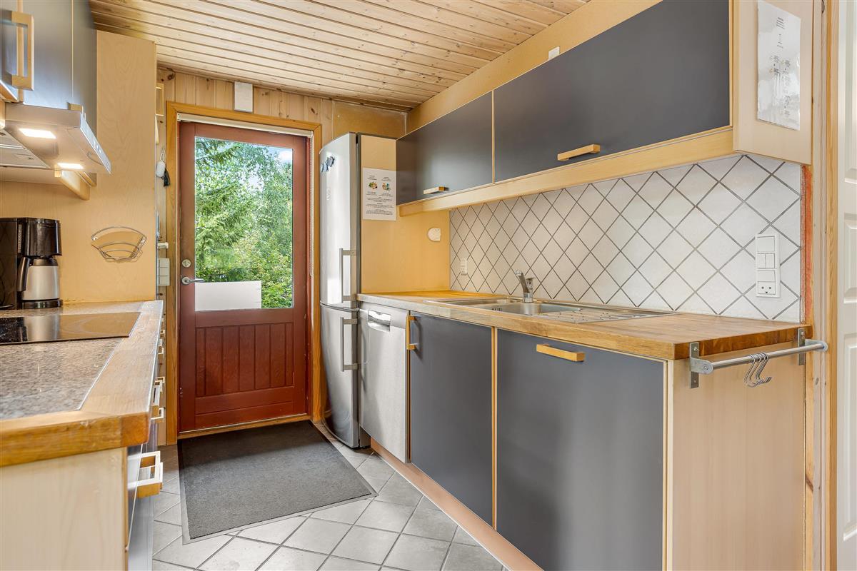 The house sits in a peaceful location on a plot sheltered by windbreak trees. It features a 65-square-metre terrace facing east, south and west, furnished with garden furniture and a stone barbecue - perfect for enjoyable summer evening dining outdoors.