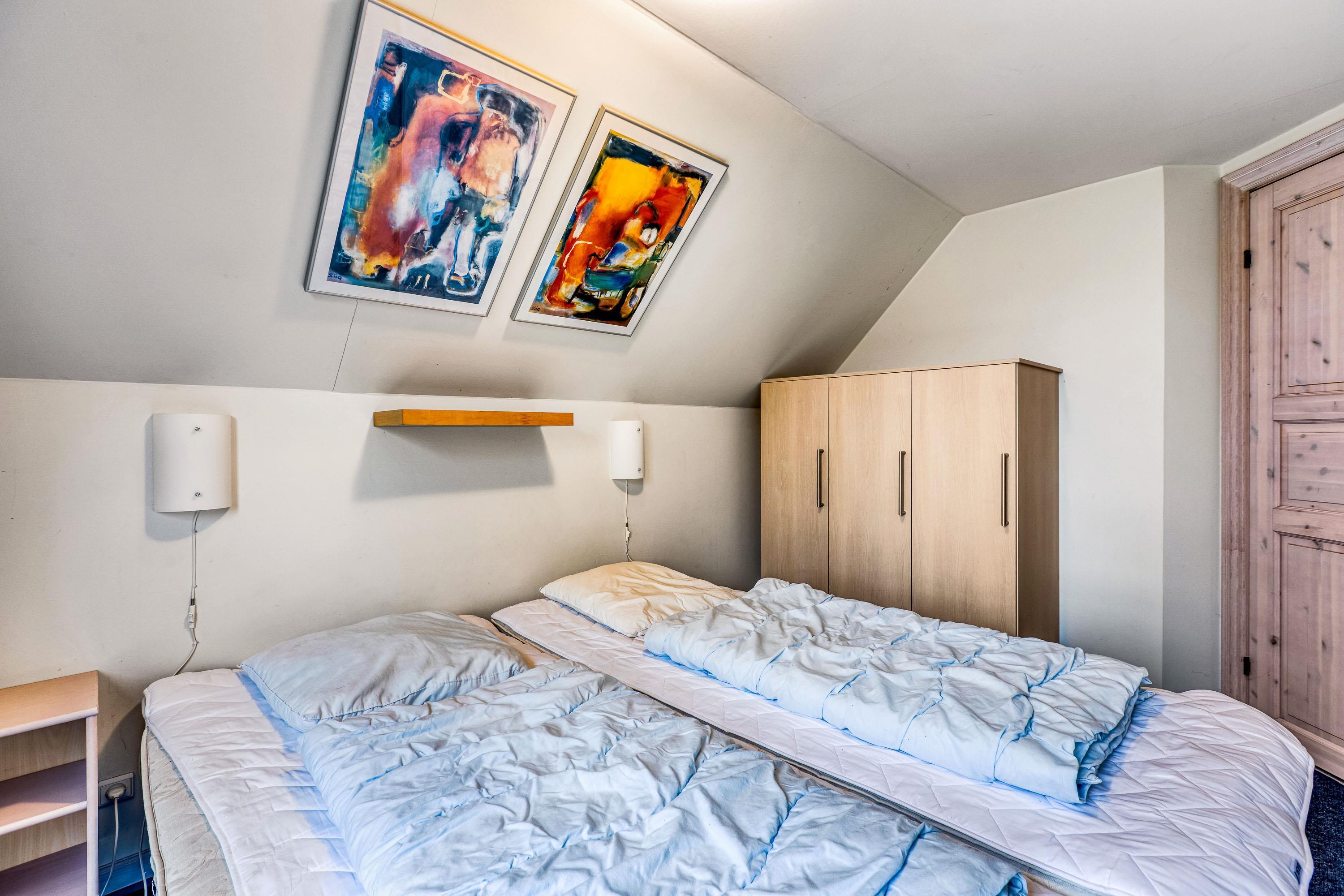 The cosy living room is located on the first floor. Spend relaxing evenings in front of the crackling fireplace watching a good film or enjoying North Sea views. This floor also includes a practical bathroom with shower, two bedrooms and a sleeping loft with two additional beds. The washing machine and tumble dryer are particularly practical for families needing to do laundry during their stay.