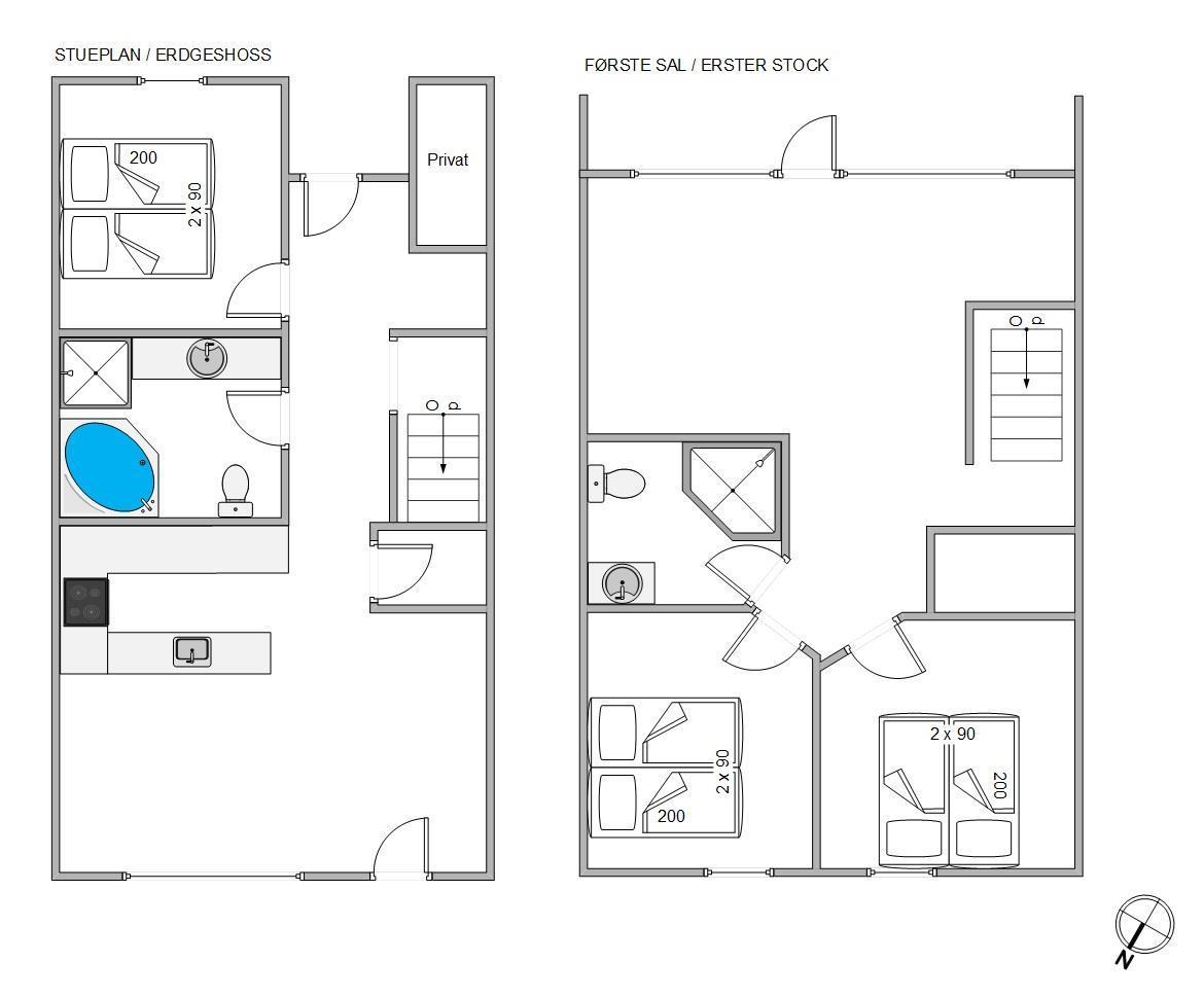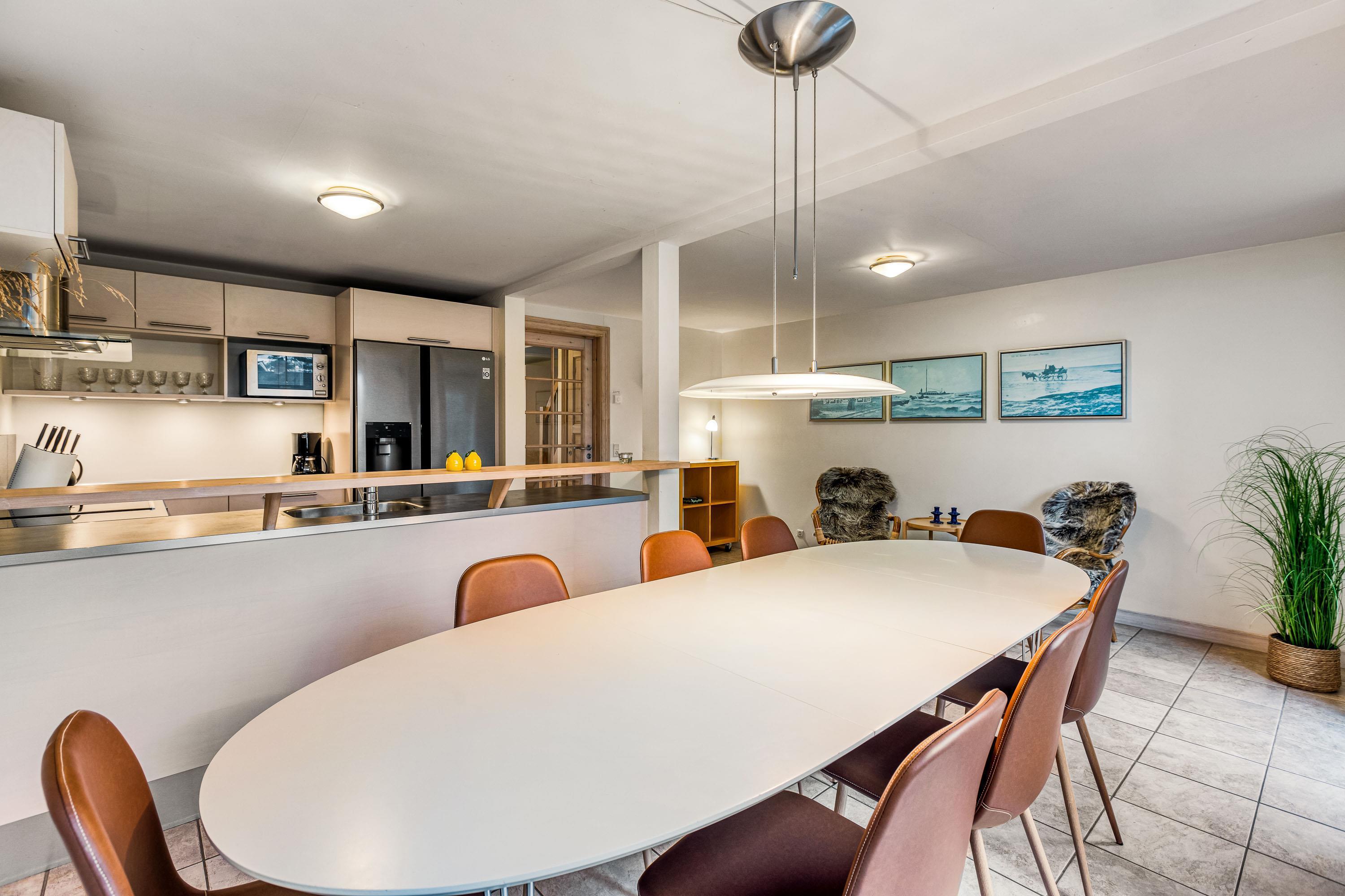 Welcome to this beautiful holiday apartment at Havnebyvej 59H, arranged across two floors. On the ground floor, you'll find a spacious dining area with open-plan kitchen. The kitchen is fully equipped, featuring an American-style fridge/freezer, microwave and dishwasher. The large dining table provides plenty of space for sociable game evenings.