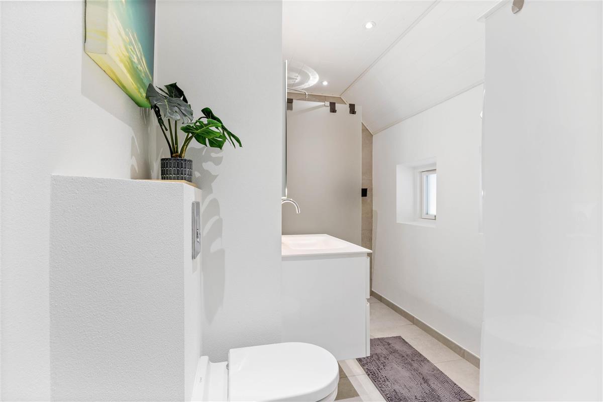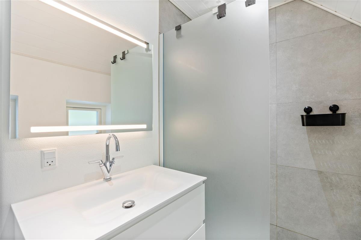 The bright, ultra-modern kitchen leaves nothing to be desired. It features a large induction hob with integrated extractor fan, dishwasher, oven, and a spacious fridge-freezer with 196-litre fridge and 72-litre freezer capacity. A filter coffee maker, additional Senseo espresso pod machine, and milk frother are also provided. Ample storage for groceries is available in a tall cupboard, drawers, and shelves.