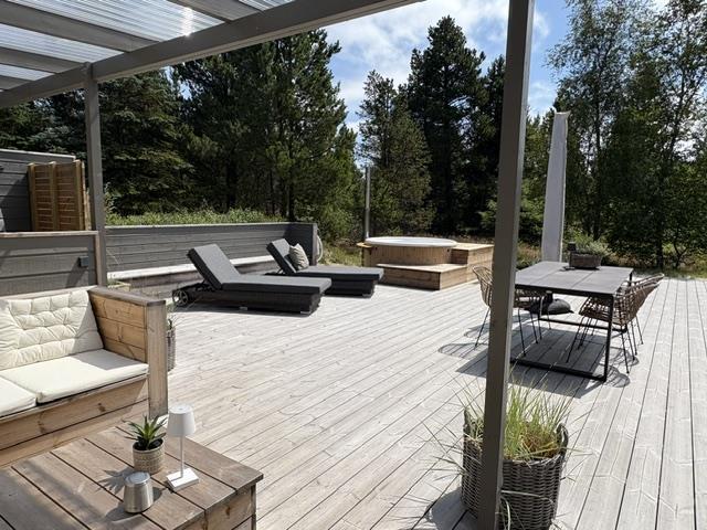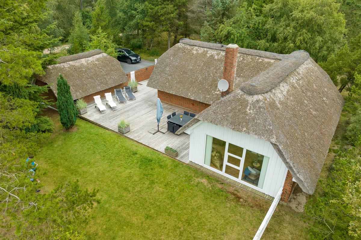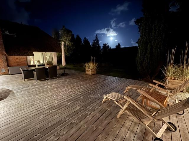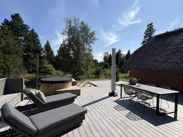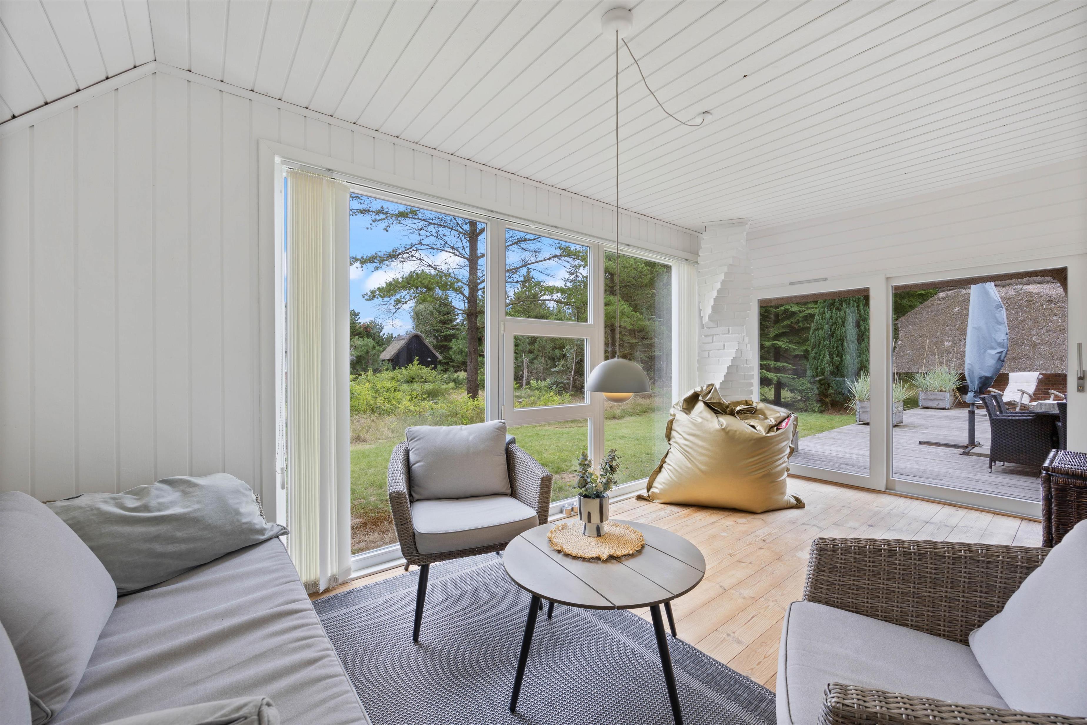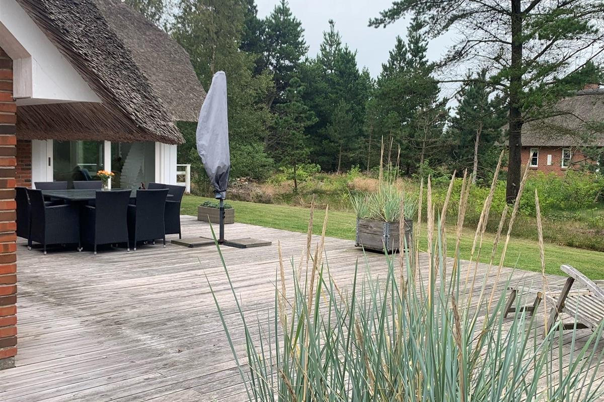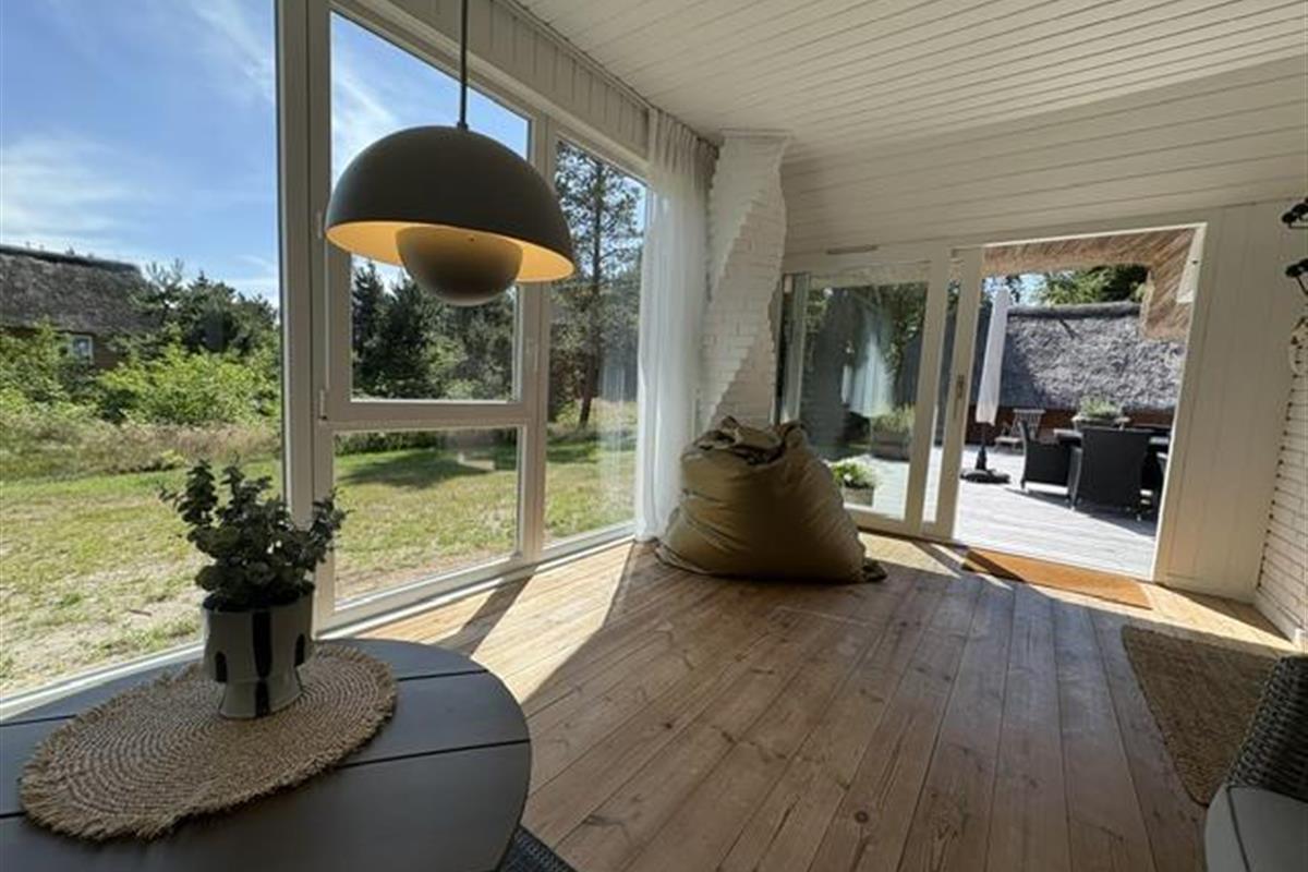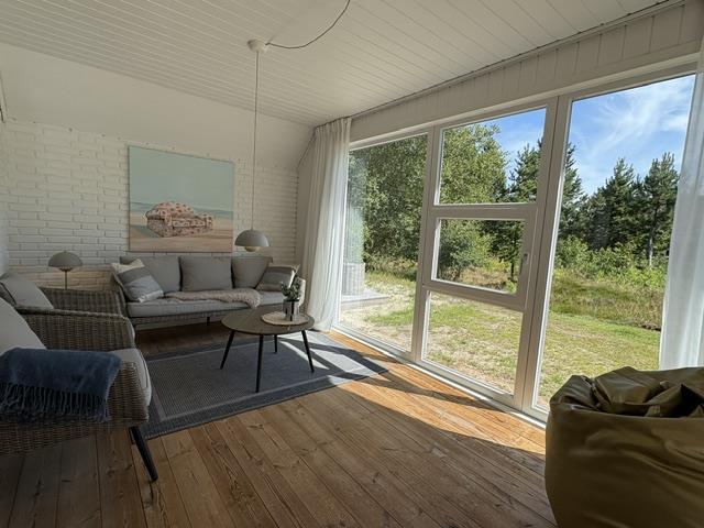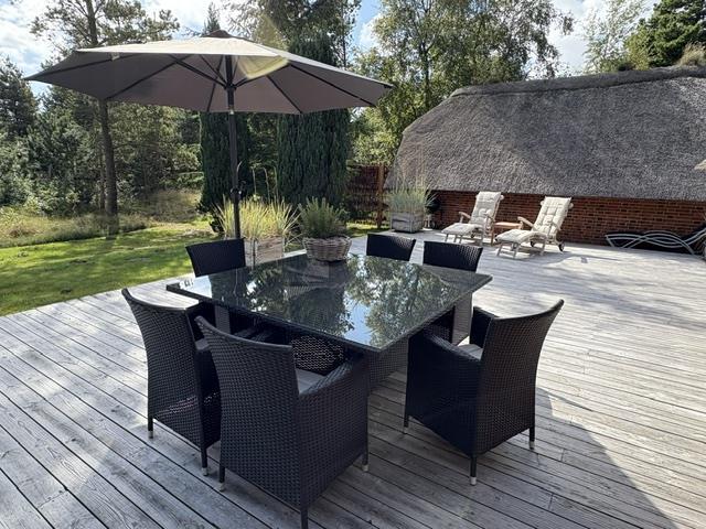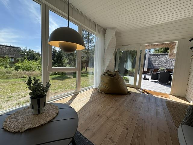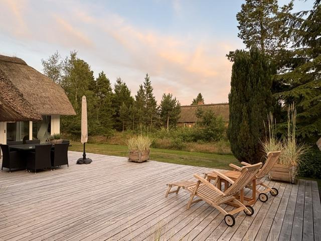 This beautiful and tastefully furnished holiday home at Råbjergvej 4 on Rømø sits on a spacious, quiet natural plot of 2,654 square metres, surrounded by trees, heather and grass. Deer, rabbits, pheasants and foxes freely roam the garden. The swimming beach at Lakolk is just 1.5 miles (2,500 metres) away, while the Wadden Sea is 650 metres from the holiday home.