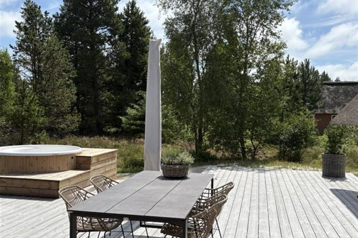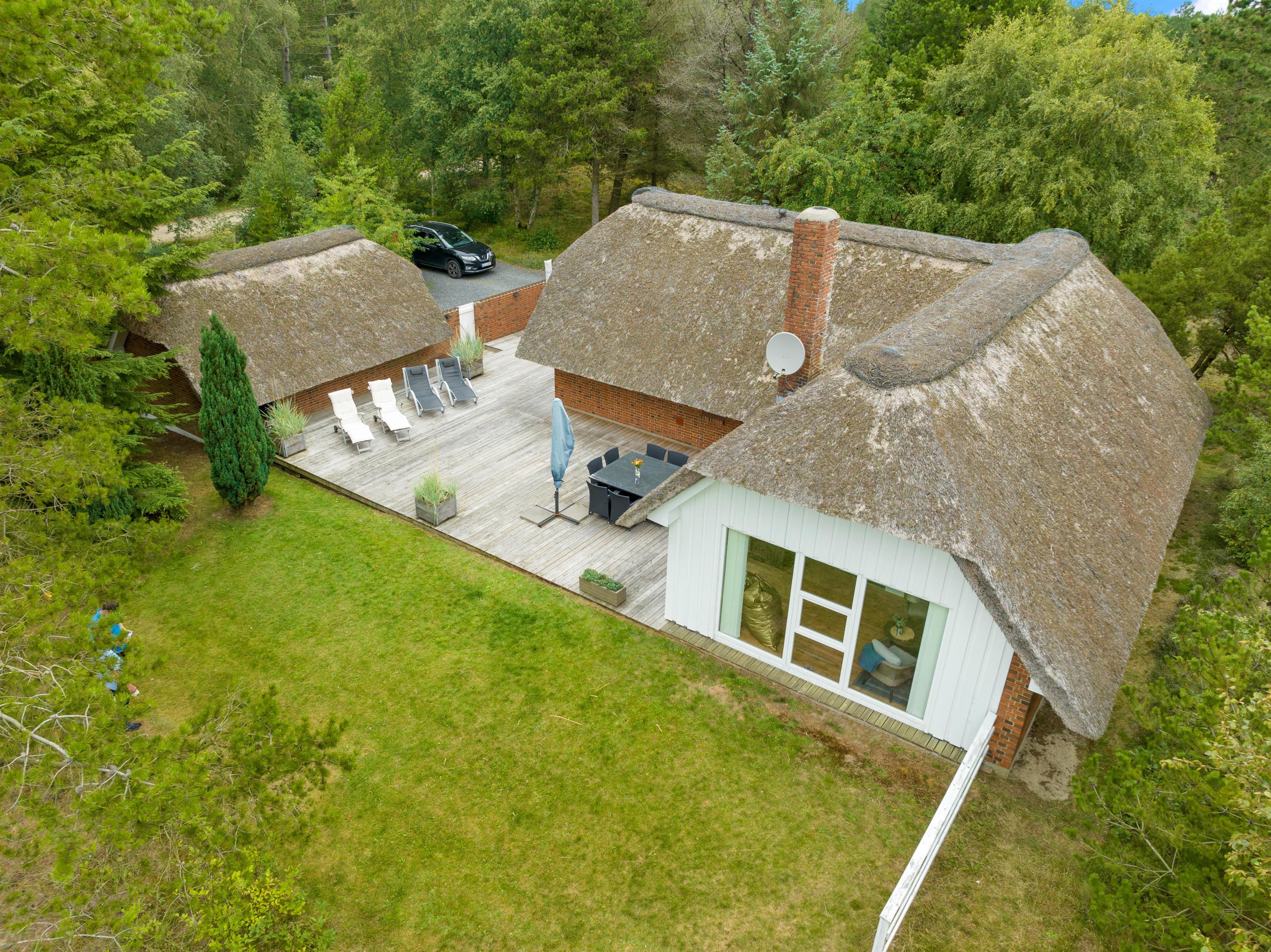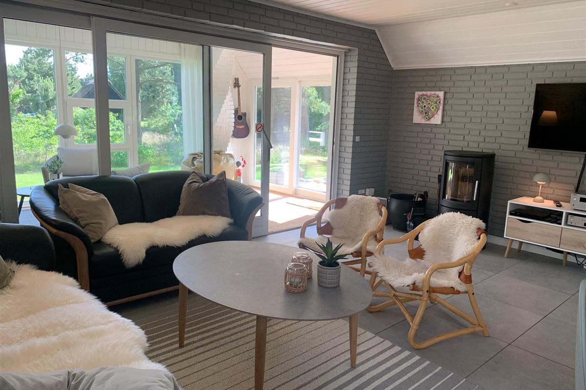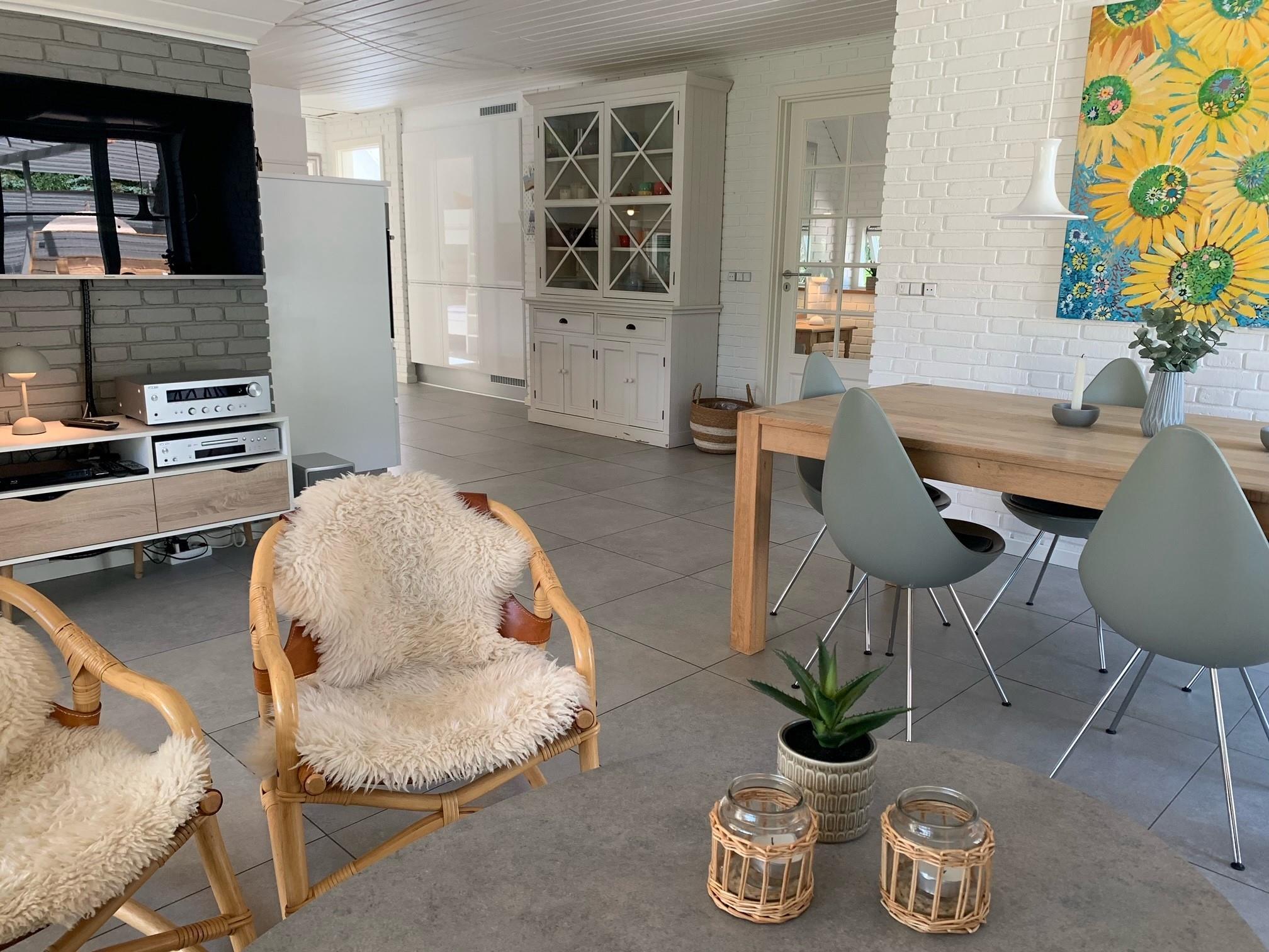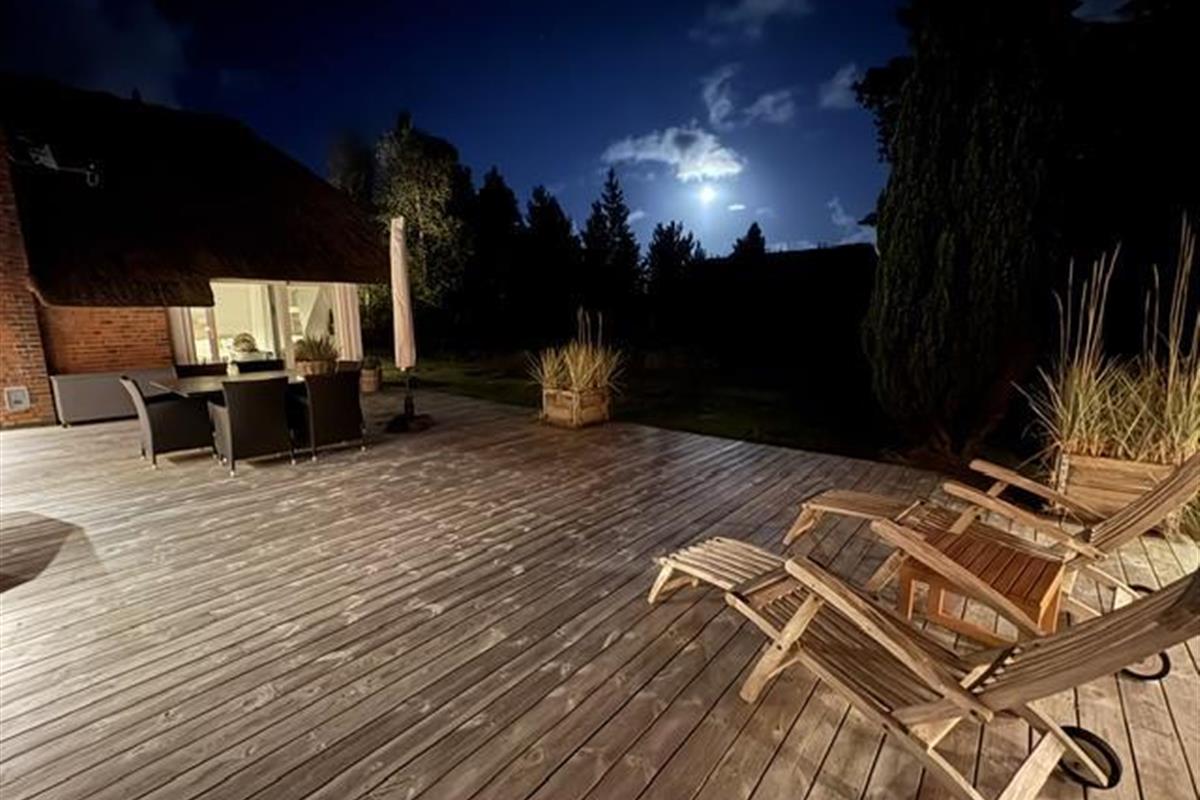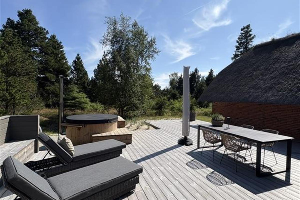 This beautiful and tastefully furnished holiday home at Råbjergvej 4 on Rømø sits on a spacious, quiet natural plot of 2,654 square metres, surrounded by trees, heather and grass. Deer, rabbits, pheasants and foxes freely roam the garden. The swimming beach at Lakolk is just 1.5 miles (2,500 metres) away, while the Wadden Sea is 650 metres from the holiday home.
