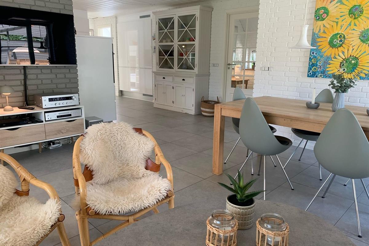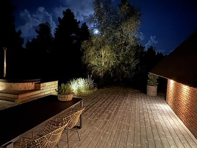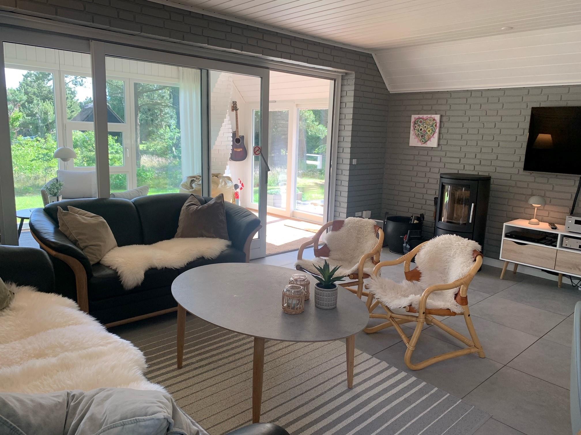 The holiday home is equipped with an energy-efficient heat pump. During colder months, the electric underfloor heating, installed throughout the house, can be individually controlled in different zones. A wood-burning stove provides additional cosy warmth.