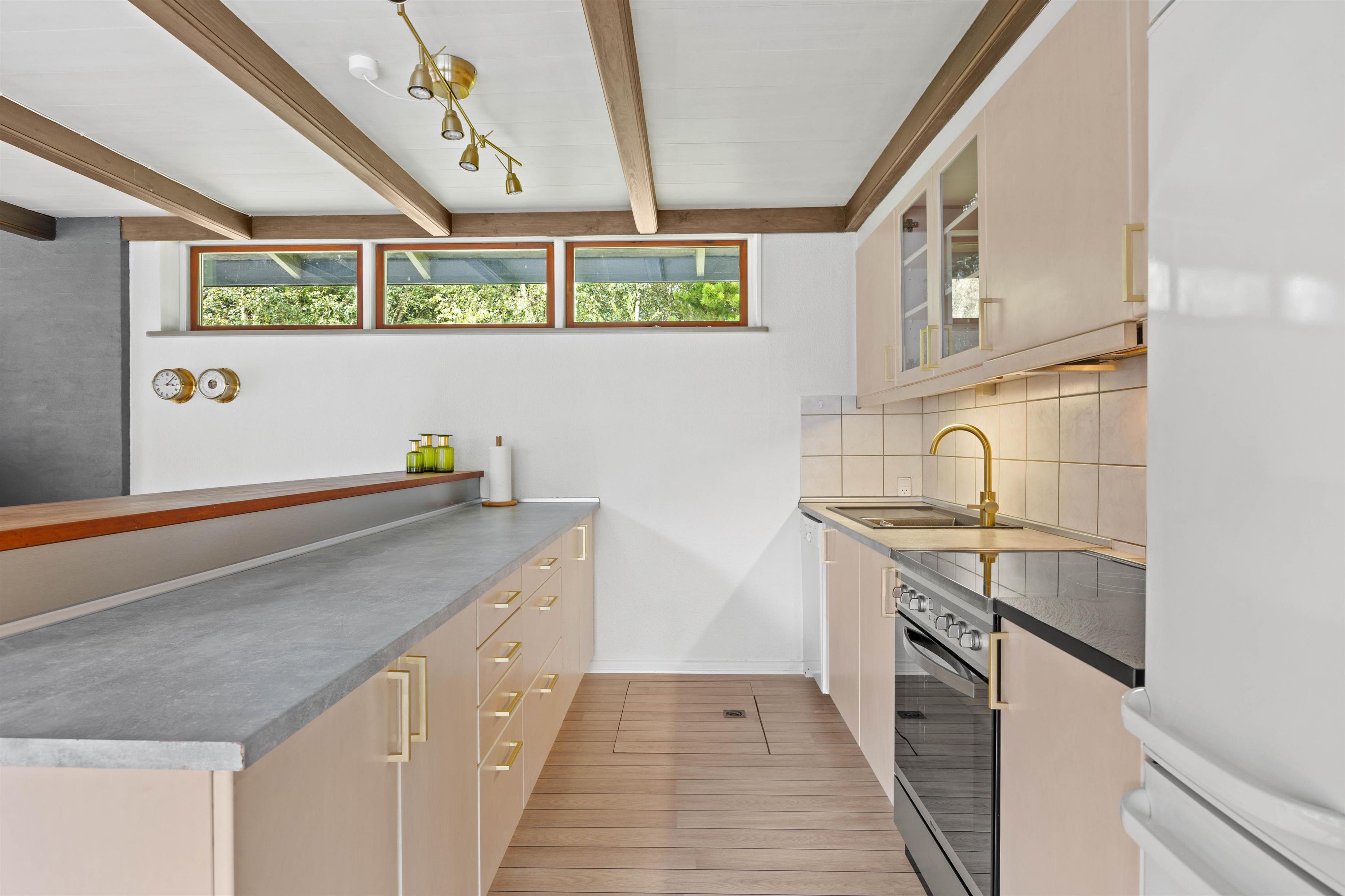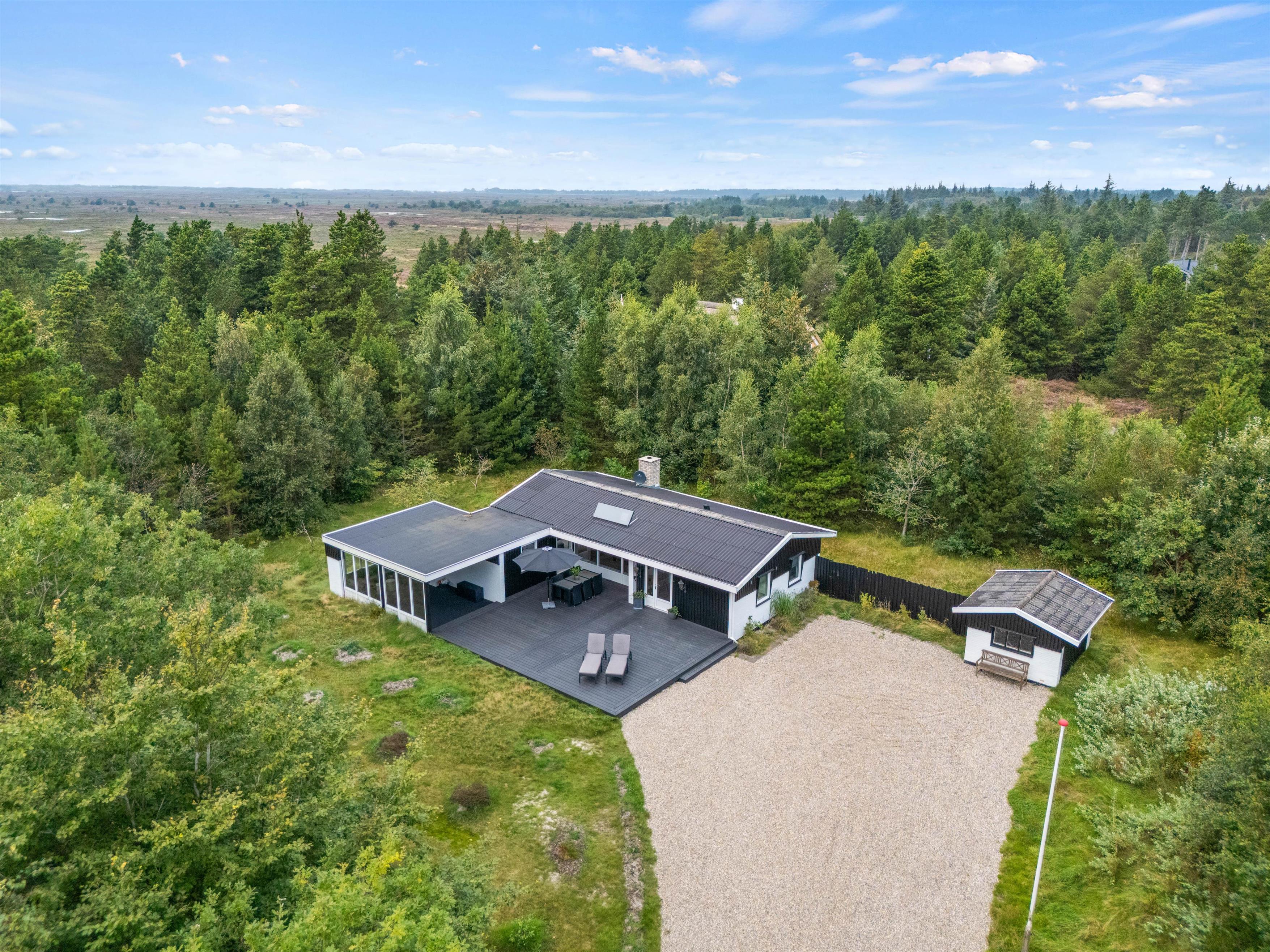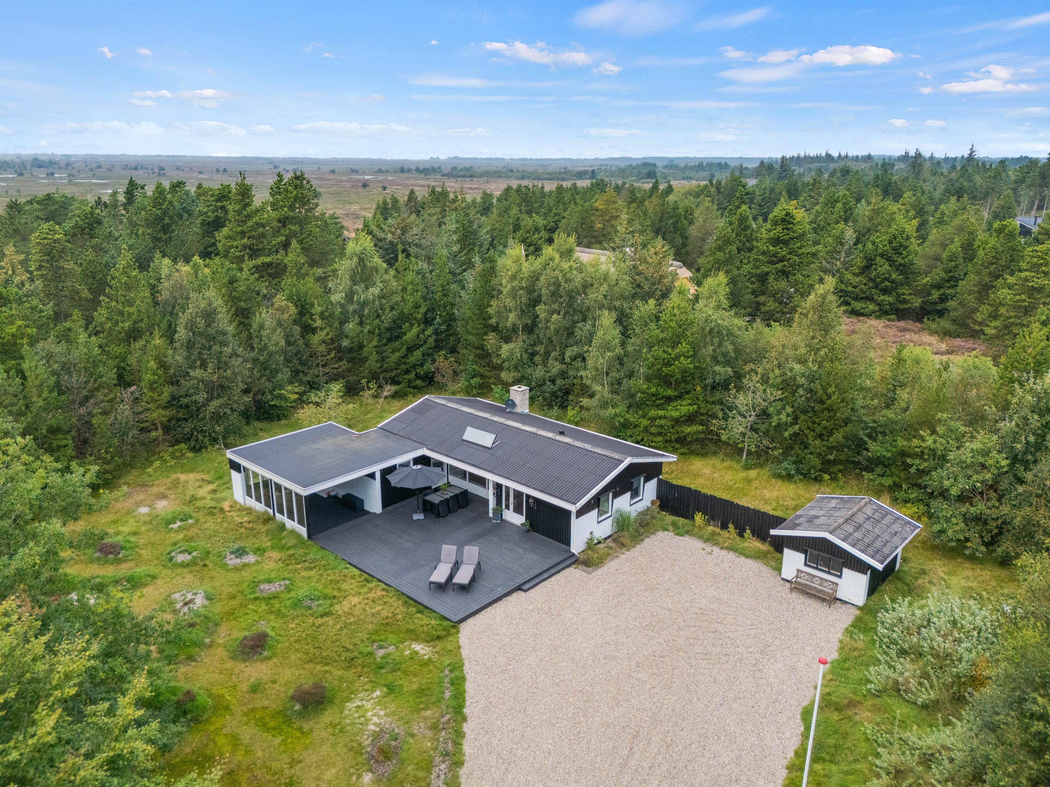 Relax on the sofa, gaze out at nature, and listen to the crackling of the wood-burning stove. The holiday home also features an energy-efficient heat pump for heating. Additionally, there's a well-maintained bathroom with underfloor heating, shower, and washing machine, plus three bedrooms. The bedrooms offer two double beds and a sofa bed for a restful night's sleep.