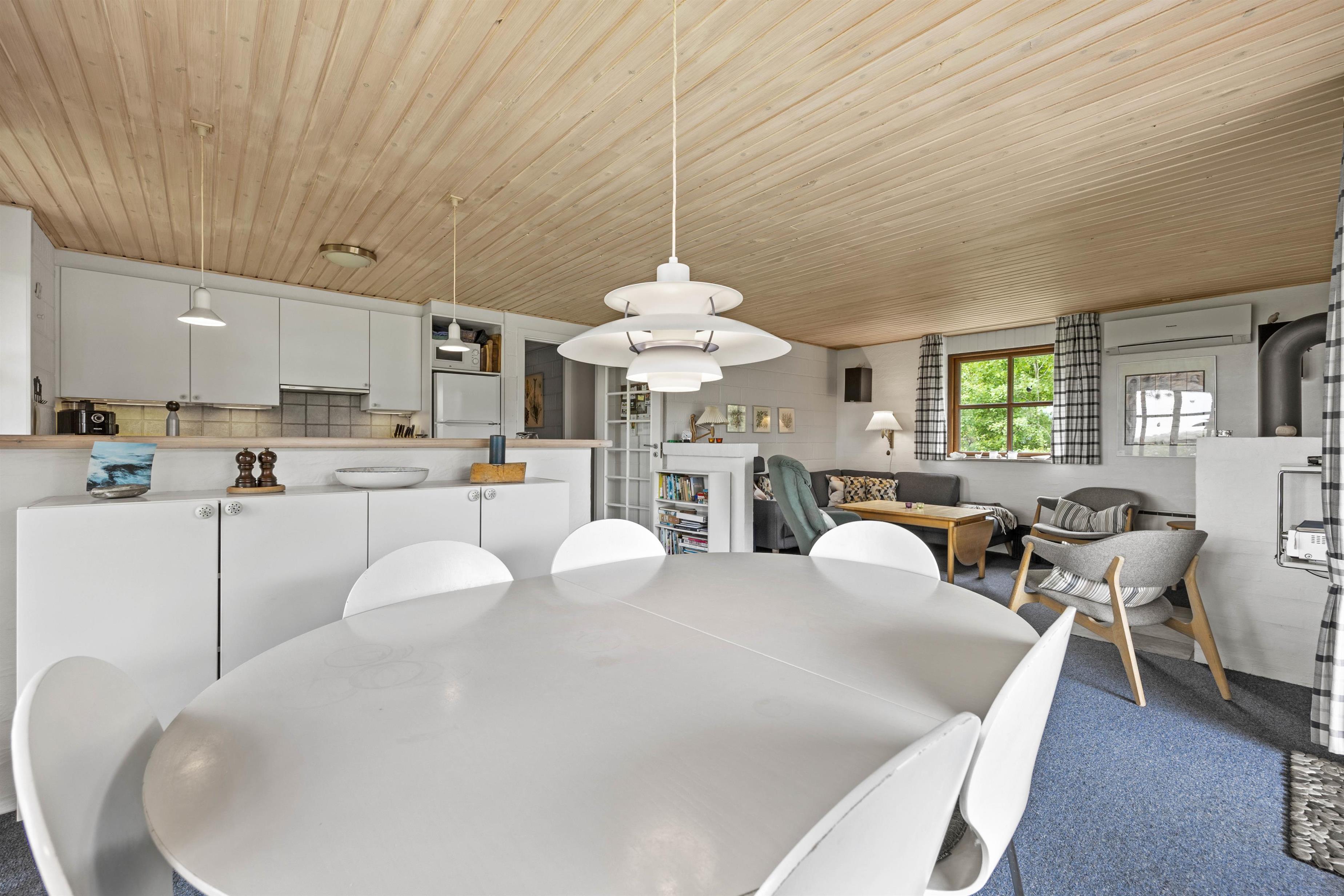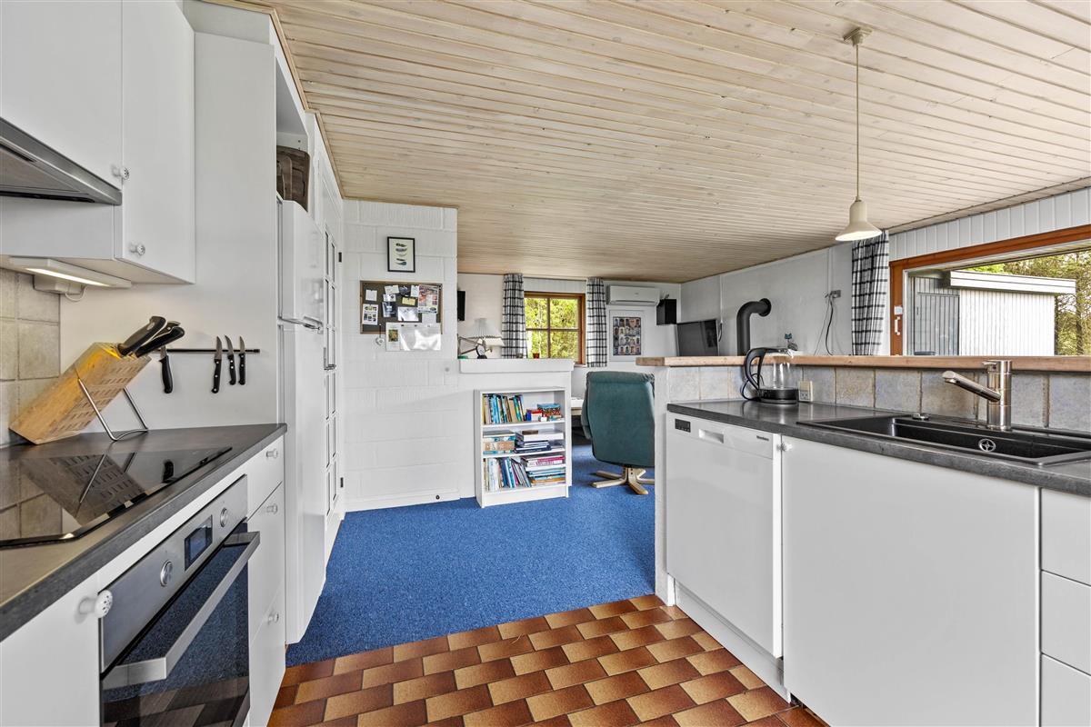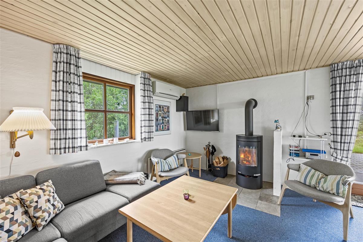 Make yourself comfortable in the evening on the corner sofa while the wood-burning stove creates a cosy atmosphere, or bring out the board games and enjoy quality time together at the dining table. For cooler days, the energy-efficient heat pump provides warmth. The compact, well-equipped kitchen has everything needed for perfect meal preparation, and there's no need to worry about washing up – the dishwasher takes care of that.