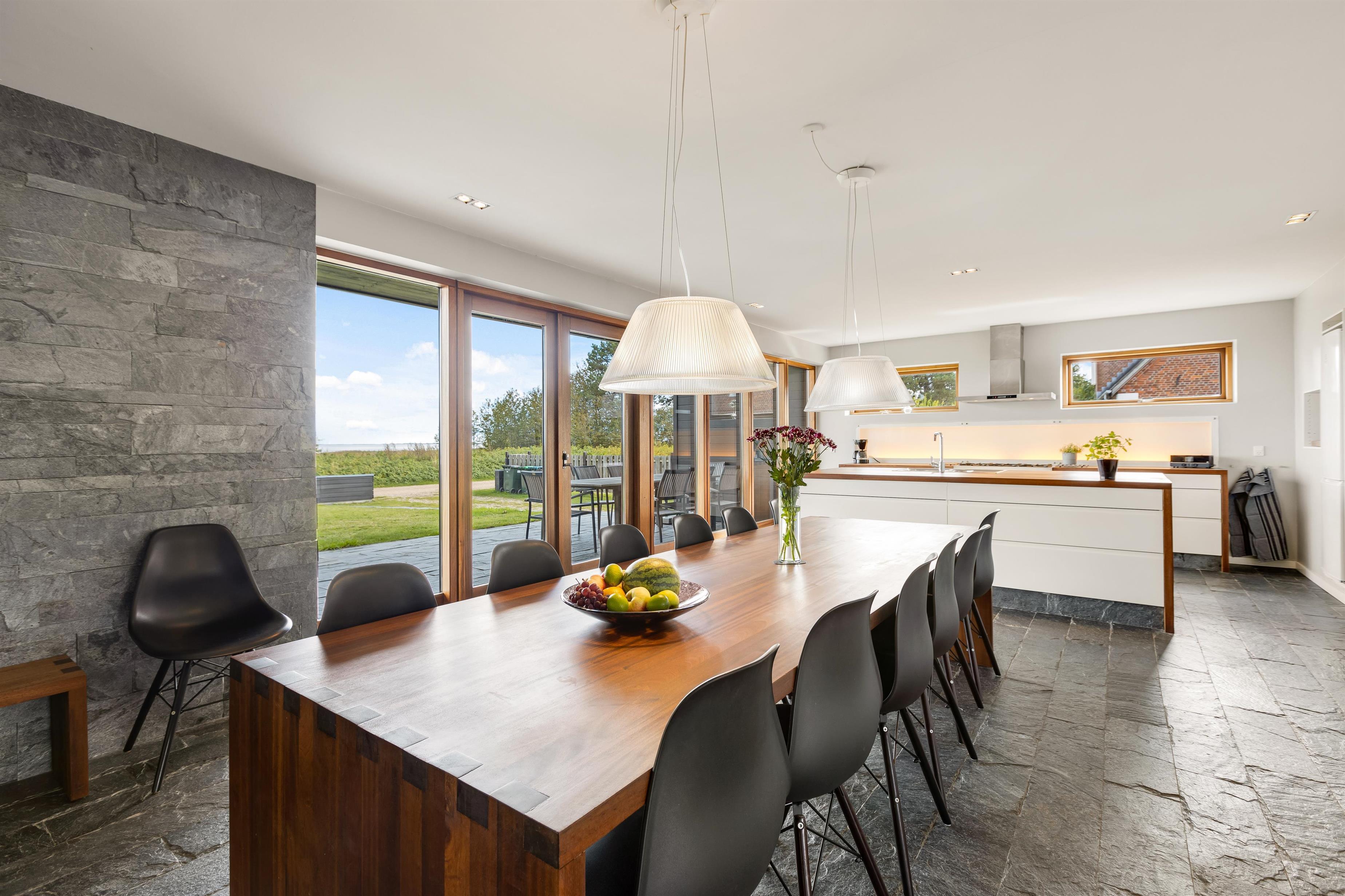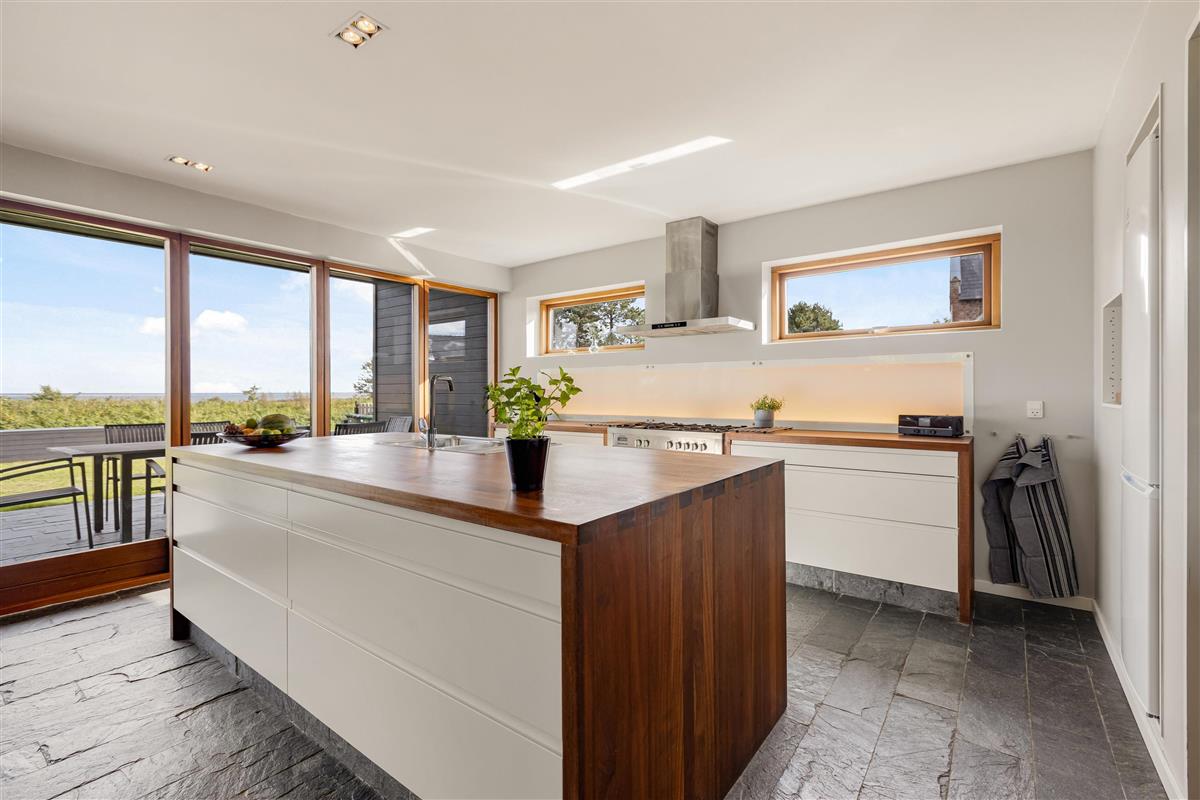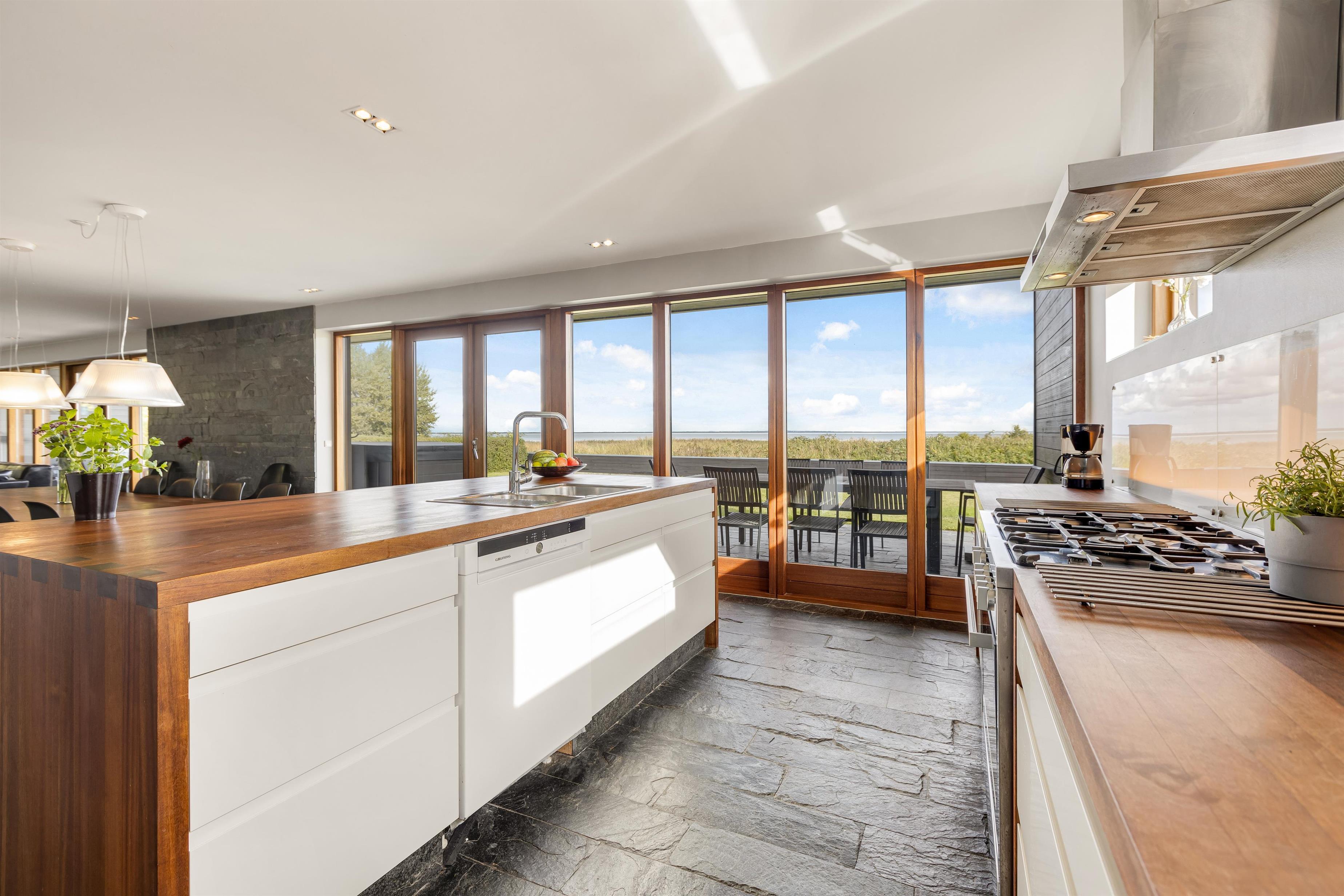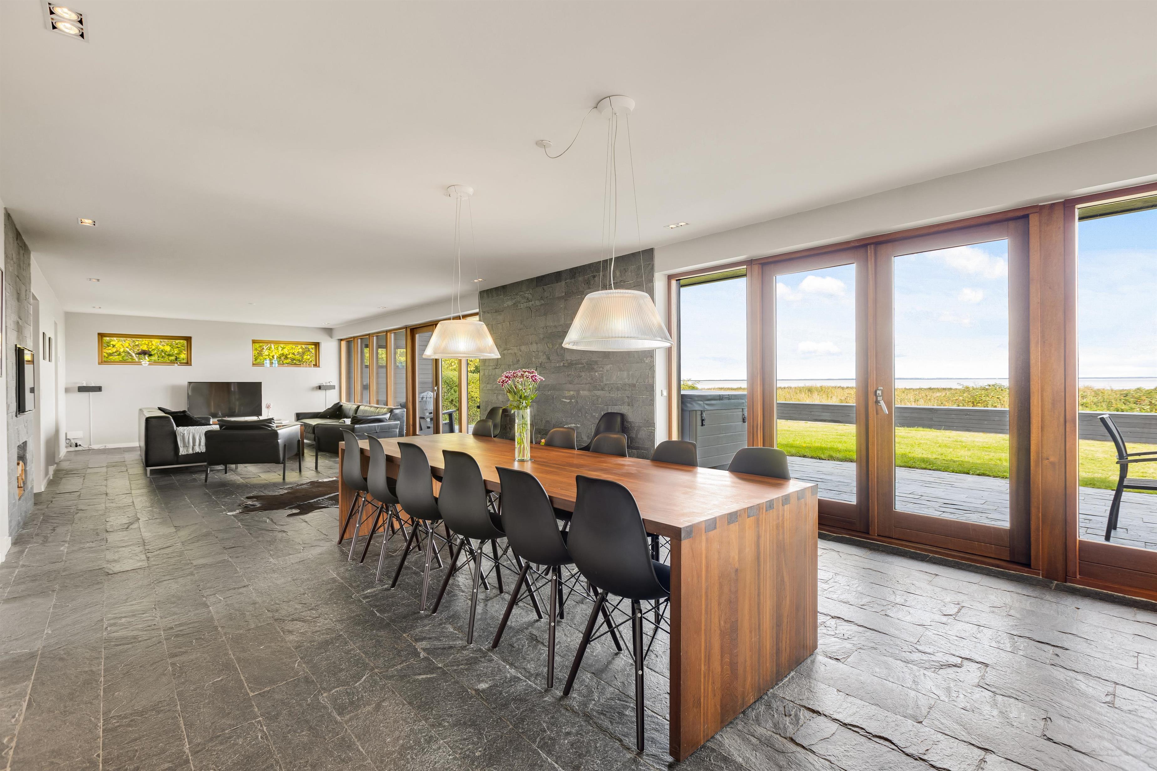 The spacious outdoor area features an extensive lawn, perfect for activities or a game of Viking chess (Kubb). The partially covered terrace is ideal for a family barbecue. In the evening, you can unwind in the outdoor hot tub with a glass of wine, enjoying beautiful views of the water and starlit sky.