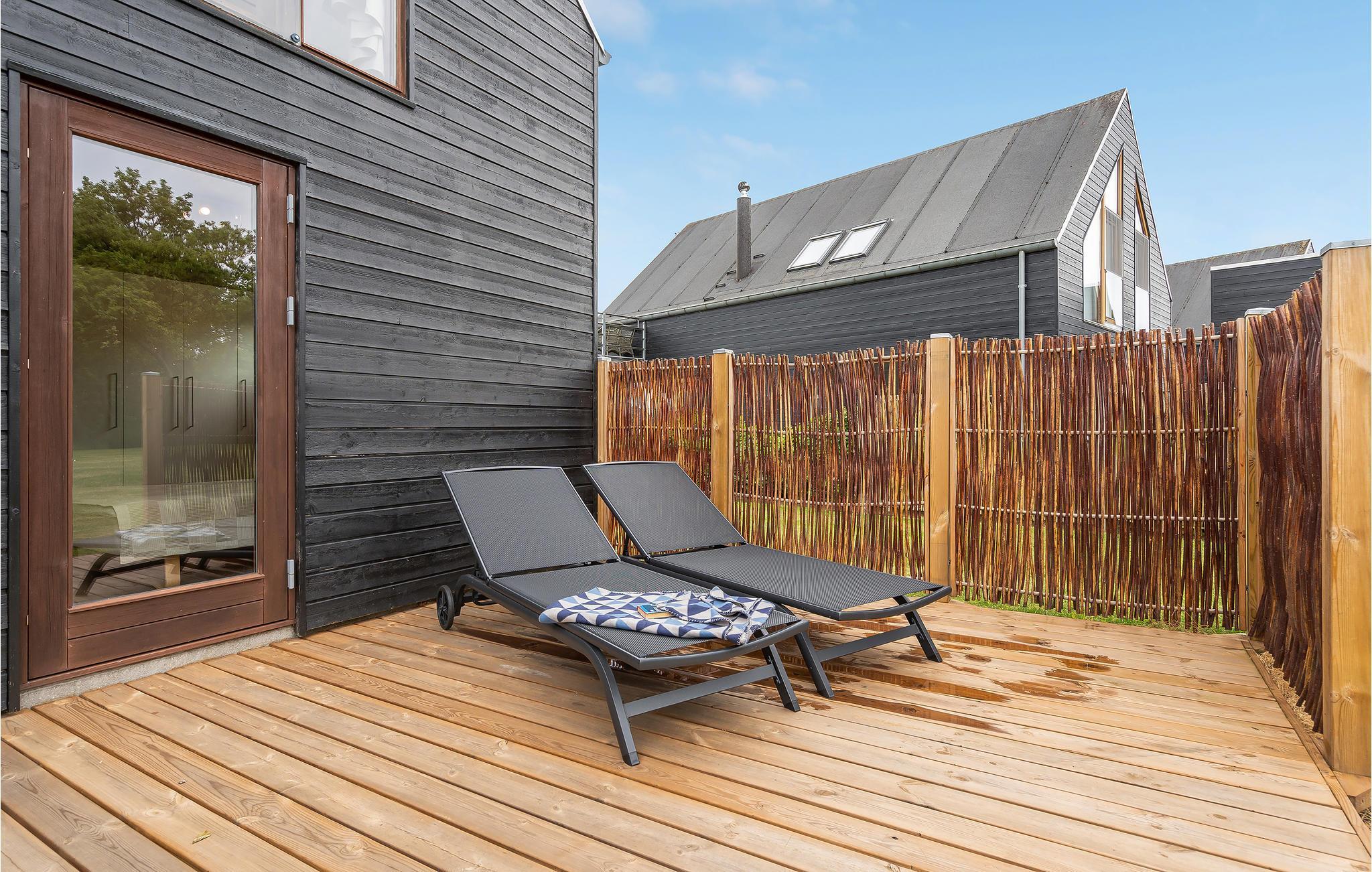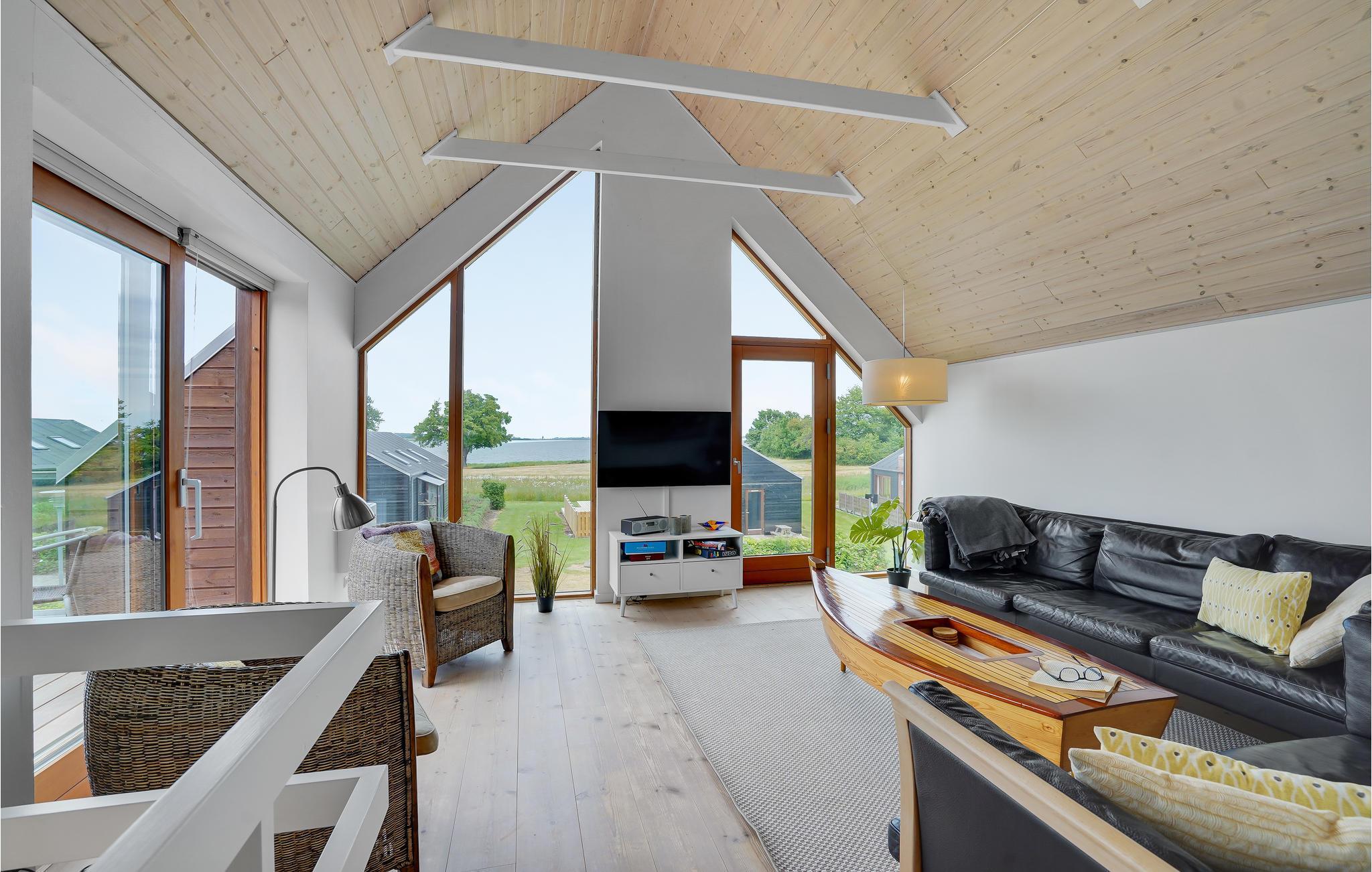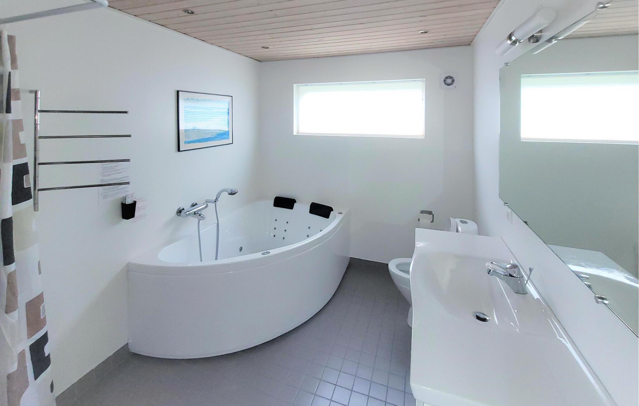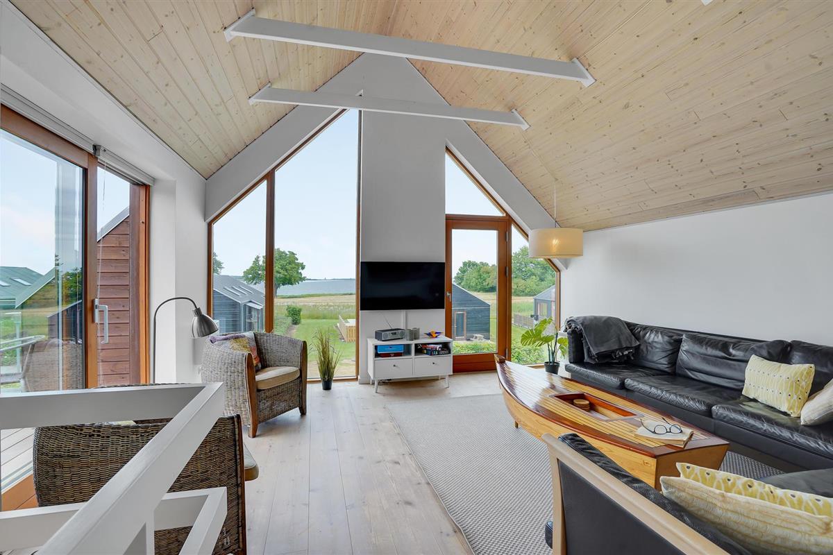 Uniek gelegen vakantiehuis in Kongsnæs Vakantiecentrum. Het is ontworpen door een architect en heeft alle comfort dat uw hartje begeert op een mooie vakantie. Het heeft een functionele en goed uitgeruste keuken en twee badkamers, één op de begane grond met een whirlpool en één op de begane grond. Het panoramische uitzicht vanuit het huis is zonder twijfel het puntje op de i. Vanaf het terras en balkon heeft u een fantastisch uitzicht over de omgeving en vanuit zowel de woonkamer als de eerste verdieping heeft u uitzicht op Grønsund, Bogø en Møn. Het huis ligt dicht bij het gezellige stadje Stubbekøbing, vanwaar u in de zomer naar Bogø en Møn kunt varen.