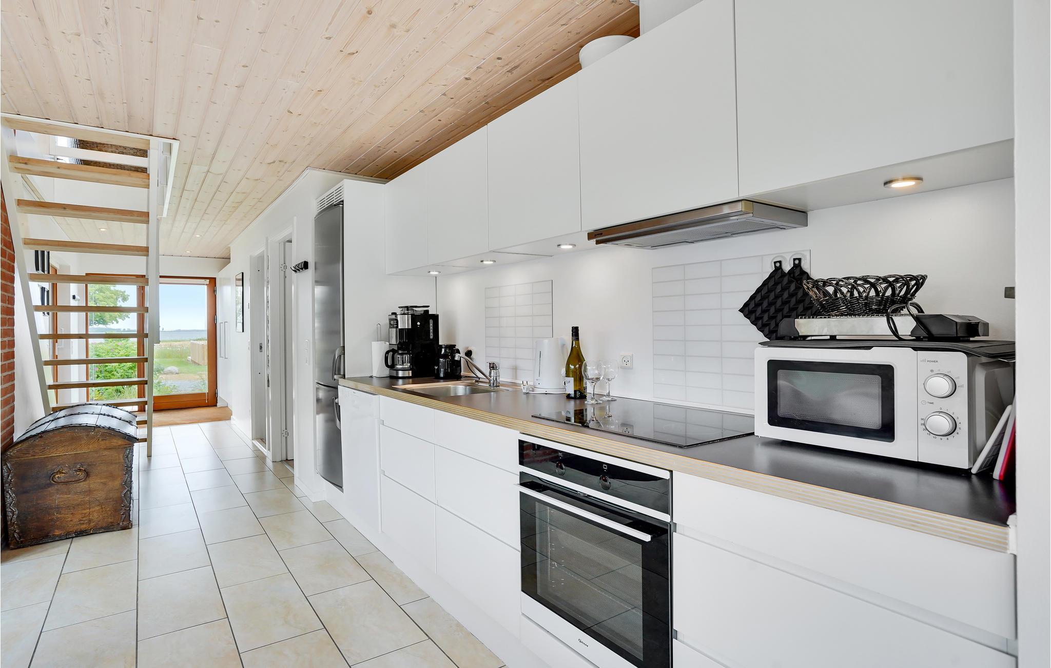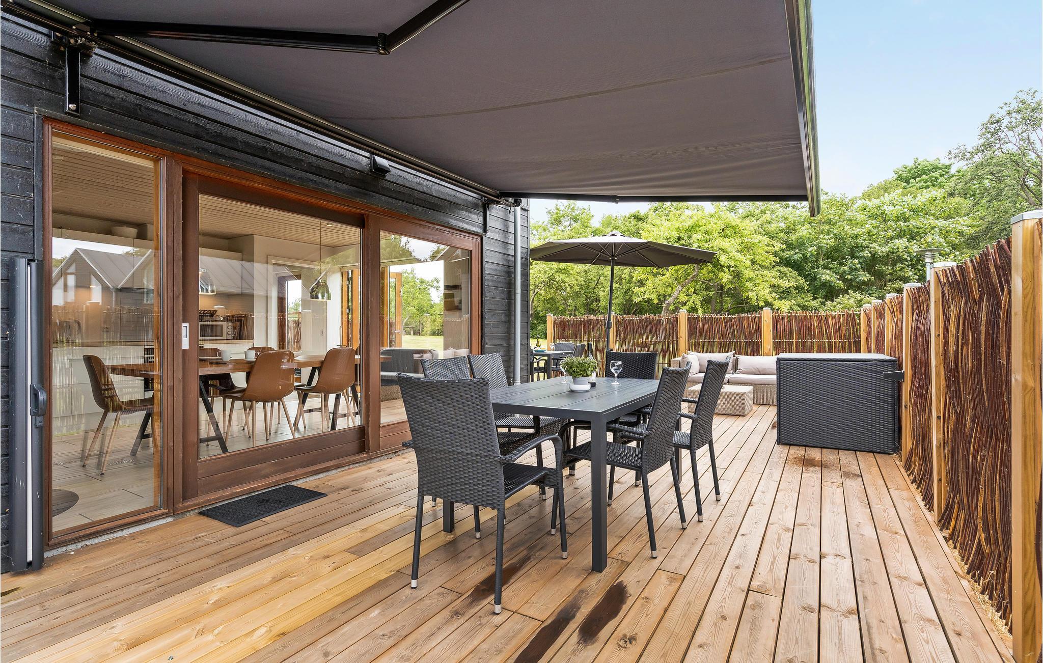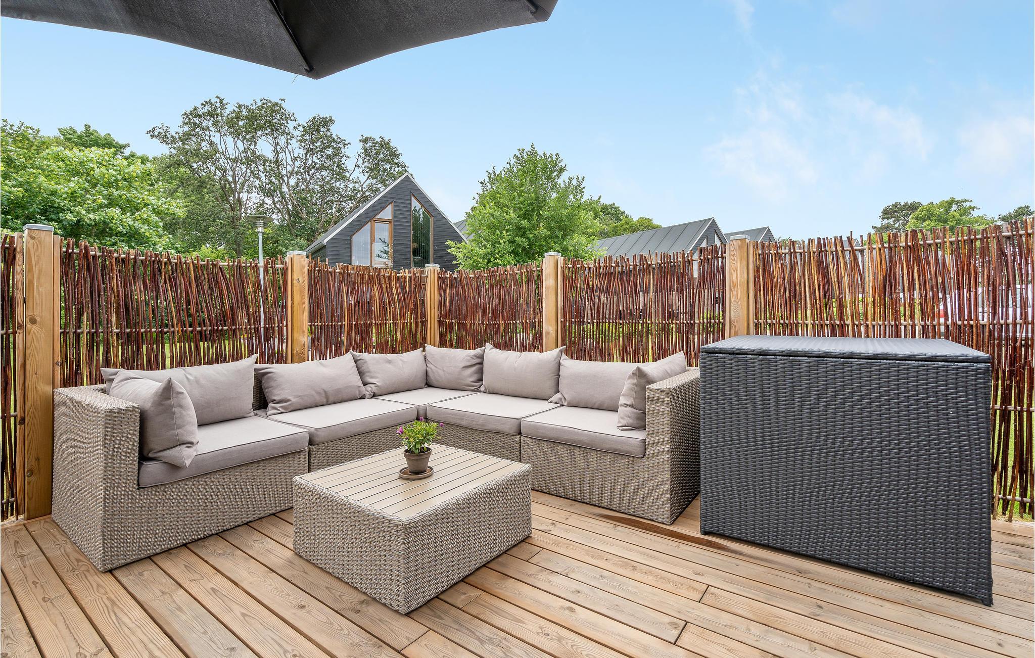 Uniek gelegen vakantiehuis in Kongsnæs Vakantiecentrum. Het is ontworpen door een architect en heeft alle comfort dat uw hartje begeert op een mooie vakantie. Het heeft een functionele en goed uitgeruste keuken en twee badkamers, één op de begane grond met een whirlpool en één op de begane grond. Het panoramische uitzicht vanuit het huis is zonder twijfel het puntje op de i. Vanaf het terras en balkon heeft u een fantastisch uitzicht over de omgeving en vanuit zowel de woonkamer als de eerste verdieping heeft u uitzicht op Grønsund, Bogø en Møn. Het huis ligt dicht bij het gezellige stadje Stubbekøbing, vanwaar u in de zomer naar Bogø en Møn kunt varen.