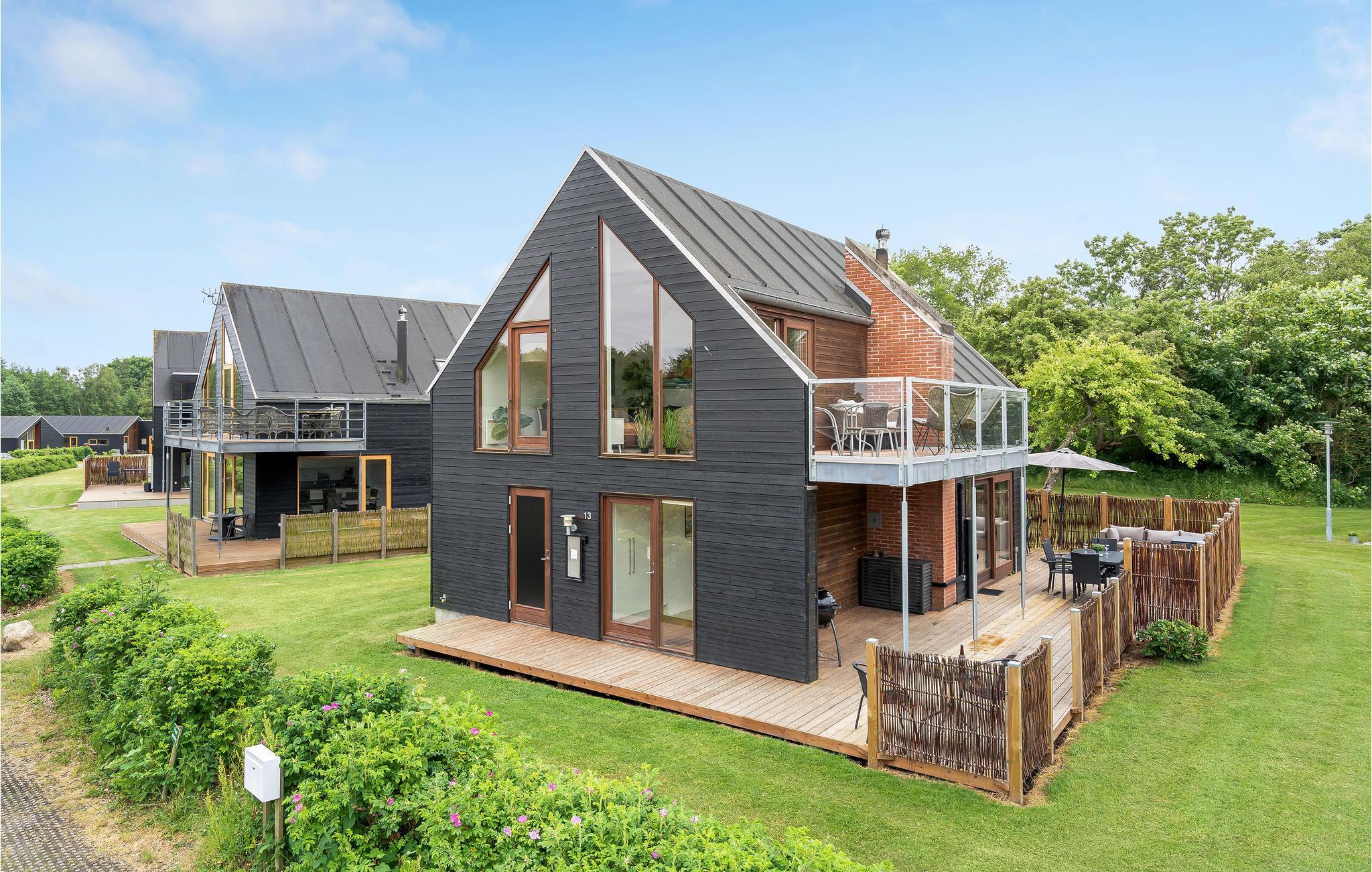 Uniek architectonisch vakantiehuis met panoramisch uitzicht en whirlpool nabij Stubbekøbing.
