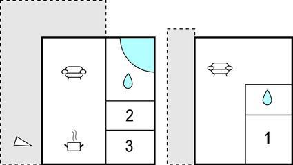 Badkamer (nr. 1) - Toilet: warm en koud water. Douche