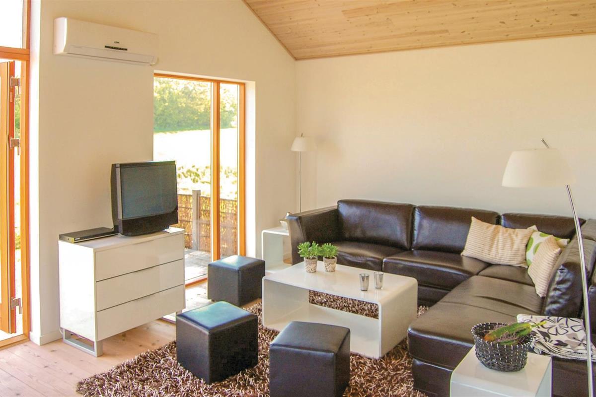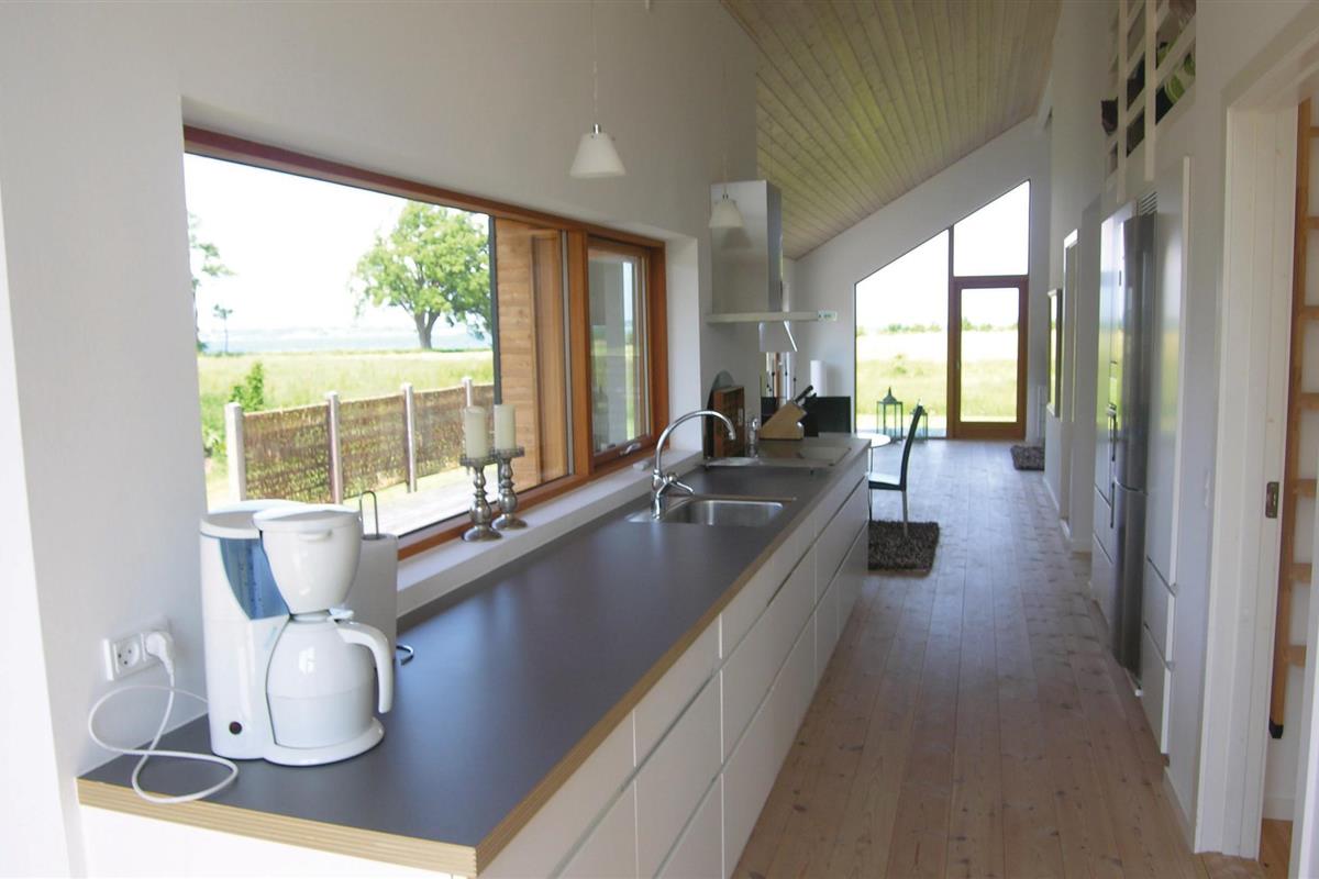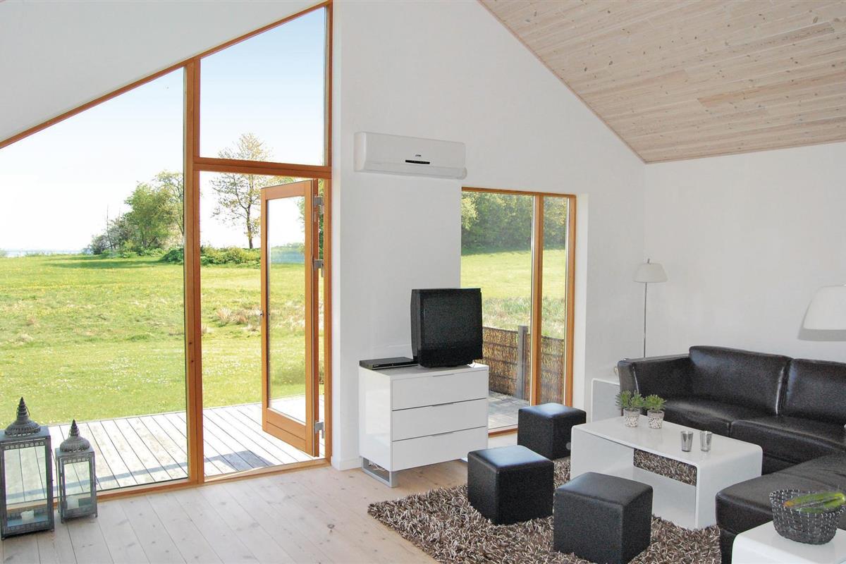 Mooie architect ontworpen vakantiewoning in Kongsnæs met uitzicht op meer en Grønsund, nabij het stadje Stubbekøbing.