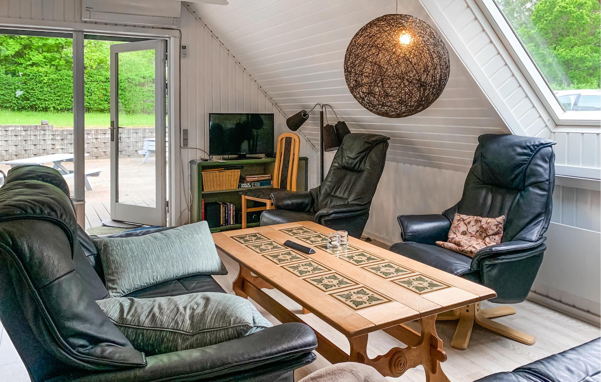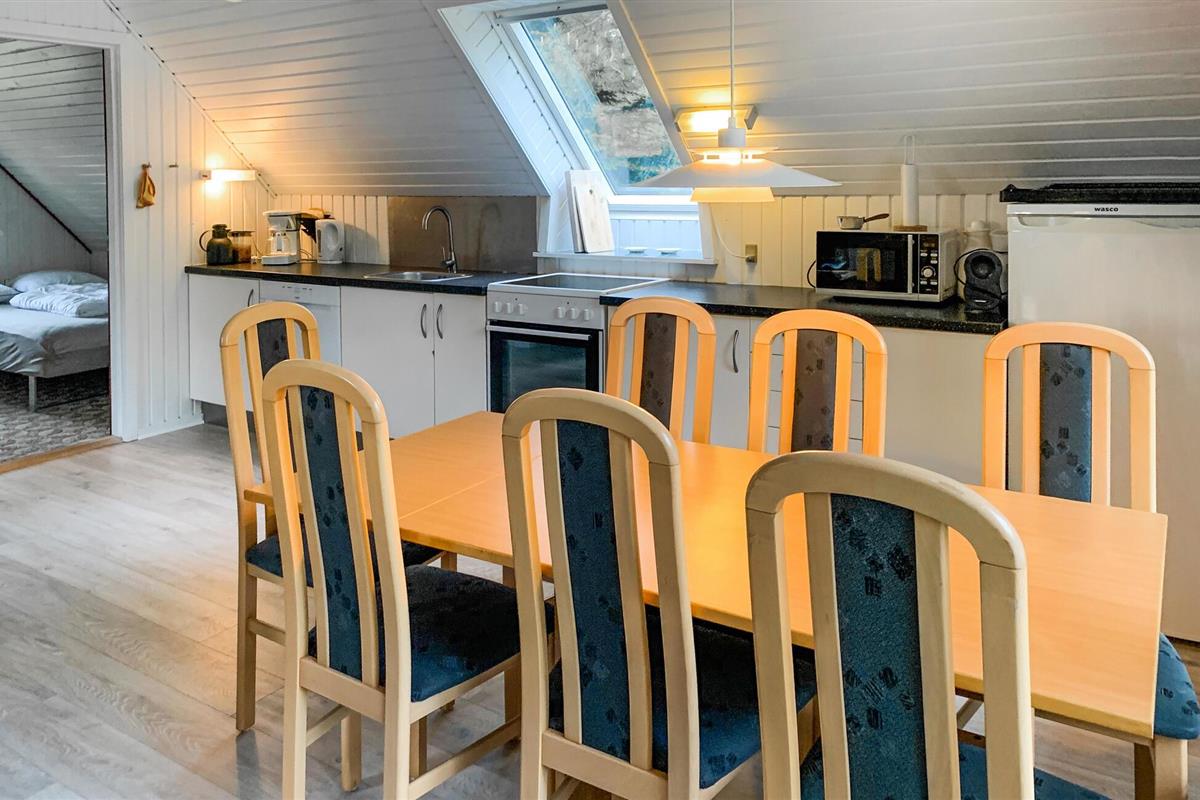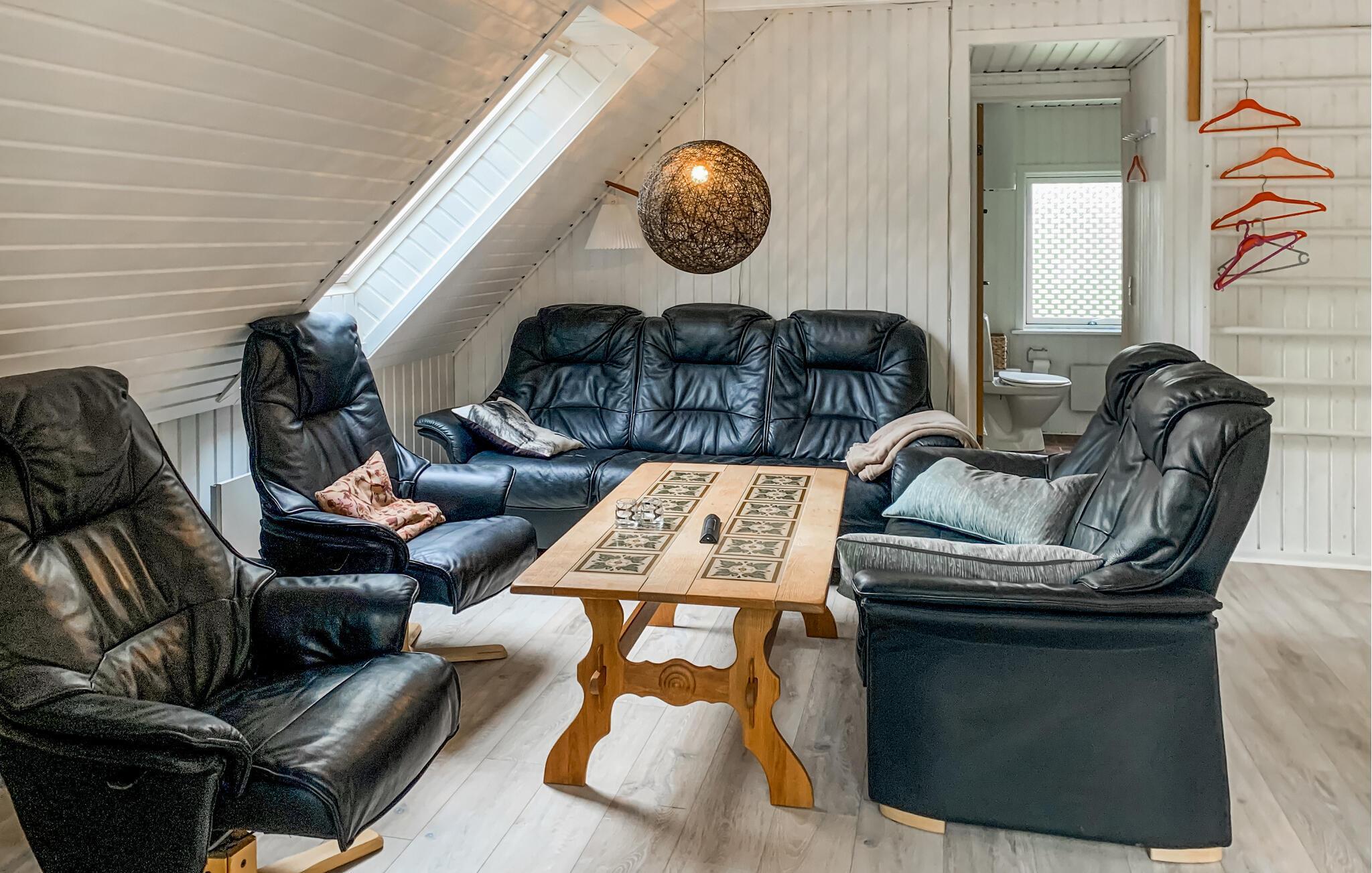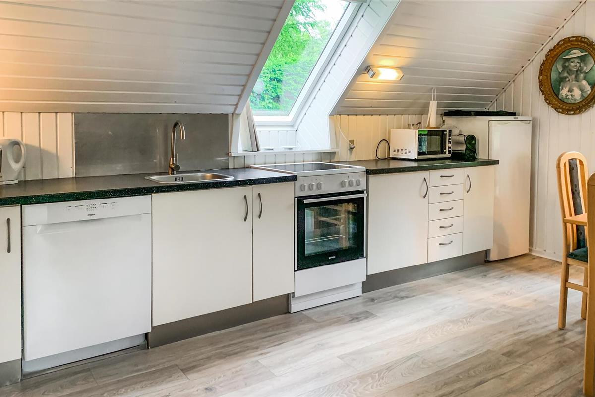 Welkom in dit charmante huis met schuin dak, dat je uitnodigt om ontspannende uren door te brengen met je geliefden in de gezellige woonsfeer. Bereid je favoriete maaltijden voor in de open keuken en plan je avonturen aan de sfeervol verlichte eettafel. Na een lange tocht kun je het jezelf gemakkelijk maken op de comfortabele leren meubels voor een leuke spelletjesavond of de dag afsluiten met een film.