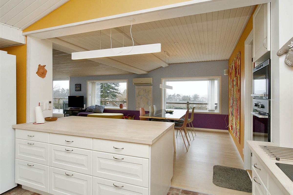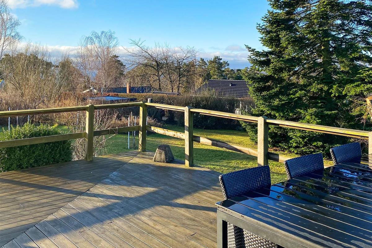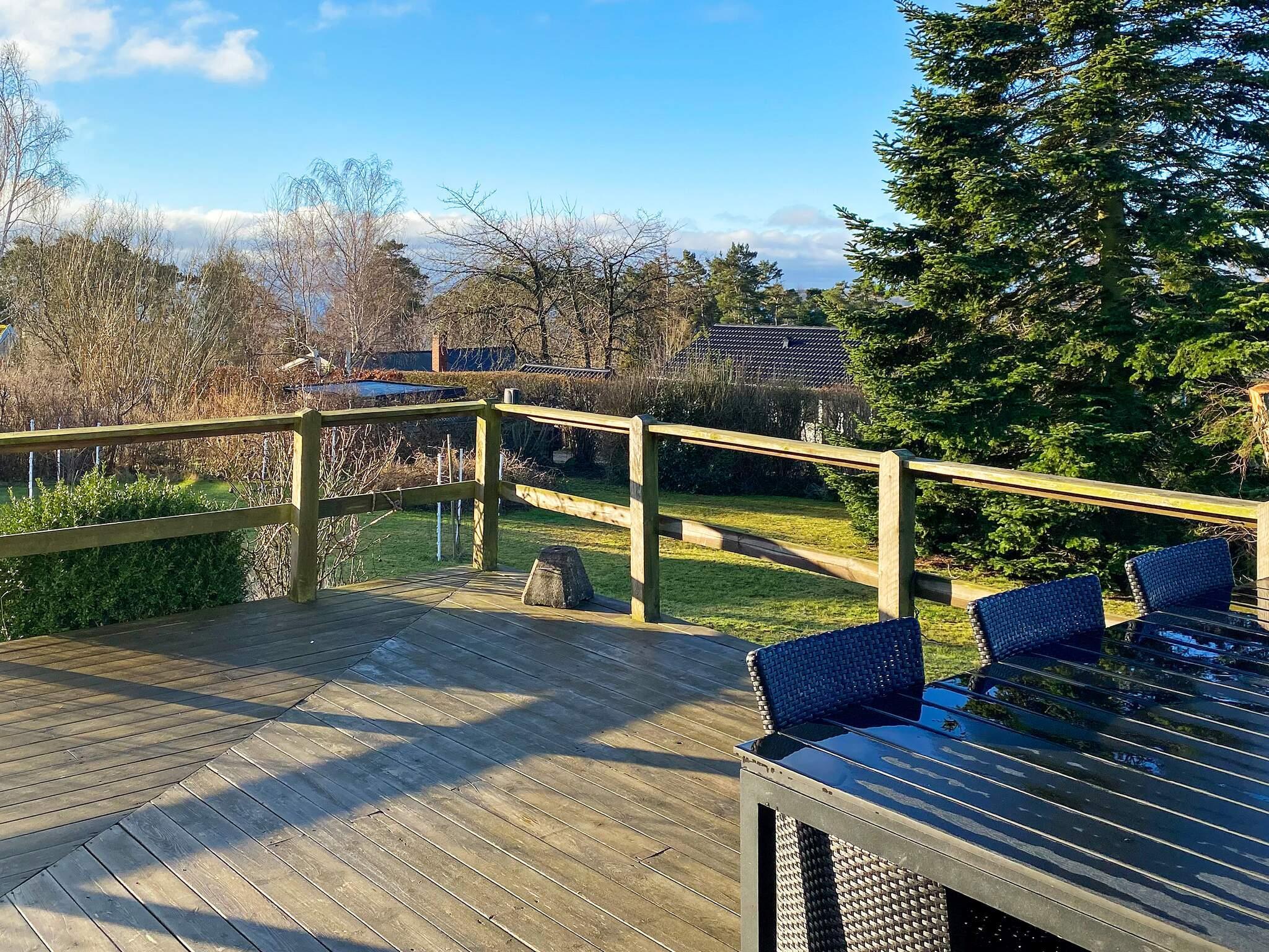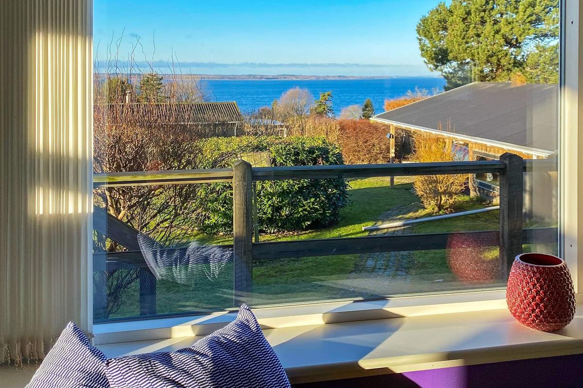 Mit schönster Lage und wunderschönem Blick über den Fjord finden wir dieses äußerst gepflegte Ferienhaus von 114 m2 Größe. Das für die Saison 2023/2024 frisch renovierte Haus bietet u.a. einen schönen, großen und offenen Küchen-/Wohnbereich für das Familienleben, mit Ess- und Sitzecke. Zwei Schlafzimmer im Haus; eines mit Doppelbett, das andere mit zwei Einzelbetten. Außerdem doppelte Schlafcouch im Wohnzimmer. Zwei Badezimmer mit Dusche und angenehmer Fußbodenheizung, eines dazu mit Whirlpool, das andere mit Waschmaschine. Es gibt direkten Zugang zu einer sehr großen, schönen Holzterrasse mit herrlichem Blick über den Garten und das Wasser. Hier zünden Sie den Grill oder genießen einfach die Sonne und die herrliche Aussicht! Es sind nur etwa 150 m Entfernung zum nächsten kinderfreundlichen Strandufer mit Badesteg.