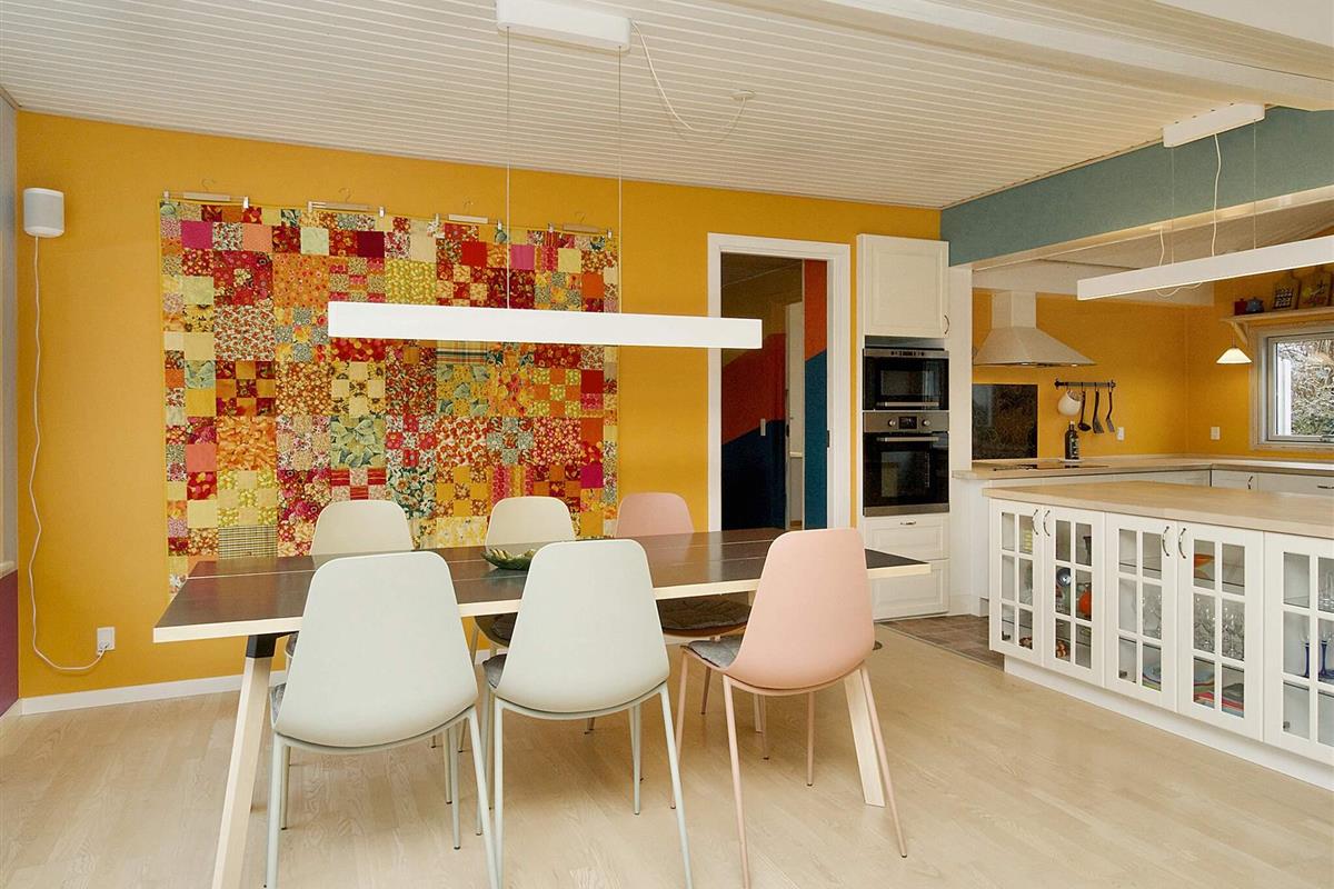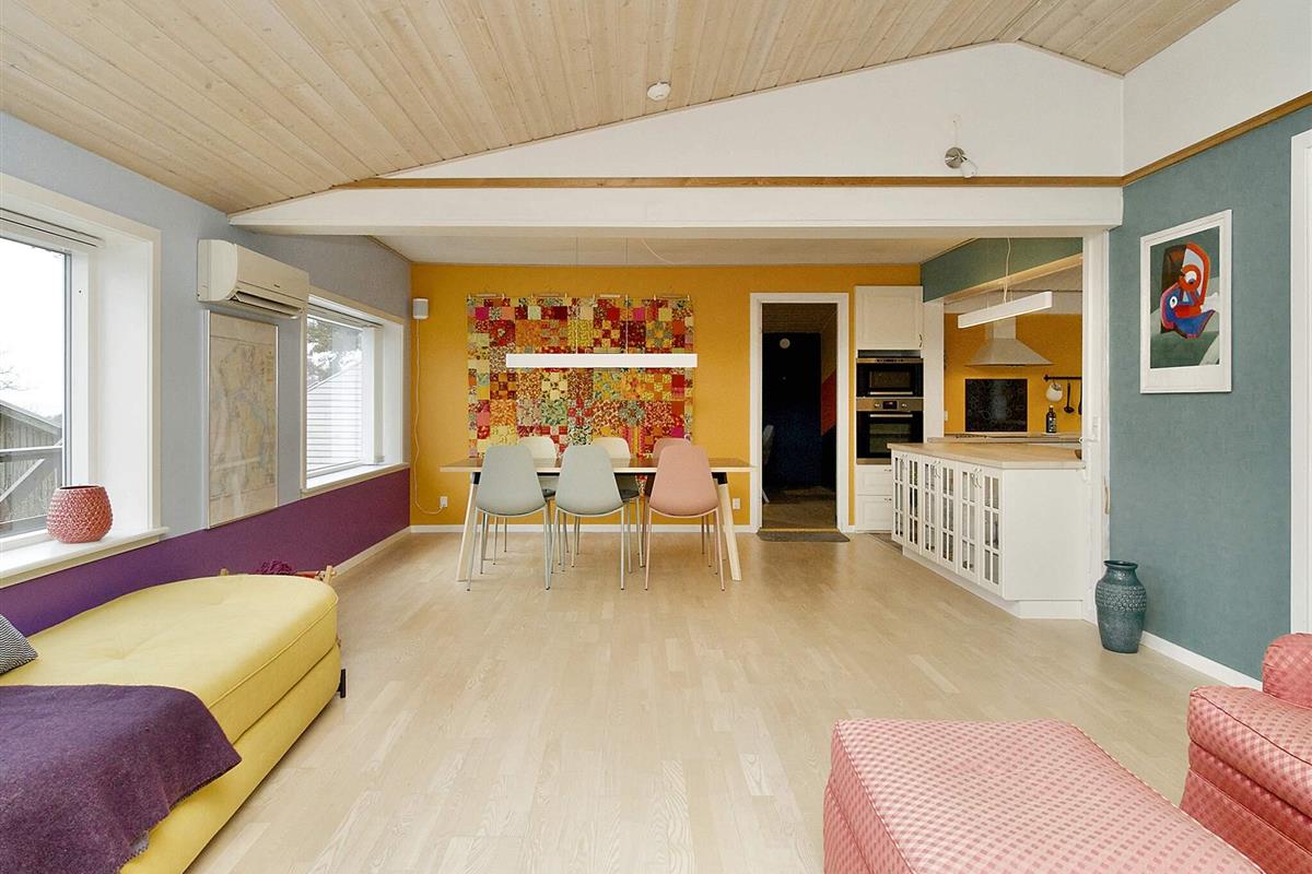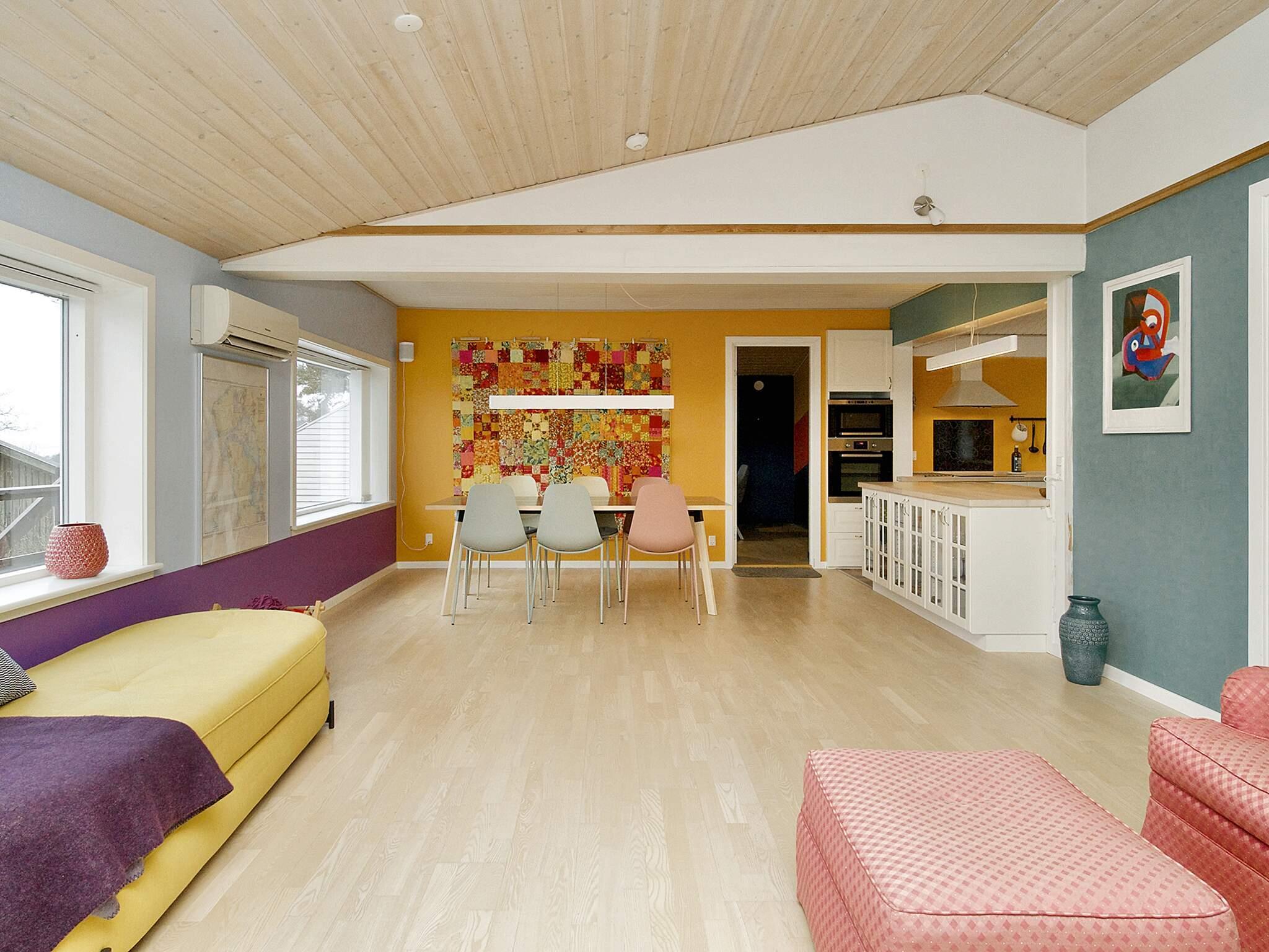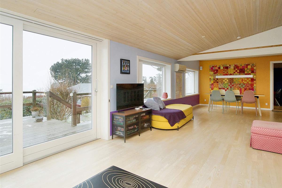 Mit schönster Lage und wunderschönem Blick über den Fjord finden wir dieses äußerst gepflegte Ferienhaus von 114 m2 Größe. Das für die Saison 2023/2024 frisch renovierte Haus bietet u.a. einen schönen, großen und offenen Küchen-/Wohnbereich für das Familienleben, mit Ess- und Sitzecke. Zwei Schlafzimmer im Haus; eines mit Doppelbett, das andere mit zwei Einzelbetten. Außerdem doppelte Schlafcouch im Wohnzimmer. Zwei Badezimmer mit Dusche und angenehmer Fußbodenheizung, eines dazu mit Whirlpool, das andere mit Waschmaschine. Es gibt direkten Zugang zu einer sehr großen, schönen Holzterrasse mit herrlichem Blick über den Garten und das Wasser. Hier zünden Sie den Grill oder genießen einfach die Sonne und die herrliche Aussicht! Es sind nur etwa 150 m Entfernung zum nächsten kinderfreundlichen Strandufer mit Badesteg.