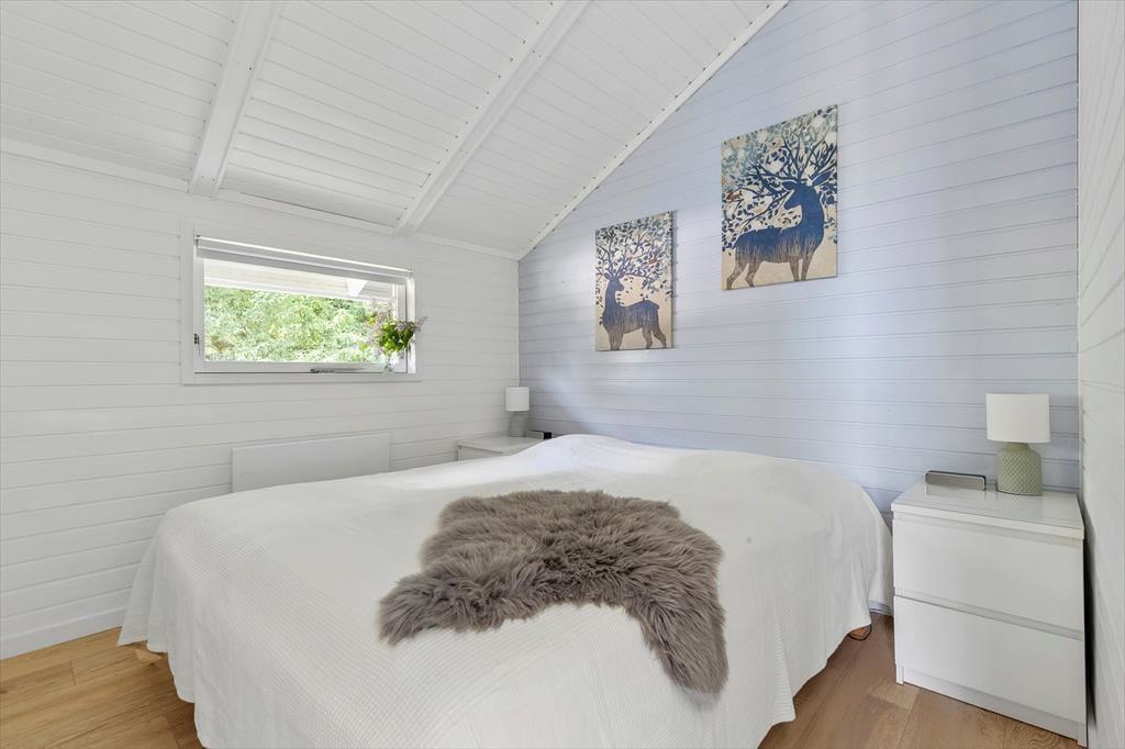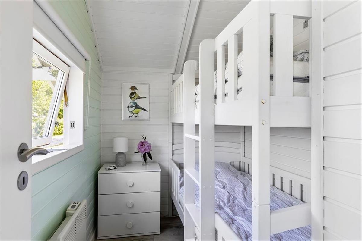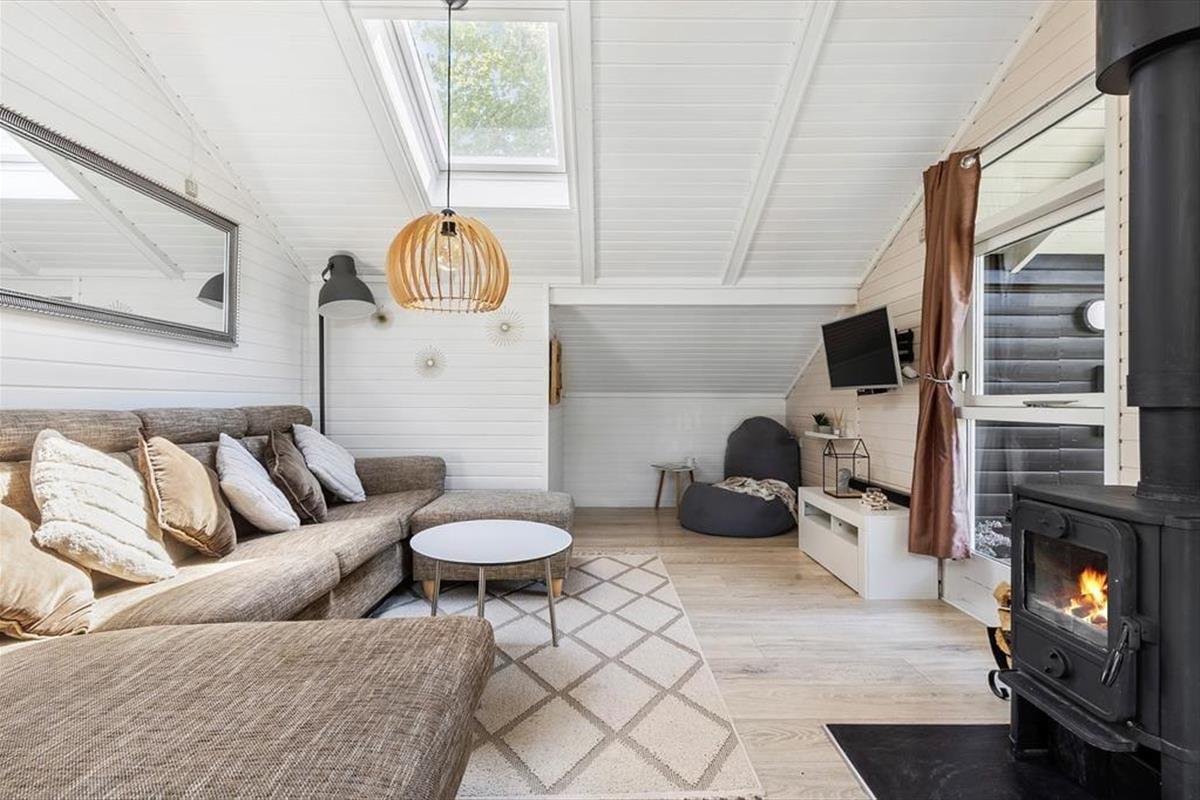 Sobald du das Haus betrittst, empfängt dich eine helle und gemütliche Atmosphäre, die ganz auf Komfort und Erholung ausgelegt ist. Das Wohnzimmer ist warm und einladend und bietet direkten Zugang zur Terrasse, wo du deinen Morgenkaffee genießen kannst, während Rehe durch den Garten streifen. Die offene Küche ist harmonisch mit dem Essbereich und dem Wohnzimmer verbunden, sodass du immer in Gesellschaft bist – egal ob du kochst oder dich auf dem Sofa entspannst. Der Essbereich befindet sich in einer gemütlichen Nische mit großen Fenstern, die viel Tageslicht hereinlassen und eine wunderbare Aussicht auf den Garten bieten. Wenn die Nacht hereinbricht, kannst du dich in das komfortable Schlafzimmer mit Doppelbett zurückziehen, während die Kinder im gemütlichen Zimmer mit Etagenbett gut aufgehoben sind.