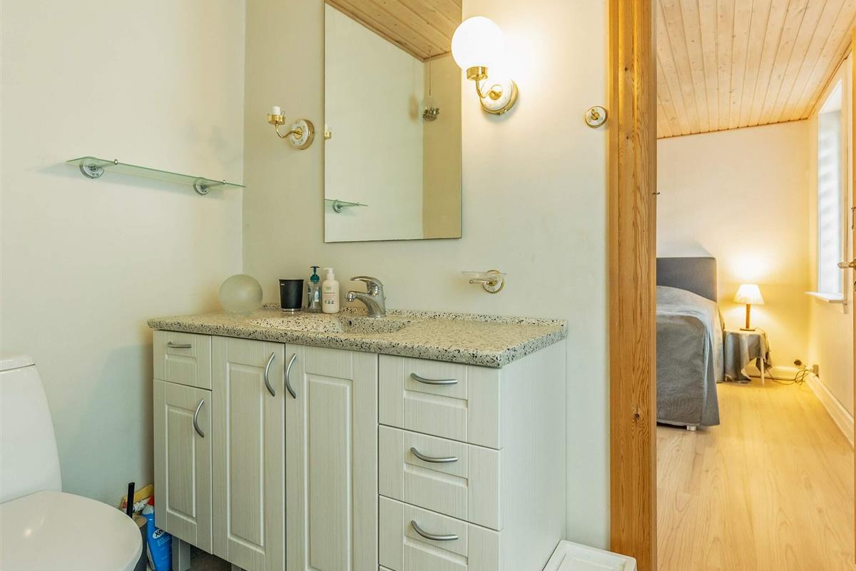 Das Haus verfügt über eine offene Terrasse mit bequemen Gartenmöbeln und einem Gasgrill, auf dem Sie Ihr Abendessen genießen können, während die Sonne über dem Fjord untergeht. Es gibt auch eine Außendusche mit Kalt- und Warmwasser, sodass Sie sich nach einem Bad im blauen Meer bequem abspülen können.