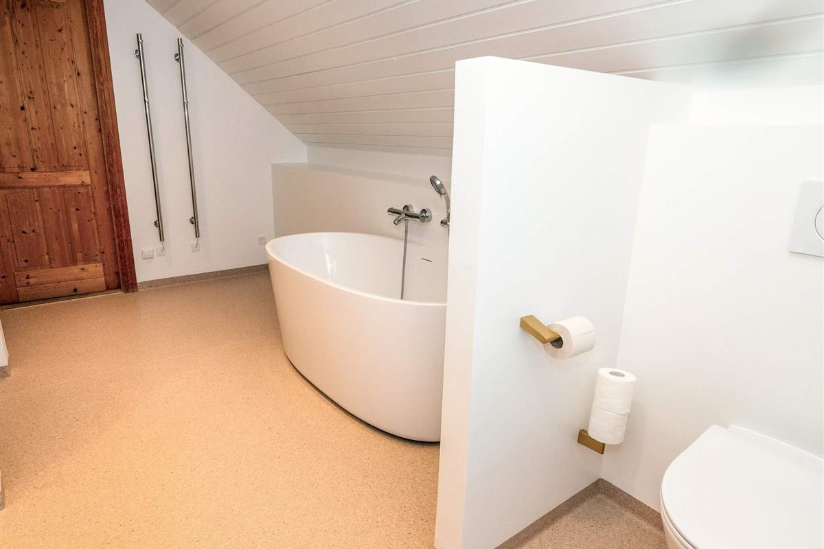 Hochwertiges Badezimmer mit Badewanne, Duschkabine und WC.