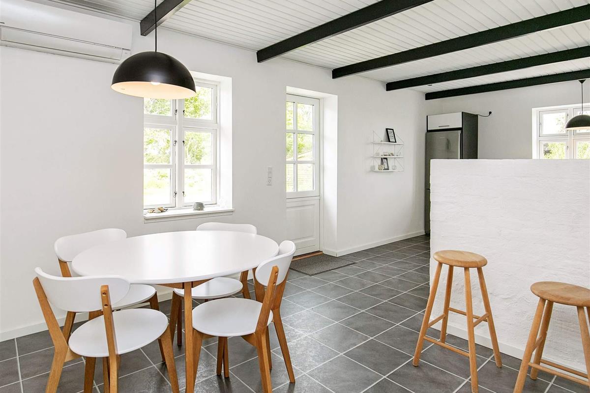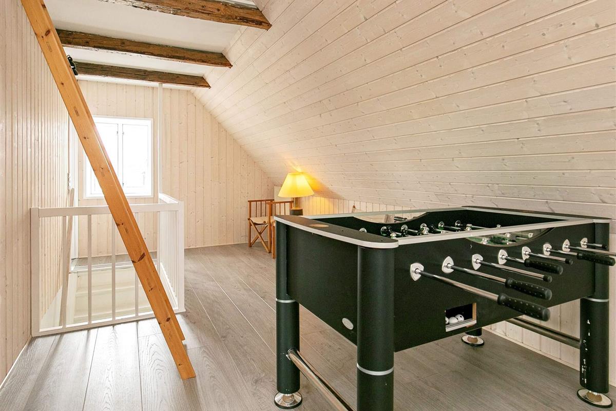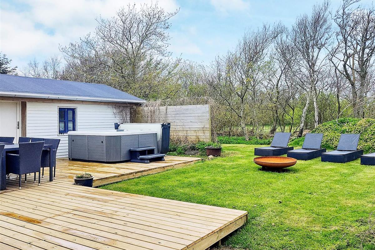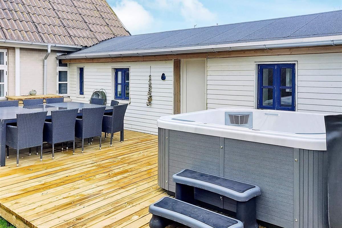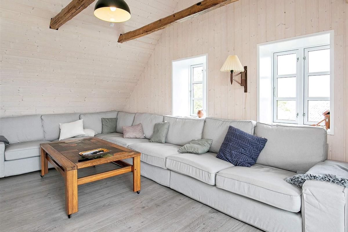 Das Ferienhaus ist überdurchschnittlich gut ausgestattet und bietet vier Schlafzimmer und einen großen Schlafboden mit vier Schlafplätzen. In dem einen Schlafzimmer mit Doppelbett steht auch ein Gitterbett und es gibt einen Ausgang zum Balkon. Das andere Doppelbett kann zu zwei Einzelbetten umfunktioniert werden und das eine Kojenbett hat ein 3/4 Bett unten. Zur Unterhaltung stehen einige deutsche TV-Sender sowie WLAN per Glasfaser bereit. Es stehen zwei Bäder zur Verfügung, eines davon mit besagtem Whirlpool, der zwei Personen Platz bietet. Außerdem praktische Helfer wie Spül- und Waschmaschine sowie Wäschetrockner im Haus. Die zeitgemäß ausgestattete Küche ist. u.a. mit Mikrowelle, Cerankochfeld und Kühl-/Gefrierschrank eingerichtet. Essbereich mit Holzofen. Das Ferienhaus wird mittels einer energieeffizienten Luft-Luft-Wärmepumpe erwärmt. Außen gibt es zwei Balkone, jeweils nach Süden und Westen ausgerichtet, einer mit schöner Aussicht zum Wasser im Nissum Bredning. Auf dem Grundstück stehen Sandkasten und Schaukel für Kinder bereit, zudem ein gemütlicher Bereich mit Grill und Gartenmöbeln.