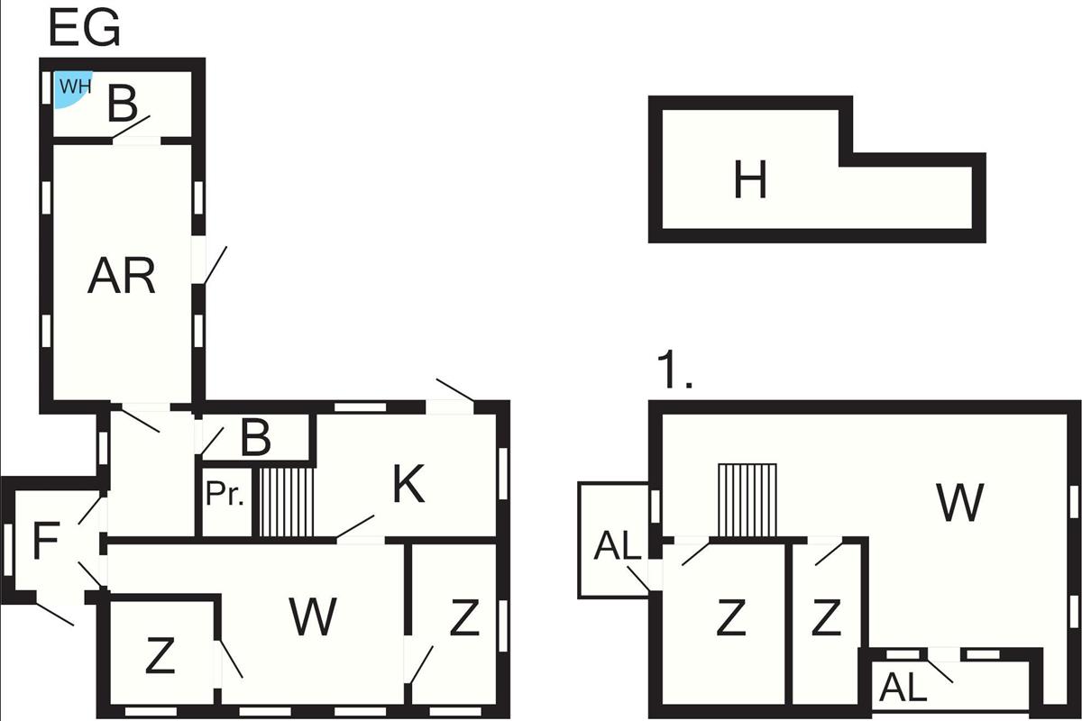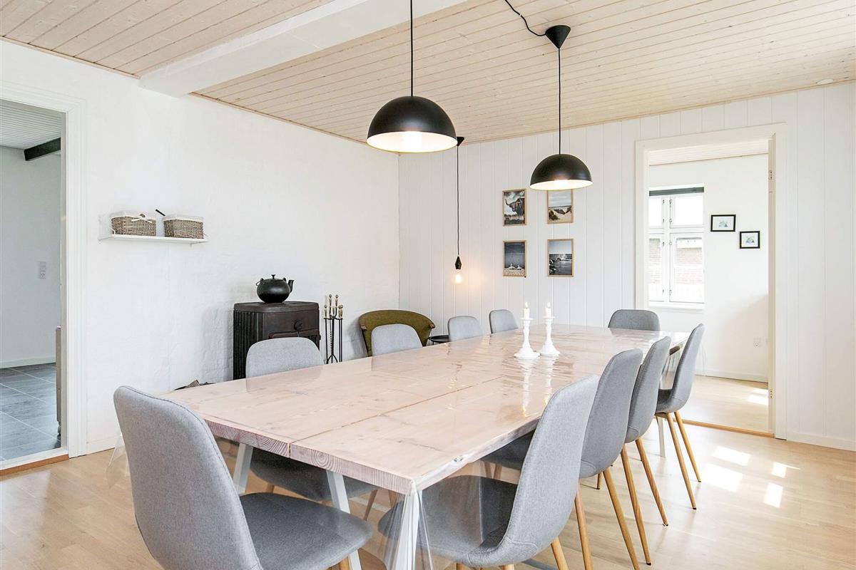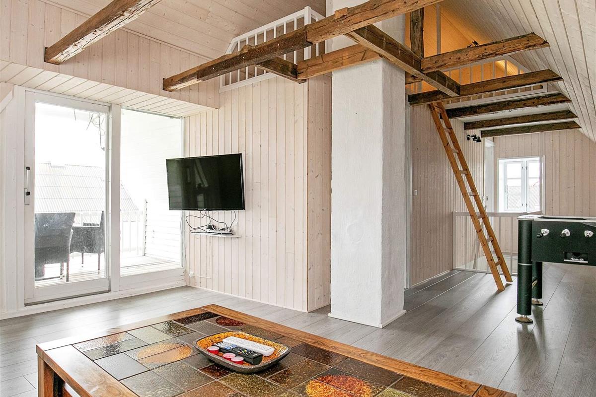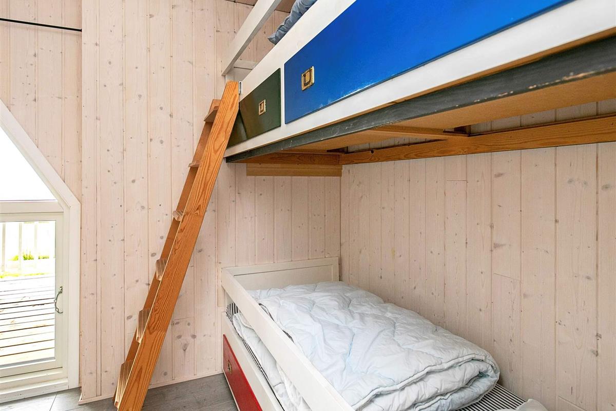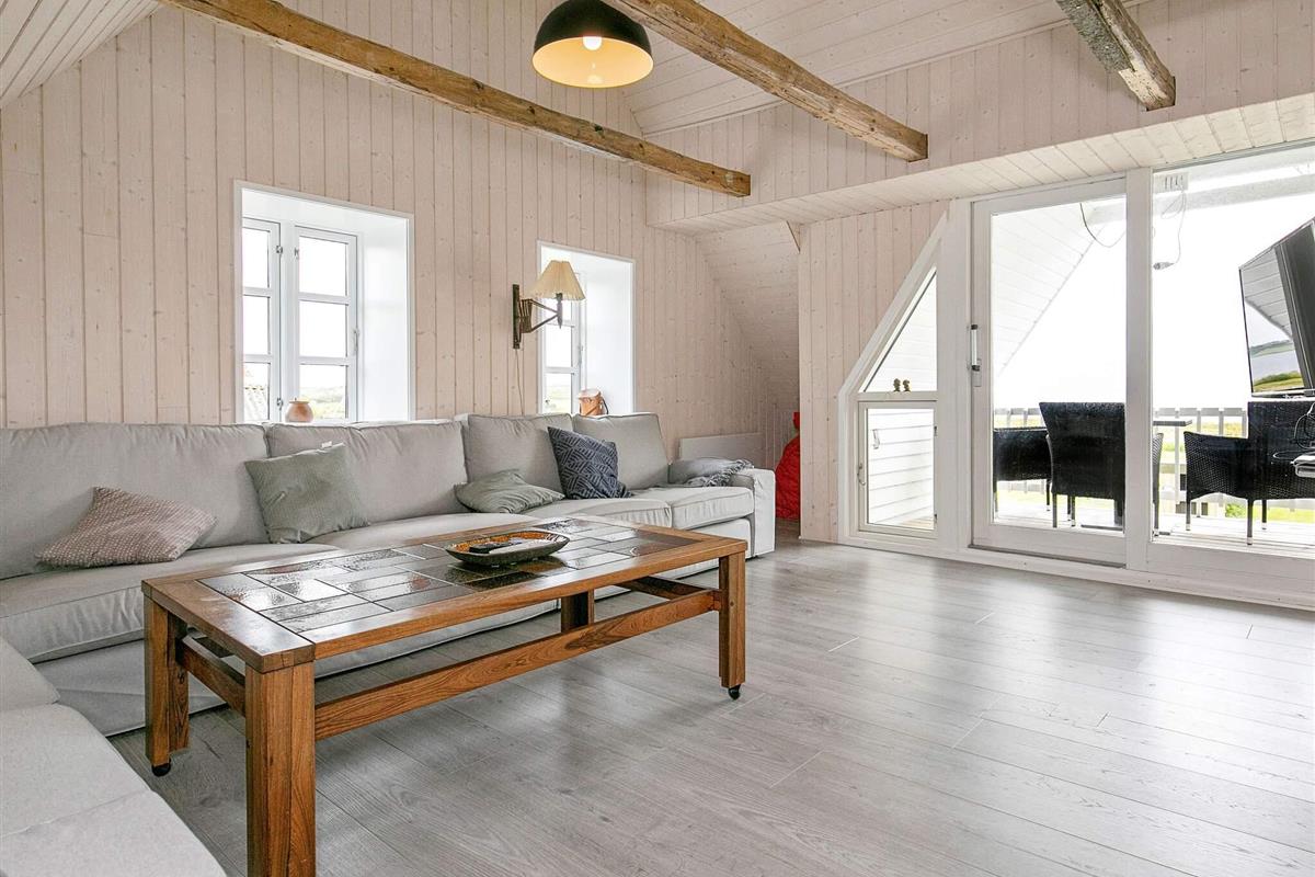 Das Ferienhaus ist überdurchschnittlich gut ausgestattet und bietet vier Schlafzimmer und einen großen Schlafboden mit vier Schlafplätzen. In dem einen Schlafzimmer mit Doppelbett steht auch ein Gitterbett und es gibt einen Ausgang zum Balkon. Das andere Doppelbett kann zu zwei Einzelbetten umfunktioniert werden und das eine Kojenbett hat ein 3/4 Bett unten. Zur Unterhaltung stehen einige deutsche TV-Sender sowie WLAN per Glasfaser bereit. Es stehen zwei Bäder zur Verfügung, eines davon mit besagtem Whirlpool, der zwei Personen Platz bietet. Außerdem praktische Helfer wie Spül- und Waschmaschine sowie Wäschetrockner im Haus. Die zeitgemäß ausgestattete Küche ist. u.a. mit Mikrowelle, Cerankochfeld und Kühl-/Gefrierschrank eingerichtet. Essbereich mit Holzofen. Das Ferienhaus wird mittels einer energieeffizienten Luft-Luft-Wärmepumpe erwärmt. Außen gibt es zwei Balkone, jeweils nach Süden und Westen ausgerichtet, einer mit schöner Aussicht zum Wasser im Nissum Bredning. Auf dem Grundstück stehen Sandkasten und Schaukel für Kinder bereit, zudem ein gemütlicher Bereich mit Grill und Gartenmöbeln.