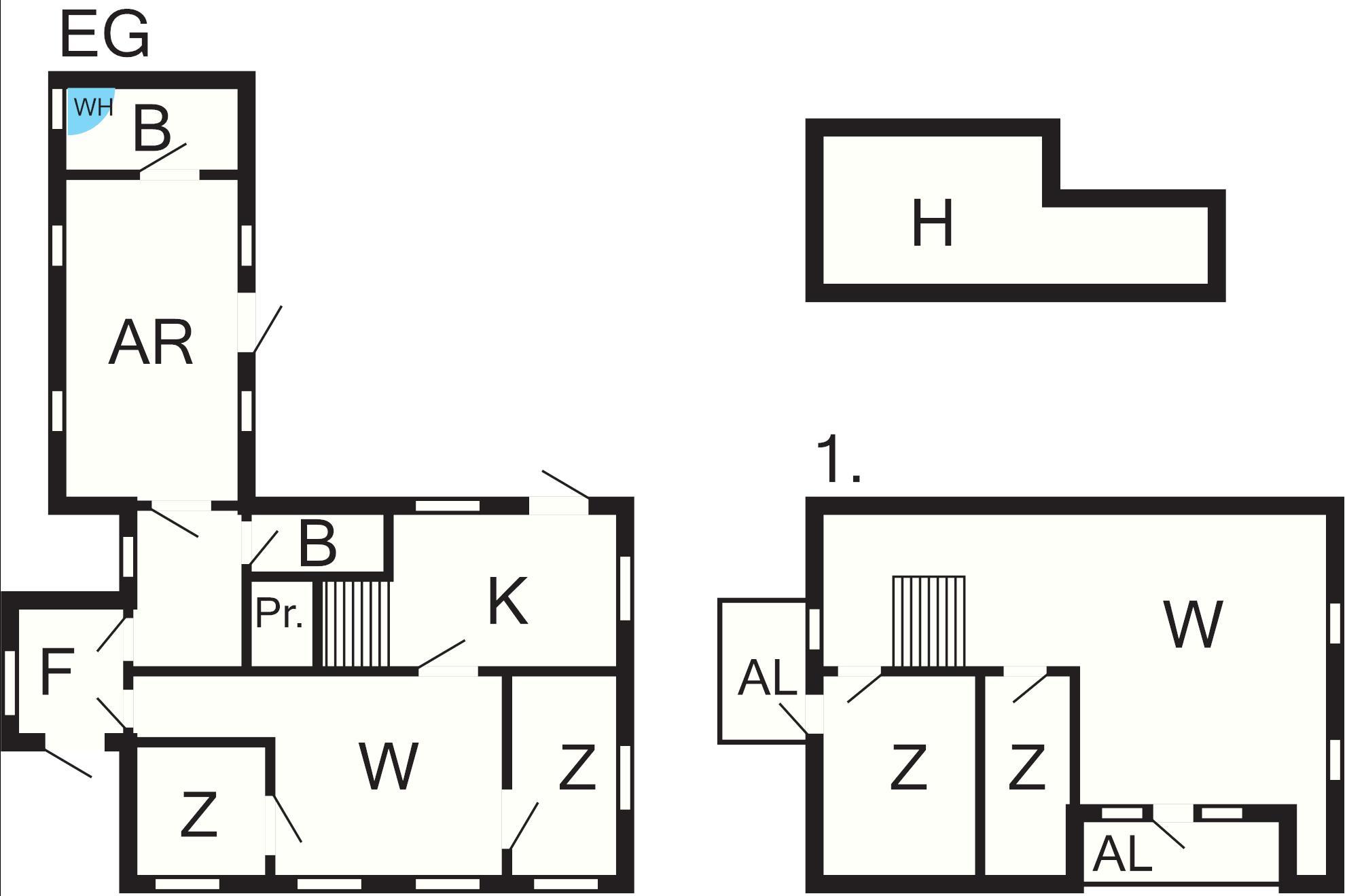 Bad: Waschm, Trockner, WC, Waschb., Dusche, Fußbodenheiz.
