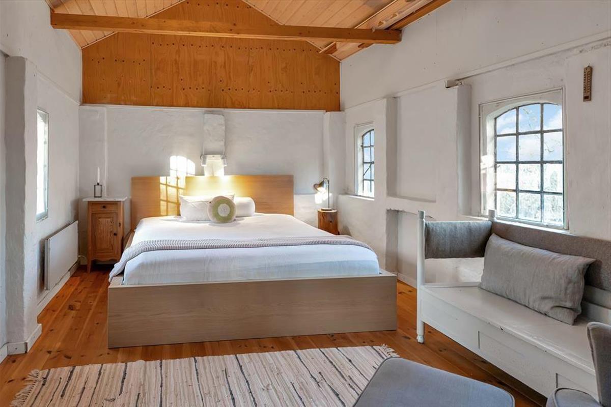 Sie betreten ein wunderschönes Haus, das sich seit drei Generationen im Familienbesitz befindet. Die ursprünglichen Dielenböden sind geschichtsträchtig und fügen sich wunderbar in die in den letzten 10-15 Jahren vorgenommenen Renovierungen ein. Die große Wohnküche bietet viel Platz für die Zubereitung von Mahlzeiten und der Holzofen sorgt für die perfekte Gemütlichkeit. Von hier aus blickt man in den Garten, man ist versucht zu sagen, in den Park auf dem über 5500 m2 großen Grundstück - der sich einfach fortsetzt mit Feldern und Wald, soweit das Auge reicht. Ein separates Wohnzimmer mit Holzofen und Fernseher ist der perfekte Ort, um es sich mit einem Glas Wein oder Kaffee gemütlich zu machen, während man sich in ein gutes Buch vertieft oder die Brettspiele herausholt, um gemeinsam zu spielen. In der Scheune gibt es drei Schlafzimmer, von denen Sie zwei passieren, bevor Sie das Badezimmer und das Hauptschlafzimmer „der Stall“ erreichen, das ursprünglich ein Stall war, aber jetzt zu einem wirklich gemütlichen Schlafzimmer mit den ursprünglichen Stallfenstern umgebaut wurde.