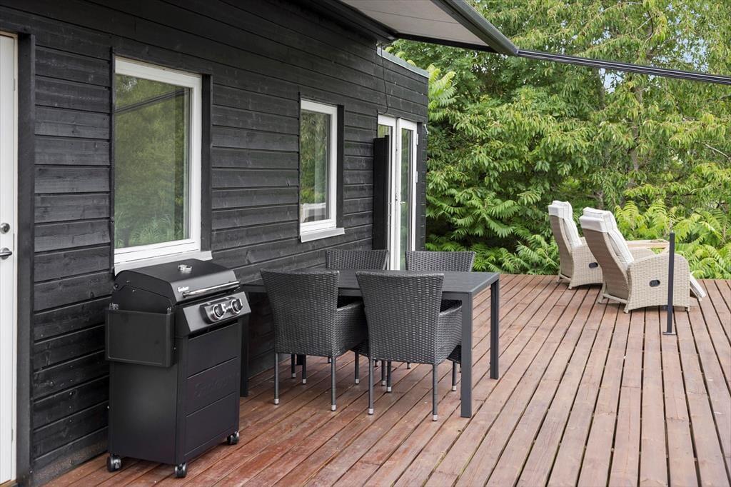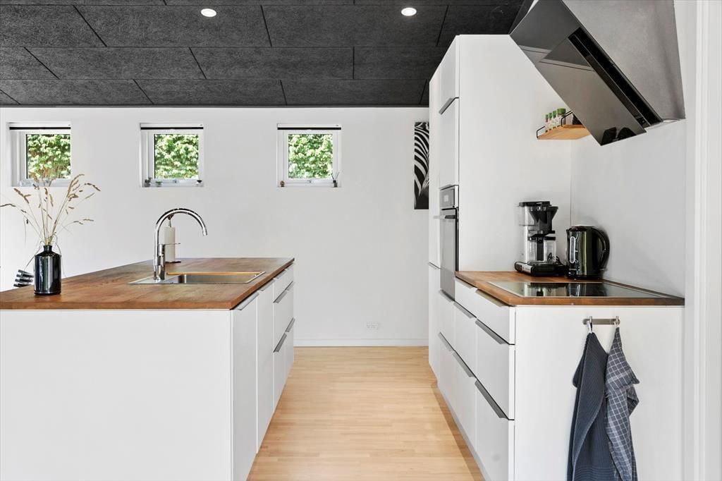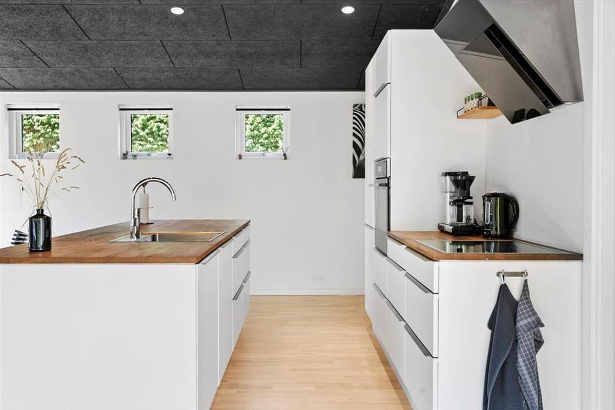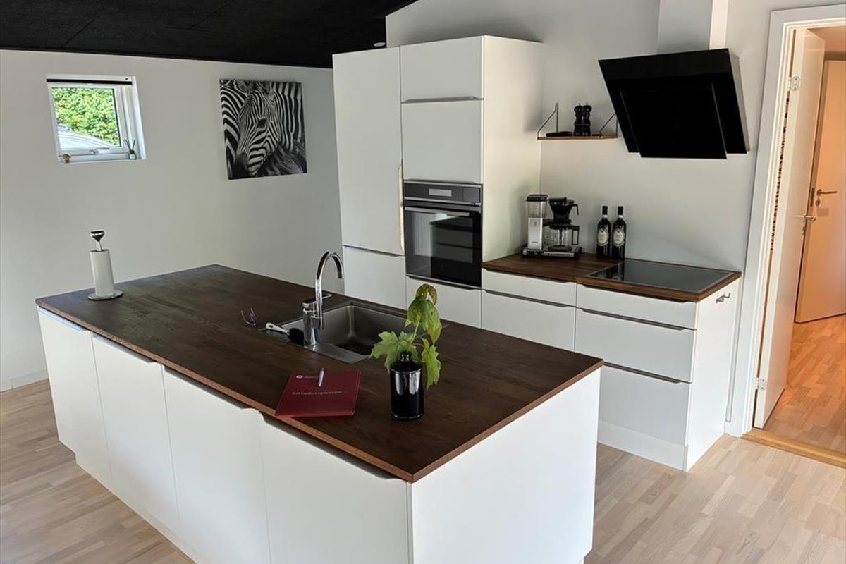 in diesem schönen, modernen Haus. Das Haus ist geschmackvoll eingerichtet und verfügt über ein Schlafzimmer mit zwei Hochbetten sowie zwei weitere Zimmer mit je einem Einzelbett, darunter ein wunderschönes Hästens-Bett. Das Wohnzimmer und die Küche bilden einen schönen großen offenen Raum, der zusammen mit einer riesigen Terrasse den Rahmen für eine wunderbare Atmosphäre und einen perfekten Urlaub bildet.