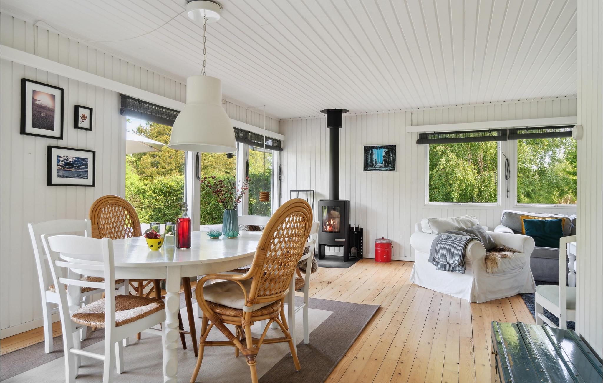 Het aantrekkelijke huis verwelkomt je op slechts een paar stappen van het strand op een idyllisch perceel. De uitnodigende, lichte kamers met huiselijke inrichting en vriendelijke kleuren creëren een gezellige omgeving waar je het leven van alledag ver achter je kunt laten. Ontspan hier met een prachtig uitzicht op de tuin, maak het jezelf gemakkelijk met een film of spelletjes, praat 's avonds nog lang na en geniet van jullie tijd samen terwijl de vlammen zachtjes knetteren in de open haard.