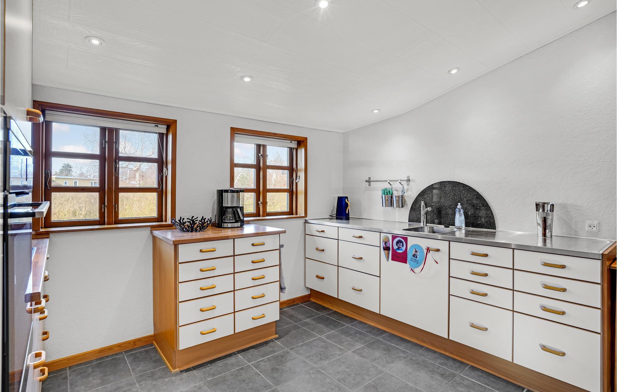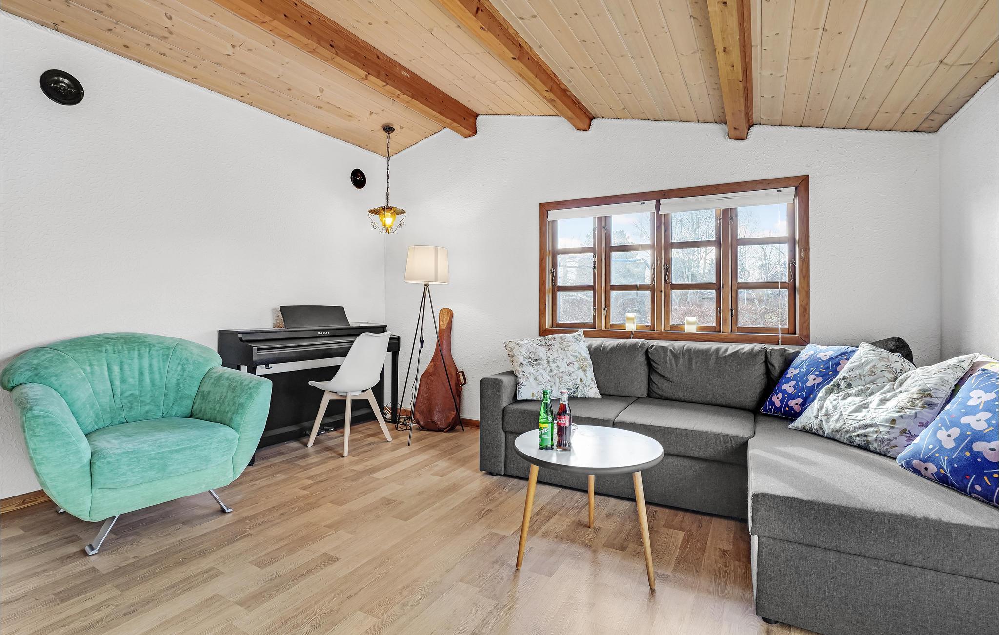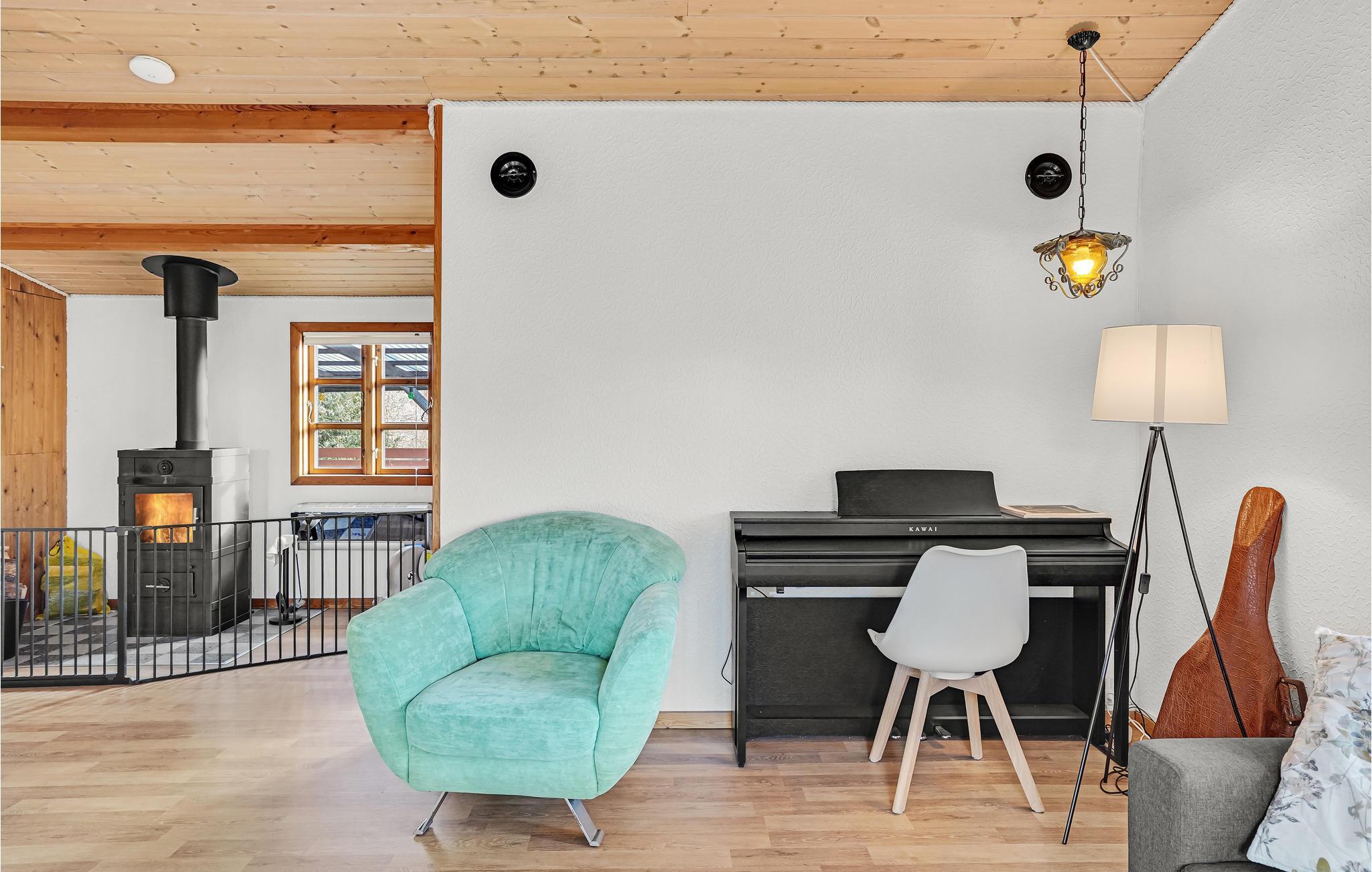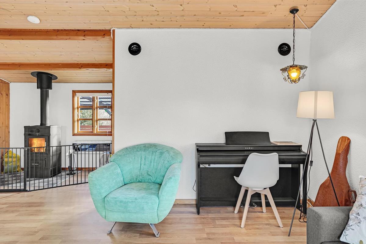 Het klassieke Deense design en de hoge kwaliteit in de keuken-woonkamer creëren een echte feelgood-sfeer. De schuine plafonds en houten lambrisering geven je een ongelooflijk aangename leefomgeving. Hetzelfde heeft een interessant woonconcept, waarbij de belangrijkste woongedeeltes functioneel met elkaar verbonden zijn maar toch gescheiden worden door deurkozijnen, waardoor het daglicht genoeg ruimte heeft om zich te ontvouwen. Deze accommodatie biedt ook een ideale omgeving als je met kinderen reist. Stel je voor dat je een heerlijk ontbijt met verse koffie bereidt in deze gezellige keuken en vervolgens binnen of buiten aan tafel gaat zitten. Stap naar buiten op het open terras waar je kunt barbecueën, lezen of kijken hoe de kinderen zich vermaken. Voor de kleintjes is er ook een buitenspeelplaats met trampoline, schommel, glijbaan en speelhuisje.
