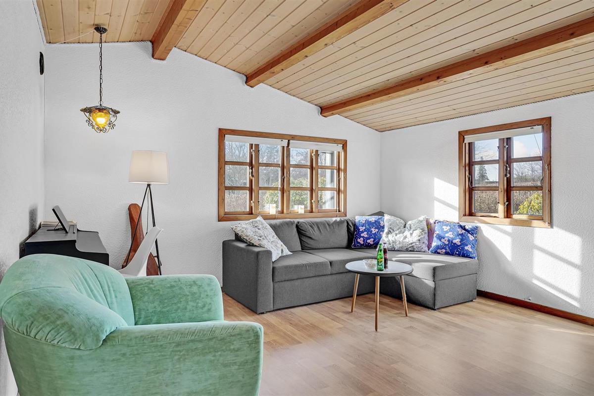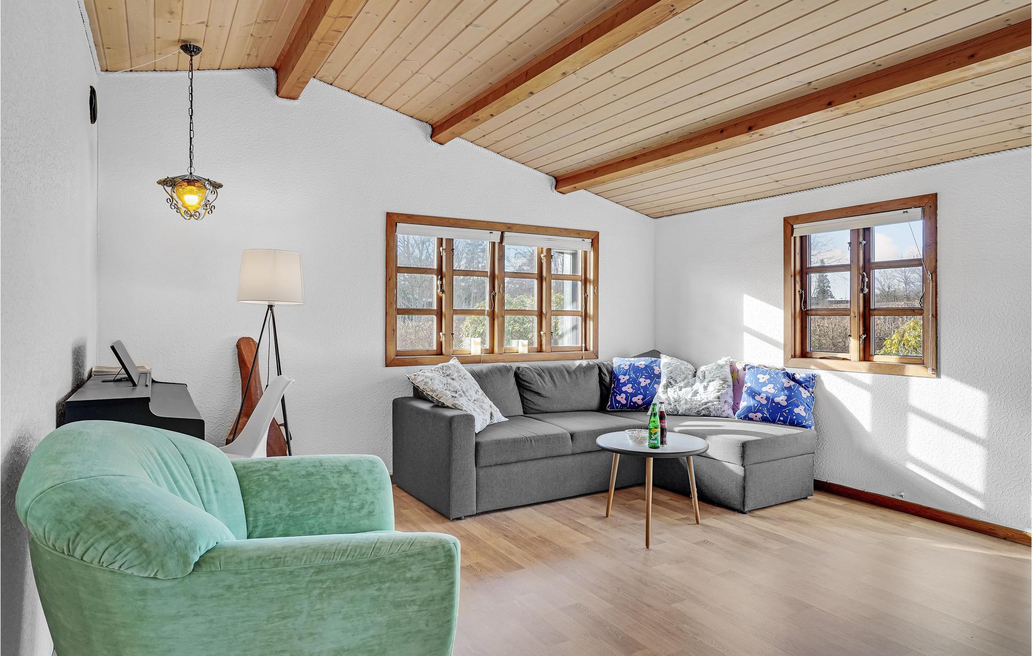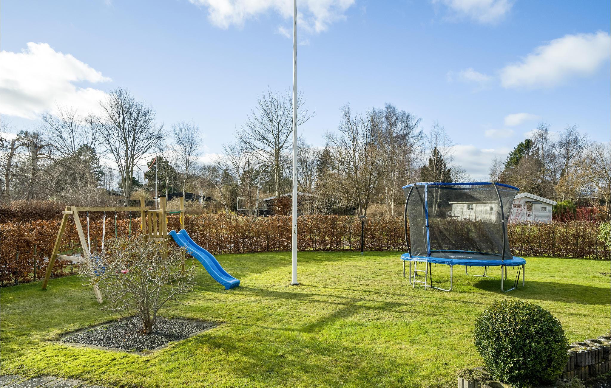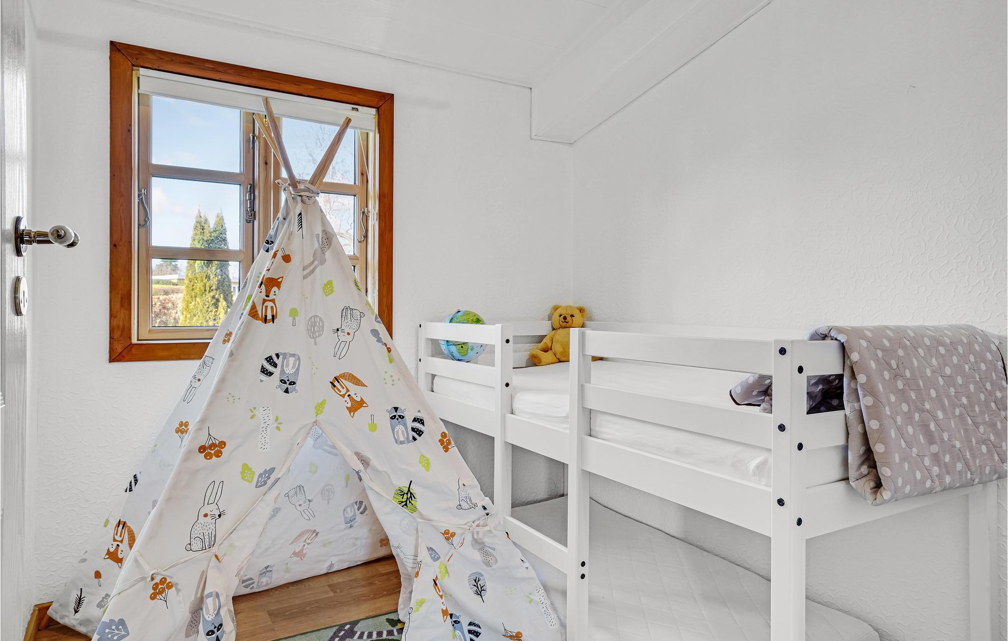 Het klassieke Deense design en de hoge kwaliteit in de keuken-woonkamer creëren een echte feelgood-sfeer. De schuine plafonds en houten lambrisering geven je een ongelooflijk aangename leefomgeving. Hetzelfde heeft een interessant woonconcept, waarbij de belangrijkste woongedeeltes functioneel met elkaar verbonden zijn maar toch gescheiden worden door deurkozijnen, waardoor het daglicht genoeg ruimte heeft om zich te ontvouwen. Deze accommodatie biedt ook een ideale omgeving als je met kinderen reist. Stel je voor dat je een heerlijk ontbijt met verse koffie bereidt in deze gezellige keuken en vervolgens binnen of buiten aan tafel gaat zitten. Stap naar buiten op het open terras waar je kunt barbecueën, lezen of kijken hoe de kinderen zich vermaken. Voor de kleintjes is er ook een buitenspeelplaats met trampoline, schommel, glijbaan en speelhuisje.