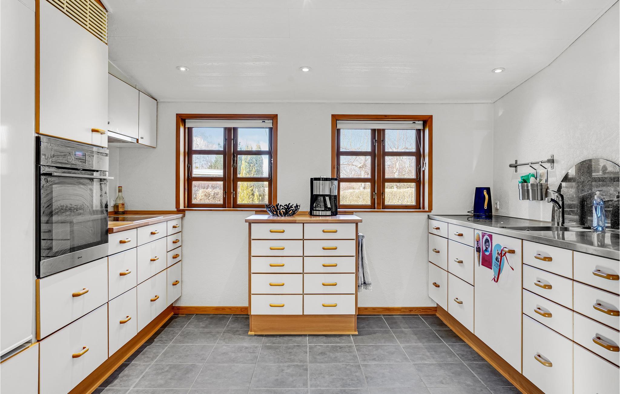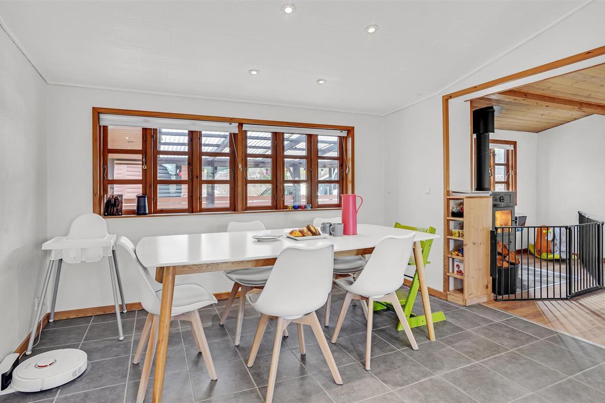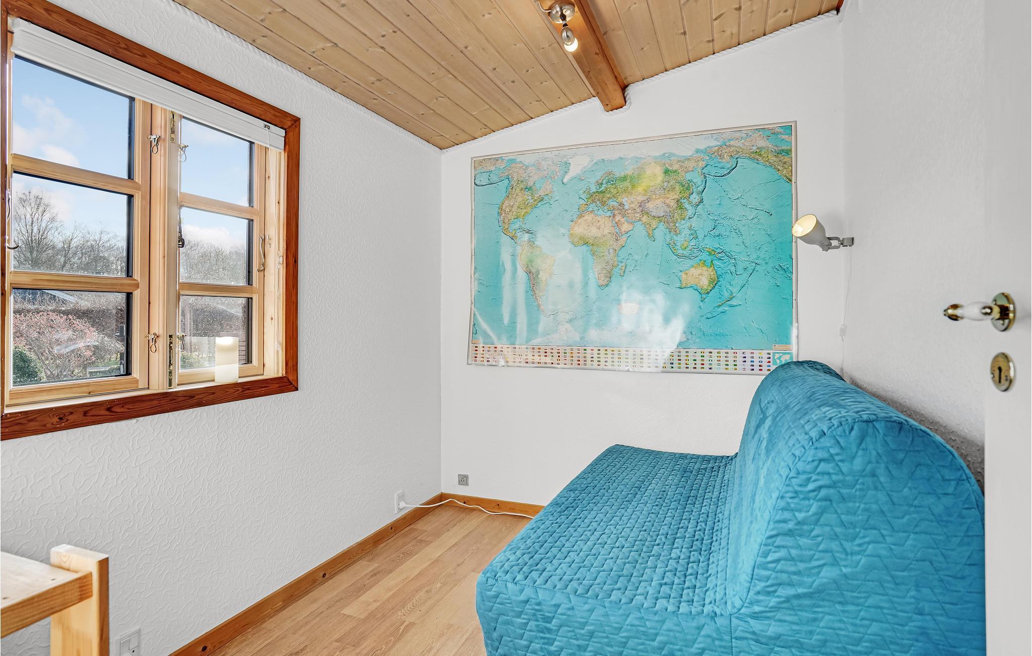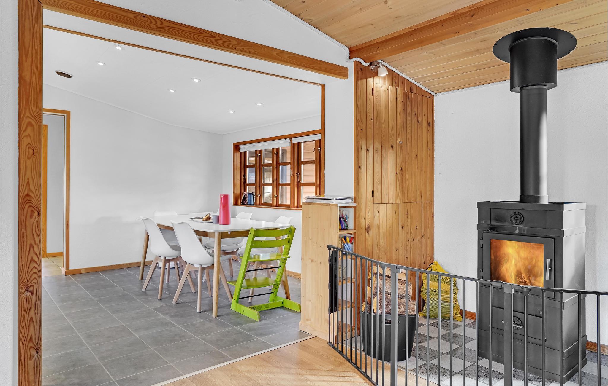 Het klassieke Deense design en de hoge kwaliteit in de keuken-woonkamer creëren een echte feelgood-sfeer. De schuine plafonds en houten lambrisering geven je een ongelooflijk aangename leefomgeving. Hetzelfde heeft een interessant woonconcept, waarbij de belangrijkste woongedeeltes functioneel met elkaar verbonden zijn maar toch gescheiden worden door deurkozijnen, waardoor het daglicht genoeg ruimte heeft om zich te ontvouwen. Deze accommodatie biedt ook een ideale omgeving als je met kinderen reist. Stel je voor dat je een heerlijk ontbijt met verse koffie bereidt in deze gezellige keuken en vervolgens binnen of buiten aan tafel gaat zitten. Stap naar buiten op het open terras waar je kunt barbecueën, lezen of kijken hoe de kinderen zich vermaken. Voor de kleintjes is er ook een buitenspeelplaats met trampoline, schommel, glijbaan en speelhuisje.